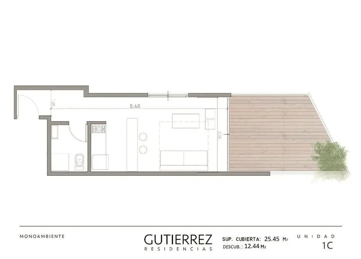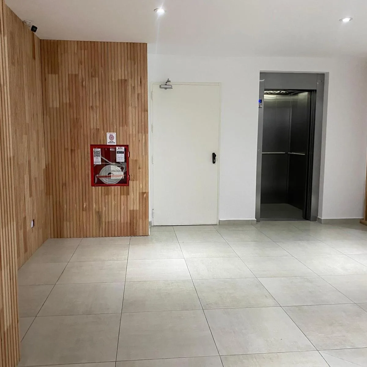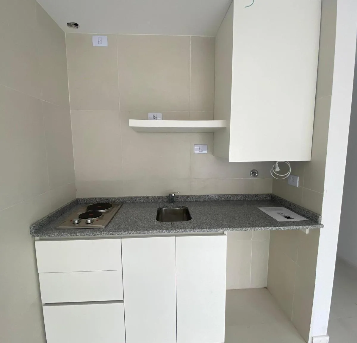 Kitnet novo (nunca habitado) com pátio, em prédio de estilo colonial, com 39 m². Cozinha integrada com armários sob a bancada e banheiro com box para ducha. Conta com depósito.