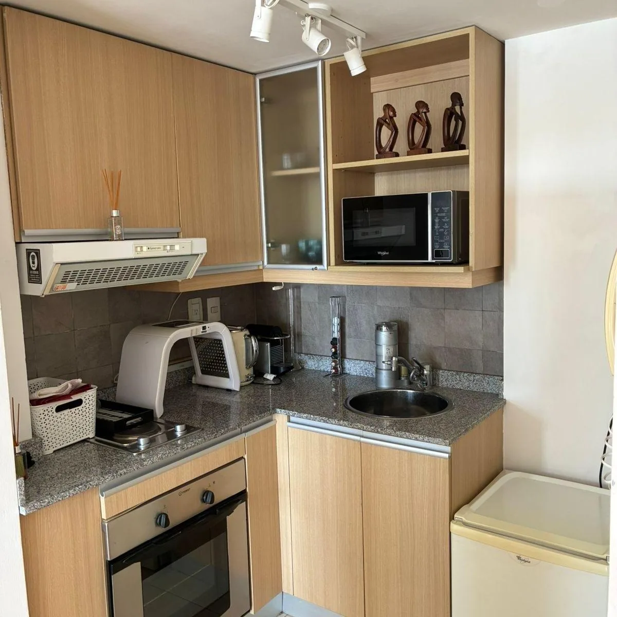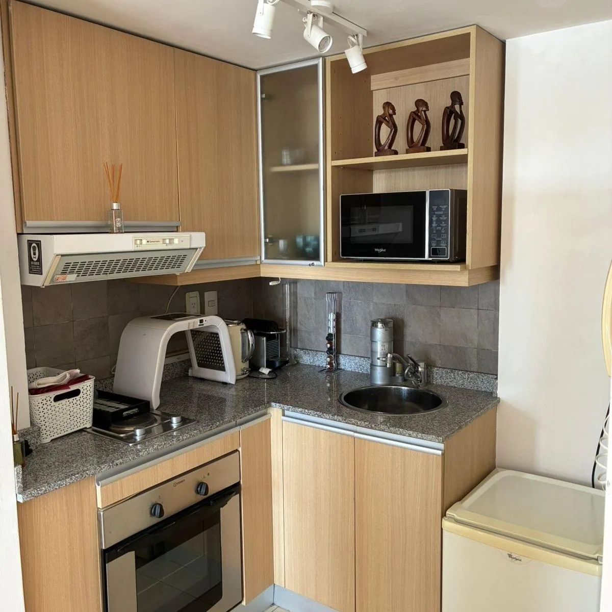 Kitnet (monoambiente) em Villa Devoto. Contém um cômodo e é descrito como mobiliado e moderno. O imóvel fica a uma quadra da Plaza Arenales e a uma quadra da estação de trem, com acesso a meios de transporte.