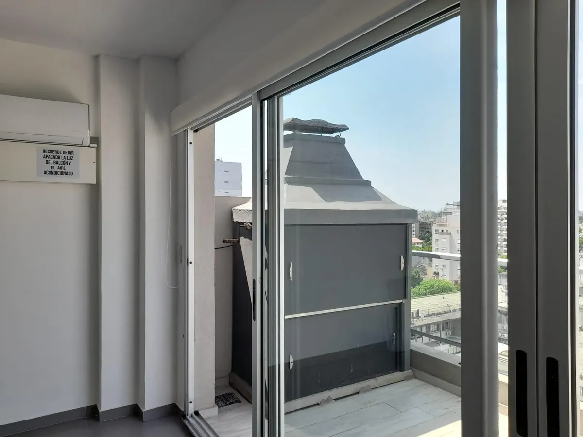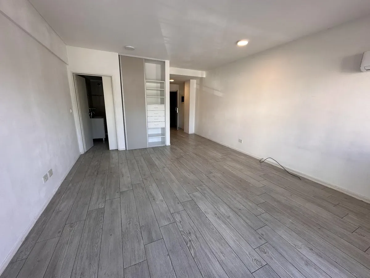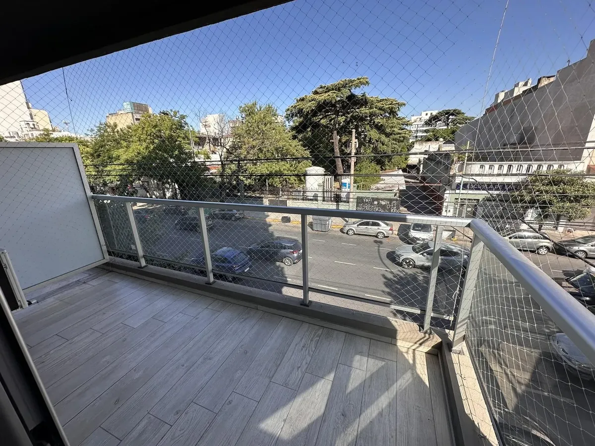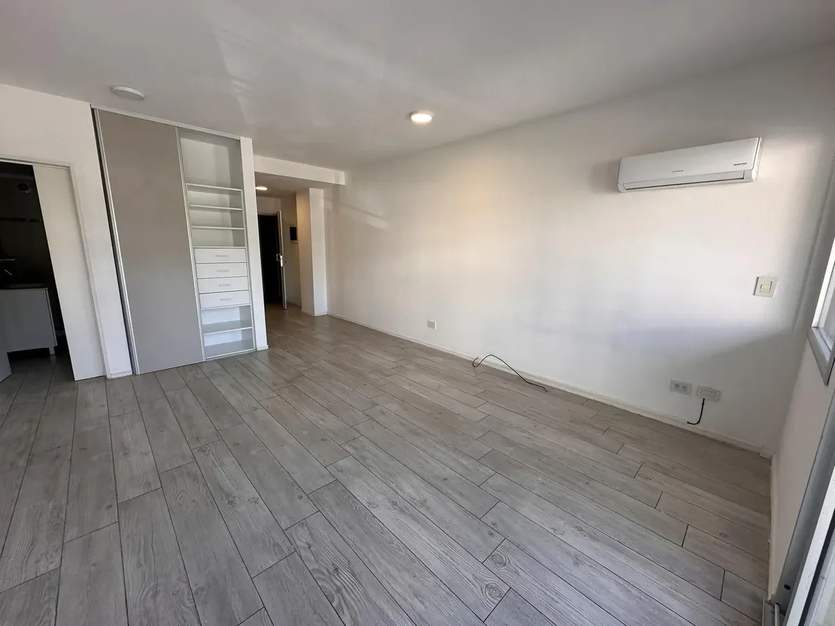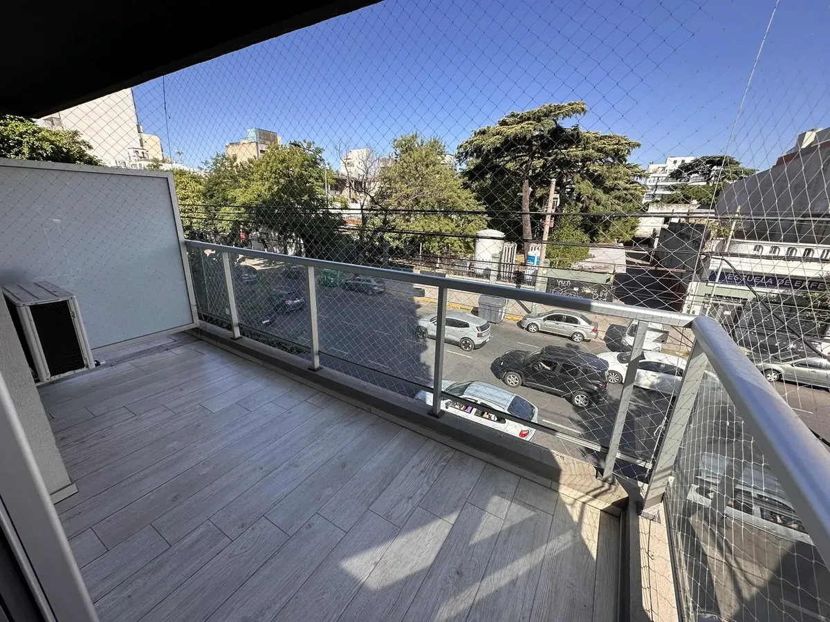 Kitnet em Villa Devoto, no 2º andar, com varanda de frente para a rua. Aquecimento por piso radiante com controle individual, ar-condicionado e segurança por totem. Prédio todo elétrico, com salão de festas (SUM) e área de churrasco. Condomínio em fevereiro: $118.000. Unidade apta para pessoas com mobilidade reduzida; não possui conexão para lavadora (lavarropas). Contrato de 2 anos, reajuste trimestral por IPC, seguro-fiança e 1 mês de depósito.