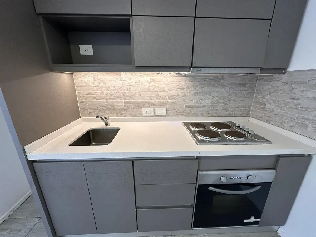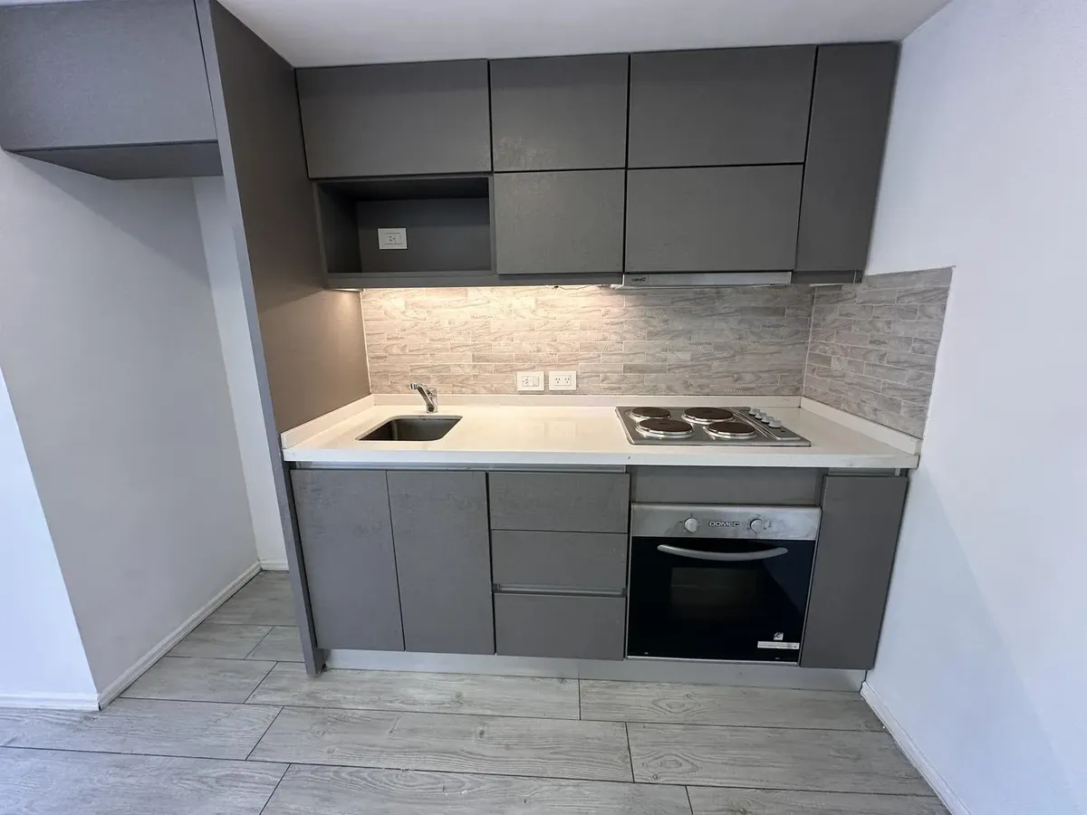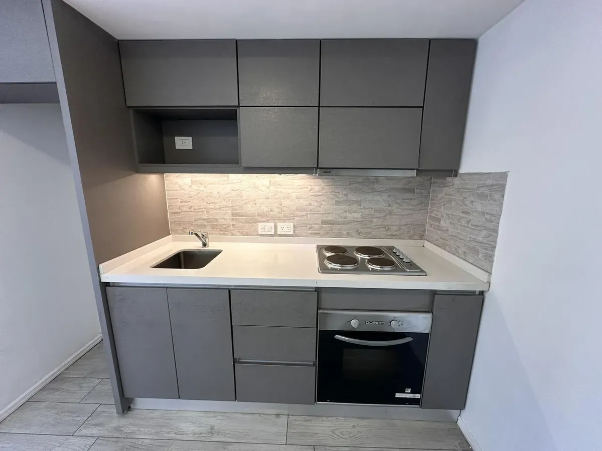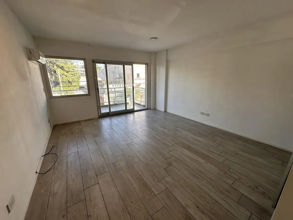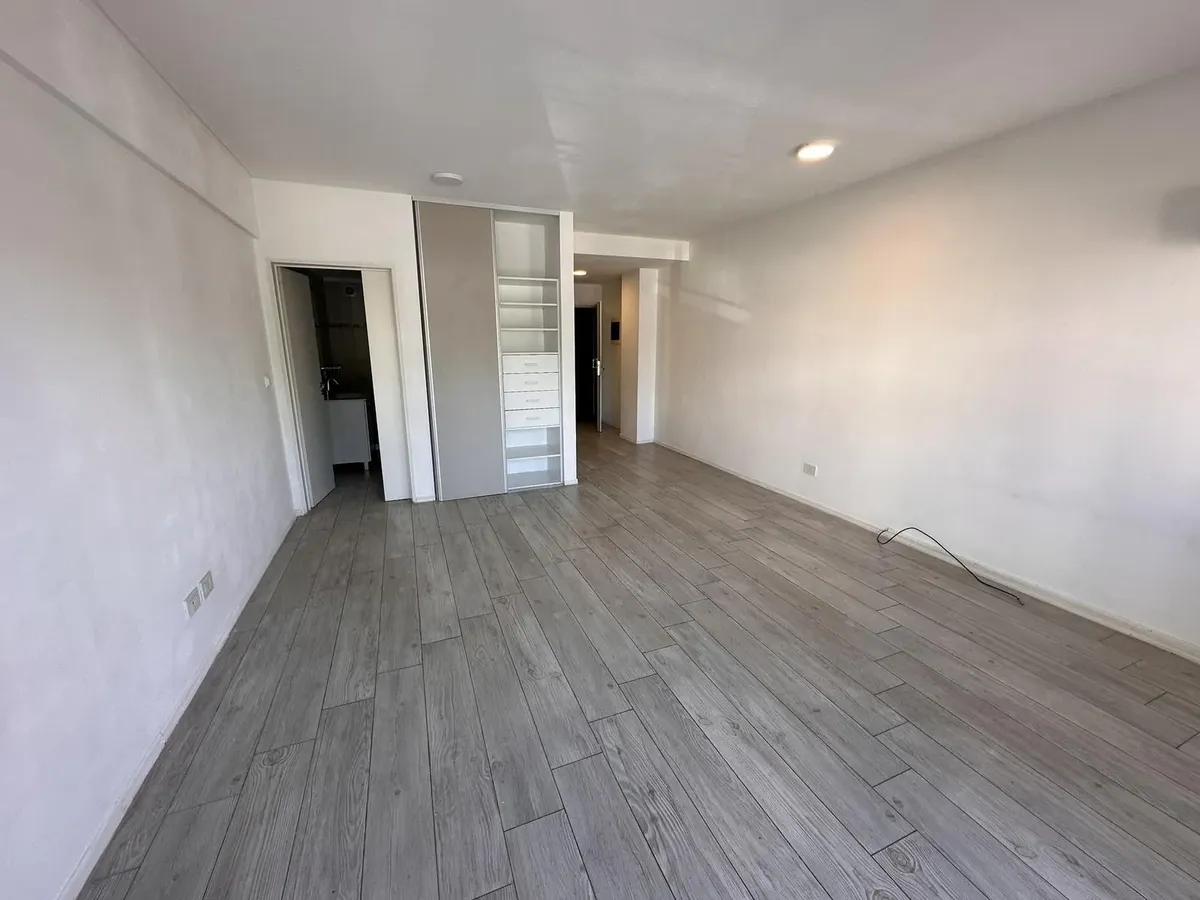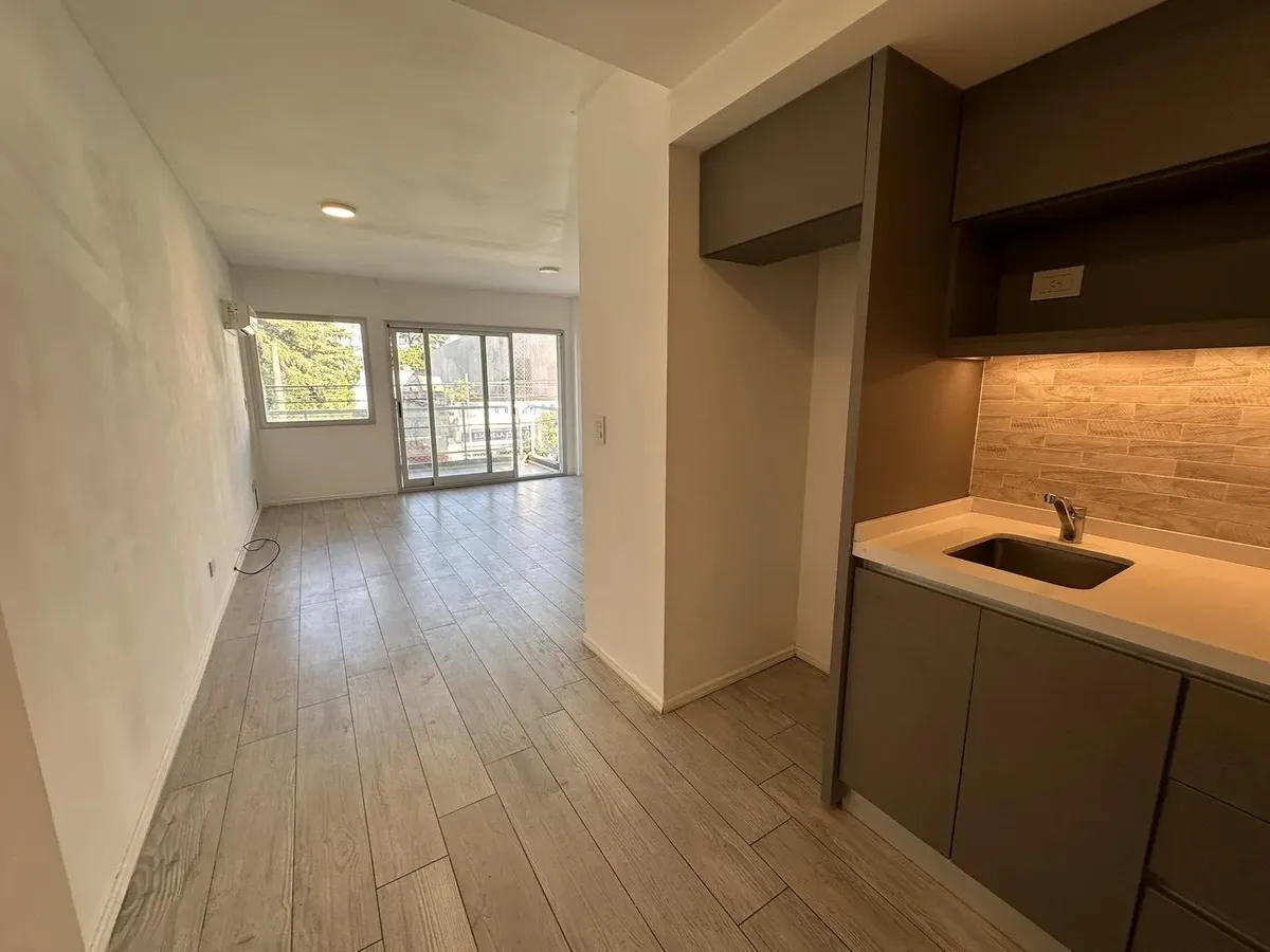 Kitnet em Villa Devoto, no 2º andar, com varanda de frente para a rua. Aquecimento por piso radiante com controle individual, ar-condicionado e segurança por totem. Prédio todo elétrico, com salão de festas (SUM) e área de churrasco. Condomínio em fevereiro: $118.000. Unidade apta para pessoas com mobilidade reduzida; não possui conexão para lavadora (lavarropas). Contrato de 2 anos, reajuste trimestral por IPC, seguro-fiança e 1 mês de depósito.