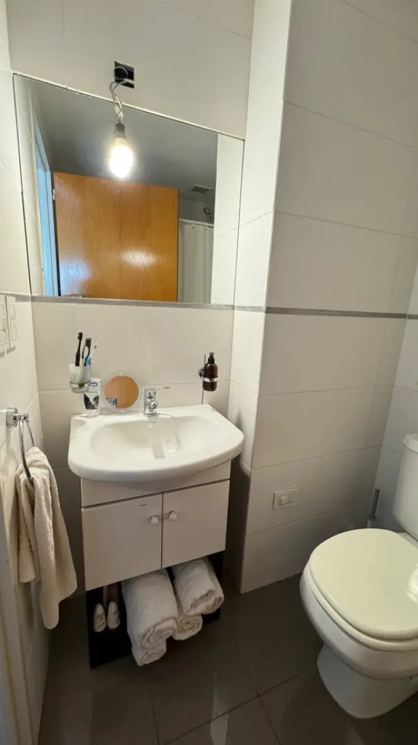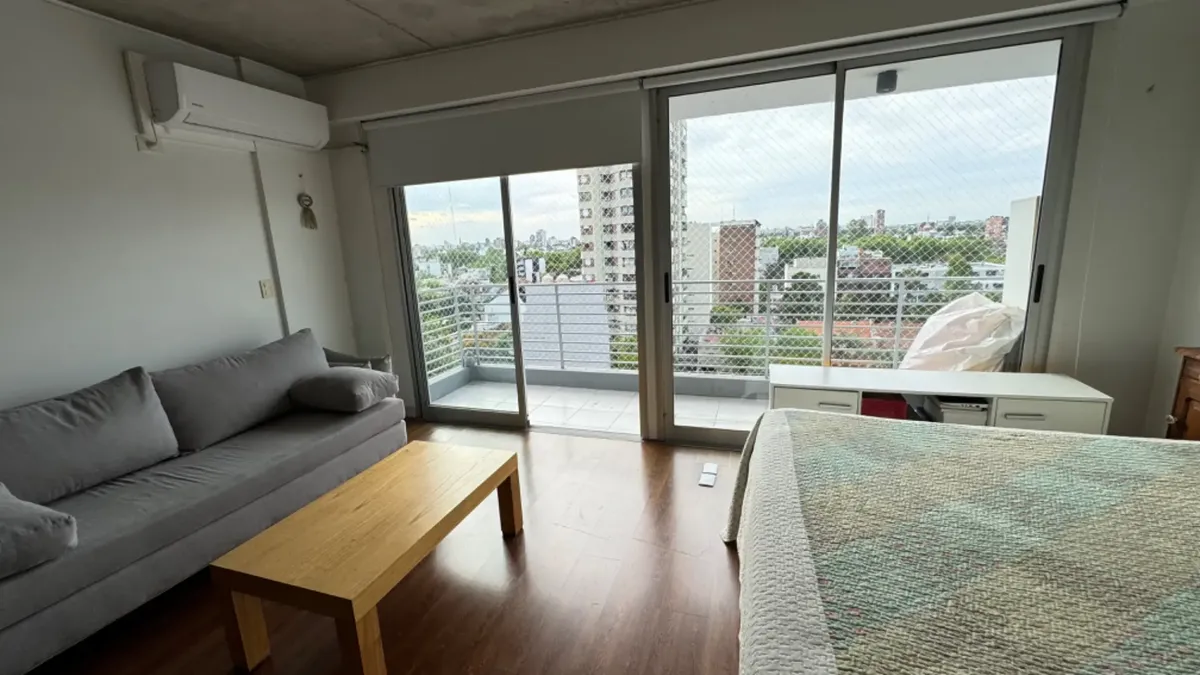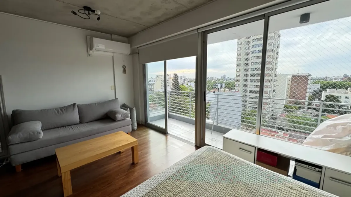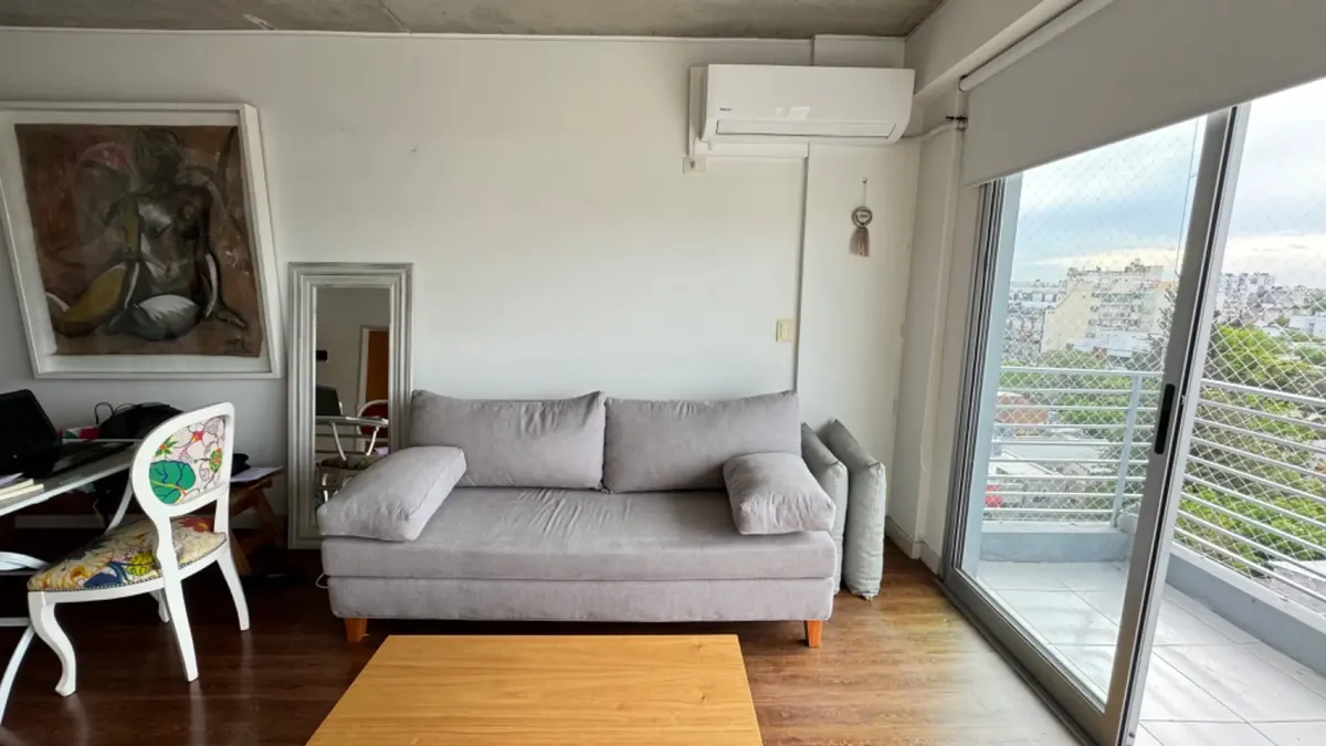 Kitnet em Villa Devoto, em andar não informado, de fundos (contra frente), com living integrado com armário, cozinha semi independente com móveis planejados superior e inferior, área de serviço integrada, banheiro completo e piso flutuante. Há varanda corrida de 8 m² de fundos, com 2 janelas amplas, e ar-condicionado frio/quente. O imóvel tem terraço privativo revestido em cerâmica de 30 m² e vista totalmente aberta. A unidade é apta para uso profissional.