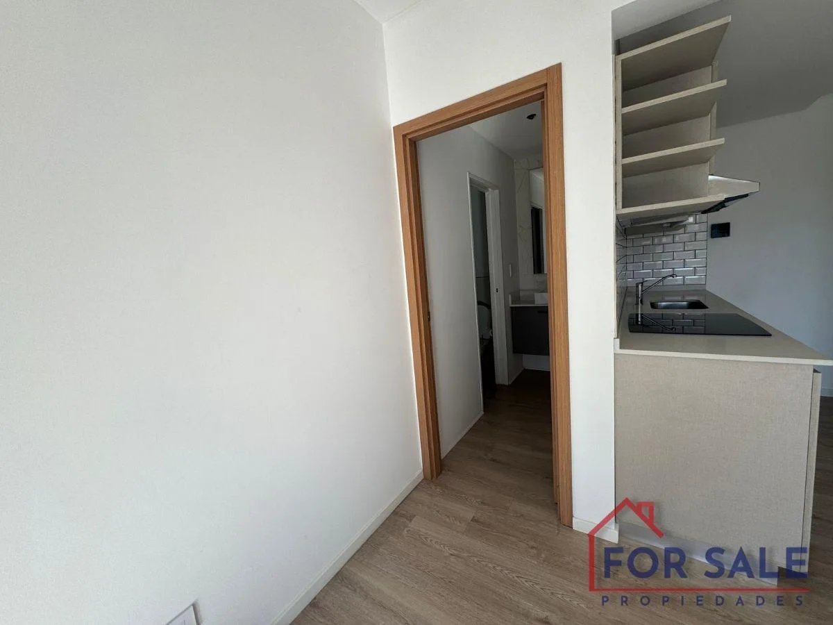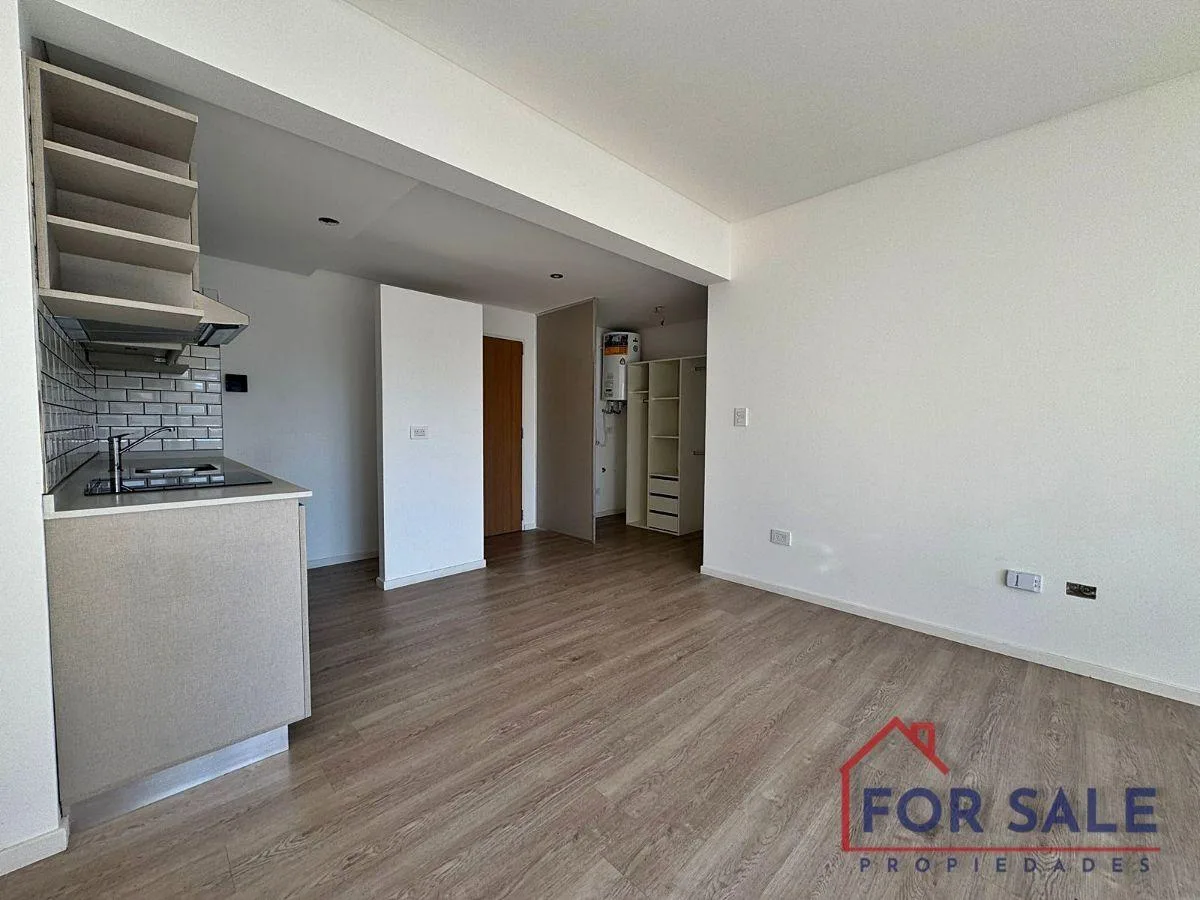 Apartamento tipo kitnet em Villa Devoto, no prédio “Devoto Blue”, com varanda de fundos. O imóvel tem cozinha integrada com fogão elétrico em vitrocerâmica, forno elétrico embutido e coifa/extrator de odores; inclui armário/vestidor com conexão para máquina de lavar. Possui ar-condicionado split frio/quente e banheiro completo. Há vaga de depósito no subsolo. O condomínio inclui área de terraço com área de churrasco e salão comunitário (SUM). O valor anunciado inclui o condomínio (expensas). Reg