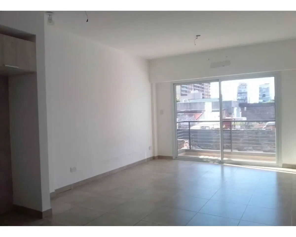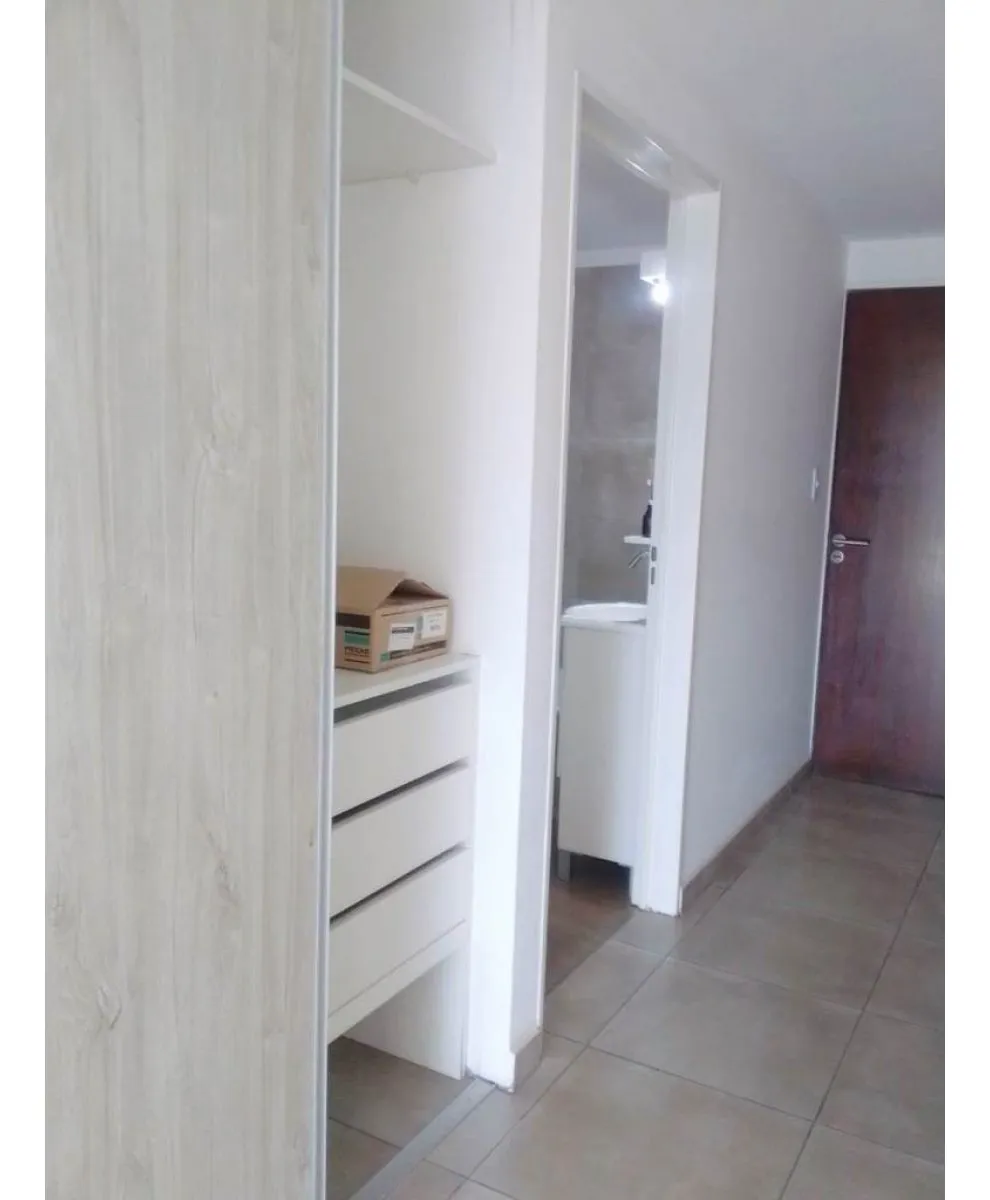 Kitnet com 40 m² totais (38 m² cobertos), no 3º andar de um prédio com 6 níveis, de fundos (contrafrente) e com orientação norte. O ambiente principal tem armário completo com gaveteiros, estantes e barra para roupas. A cozinha vem com fogão (anafe), forno embutido e espaço para micro-ondas e lavadora. Banheiro completo e varanda de 2 m². Água quente central e instalações elétricas no apartamento. Condomínio aproximado: $90.000 ARS. Não são aceitos animais de estimação.