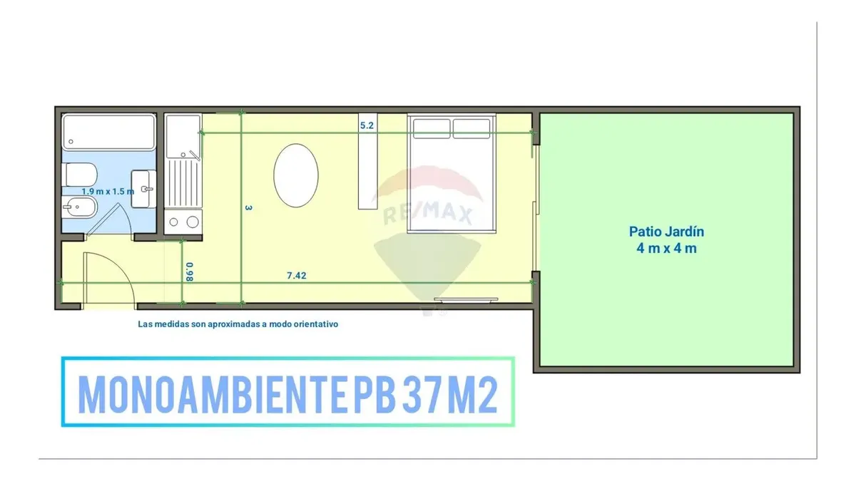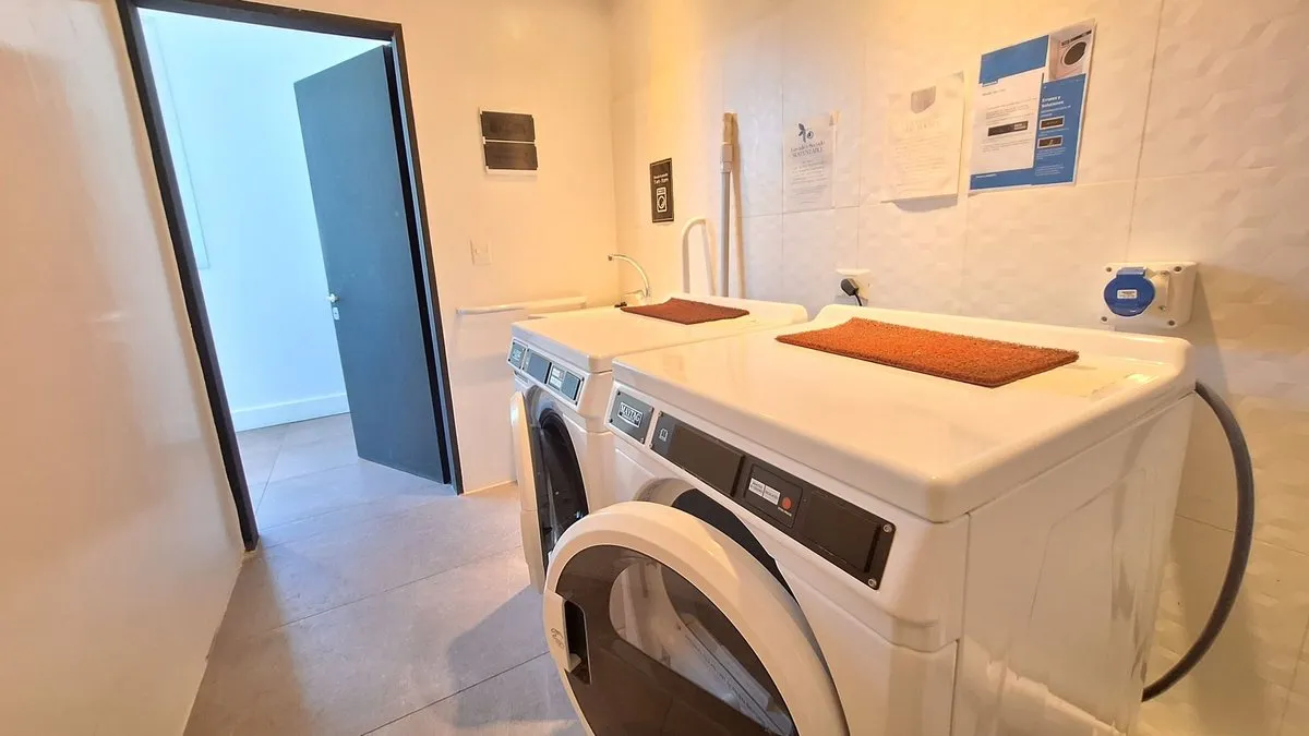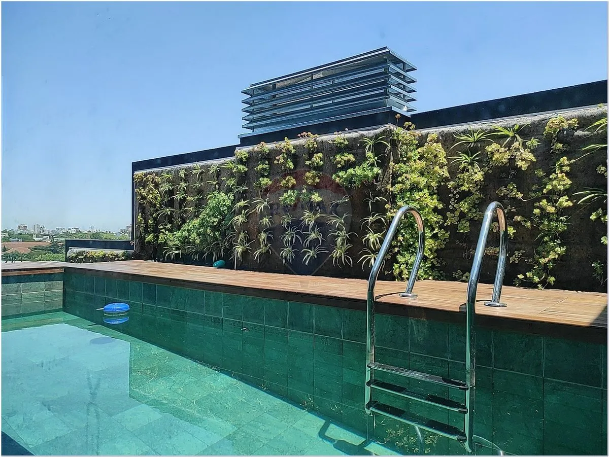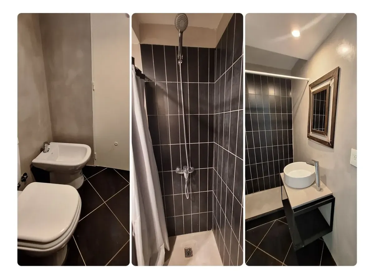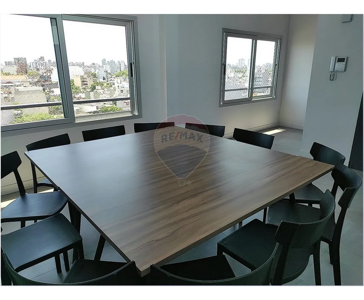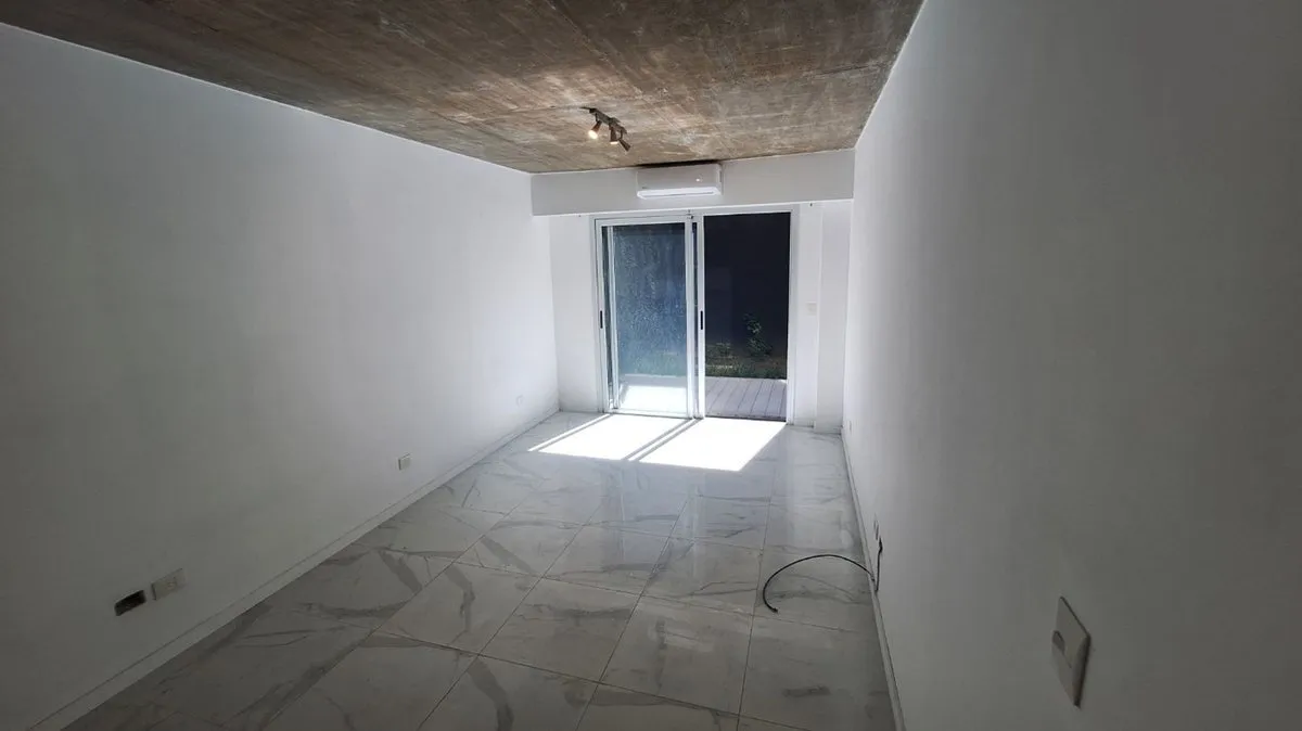 Kitnet de 1 ambiente, térrea, de fundos, com pátio/jardim em Villa Ortúzar. Cozinha com forno e cooktop elétrico, espaço para geladeira sob a bancada e armários sob e sobre a bancada. Ambiente com split frio-calor, luminárias, pisos de porcelanato calacata e teto de concreto aparente; banheiro com ducha e vista para o pátio/jardim. O prédio tem piscina, solarium, deck, salão de festas (SUM) e laundry no 9º andar, além de água quente central por aquecedor a gás. Contrato residencial de 2 anos, re