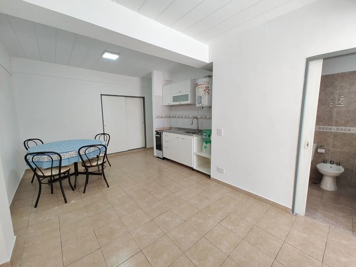 Kitnet (apartamento monoambiente) no primeiro andar, de frente para a rua, com hall de entrada, armário, cozinha integrada, banheiro completo e área de estar. Possui varanda corrido. Há ar-condicionado e o prédio tem 3 andares, com elevador. As despesas de condomínio, ABL e AYSA estão incluídas no valor do aluguel. A parte locatária paga apenas a eletricidade. O imóvel é entregue sem móveis. Localiza-se na Av. Mosconi, a 2 quadras de Artigas (Centro Comercial) e a 2 quadras da Av. de los Constit