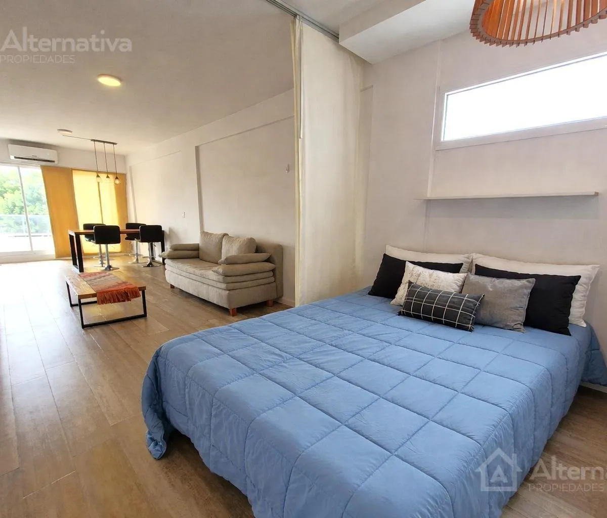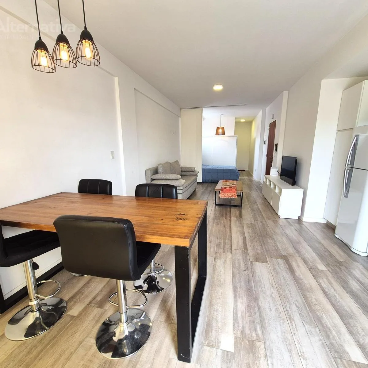 Kitnet (1 ambiente) mobiliada, com área integrada para estar, mesa e descanso, e balcão. Cozinha equipada para uso diário e banheiro completo. Condomínio e serviços incluídos no aluguel temporário mensal; luz e gás com limite de consumo. Não aceita animais.