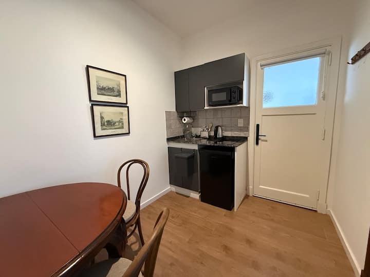 Квартира-студия с кухней, зоной отдыха и собственной ванной комнатой. Укомплектована кухней, посудой, постельным бельём и полотенцами. Расположена в Acassuso, рядом со станцией, торговым центром и Río de La Plata.