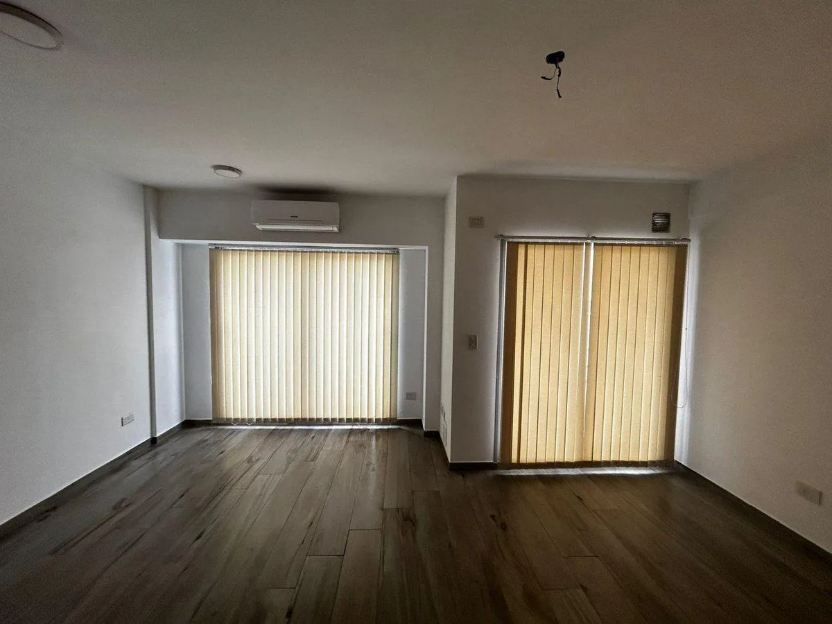 Квартира в 8-м этаже, 2 ambientes (1 спальня и гостиная), в отличном состоянии. Окна во двор (contrafrente), ориентация западная. Площадь не указана. Есть общая гостиная для жильцов (SUM), солярий, зона гриля (parrilla) и генератор. В гостиной-столовой по 2 балкона. Кухня с нижними шкафами и навесными модулями (alacena), столешницы из гранита и мойка из нержавеющей стали; плита Orbis. Подключение для стиральной машины. В спальне шкаф с 3 дверцами и внутренним наполнением. Ванная комната полность