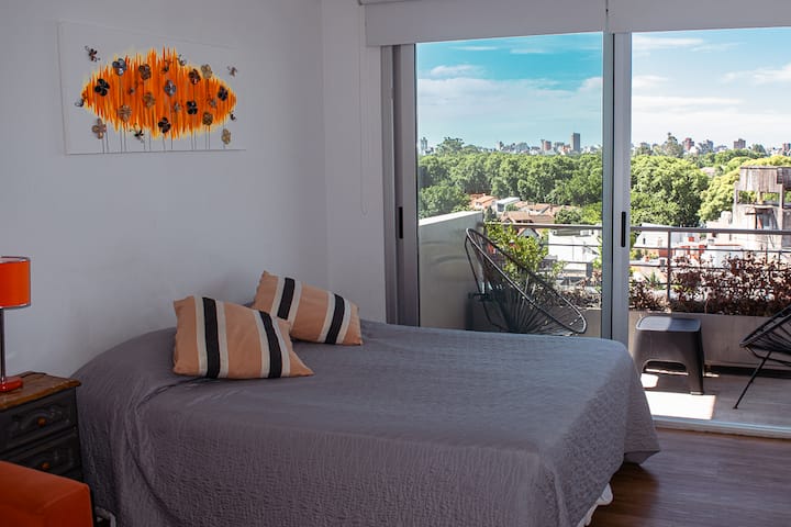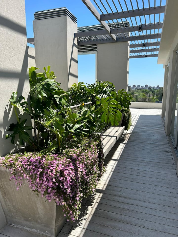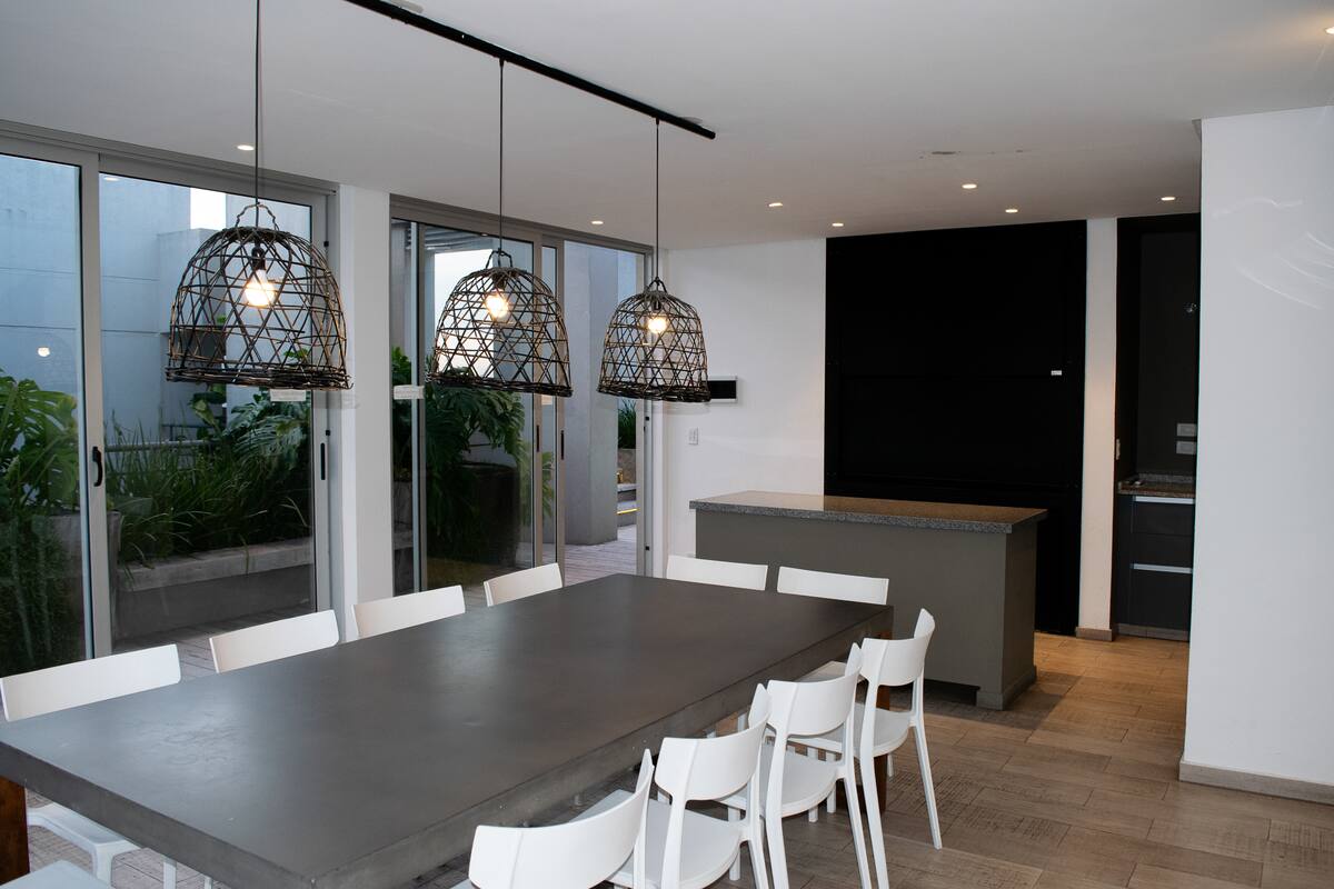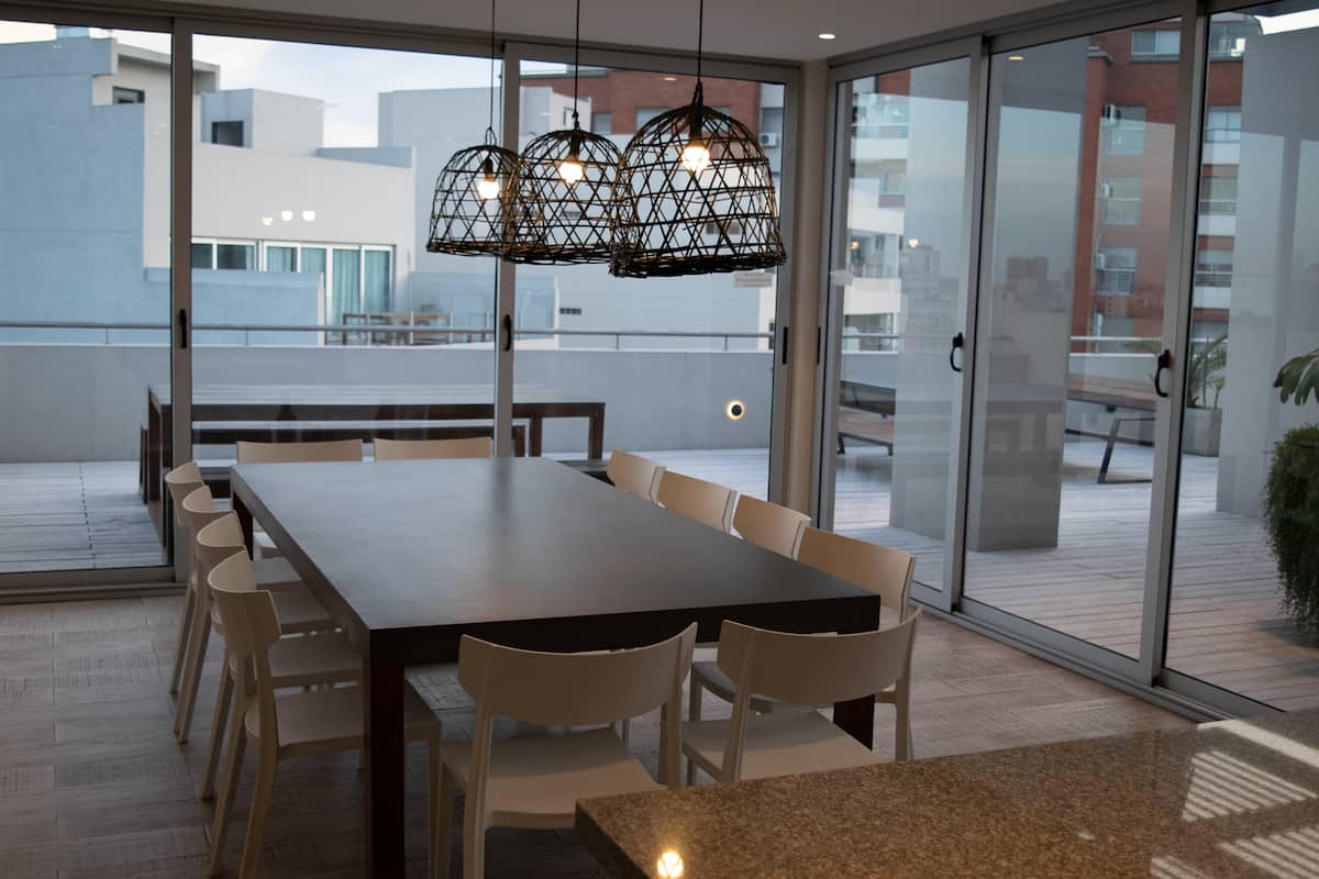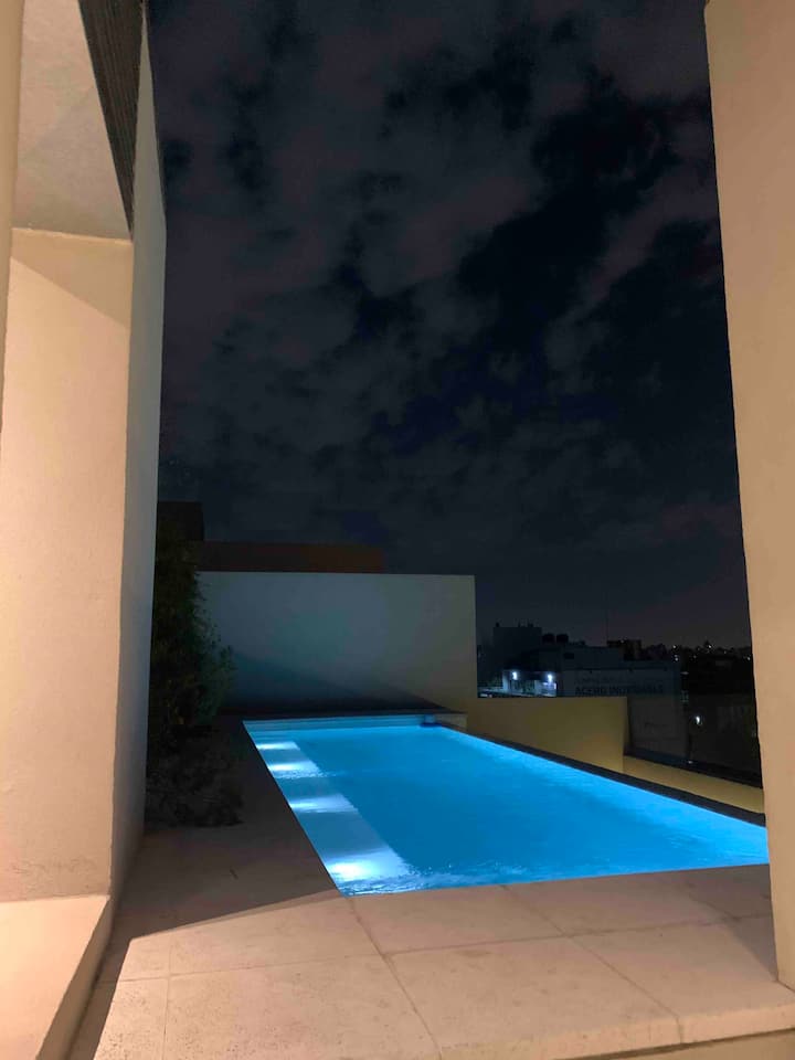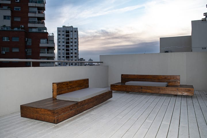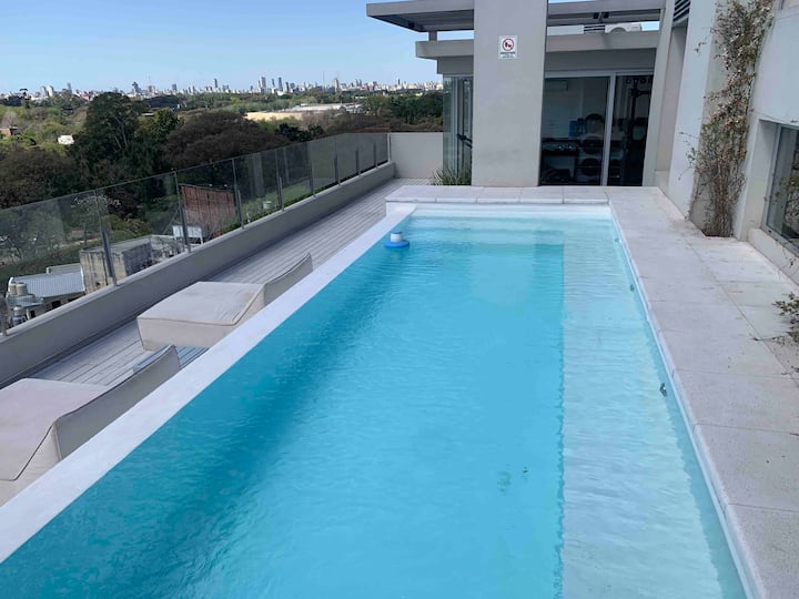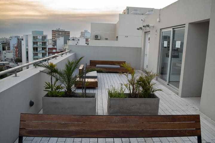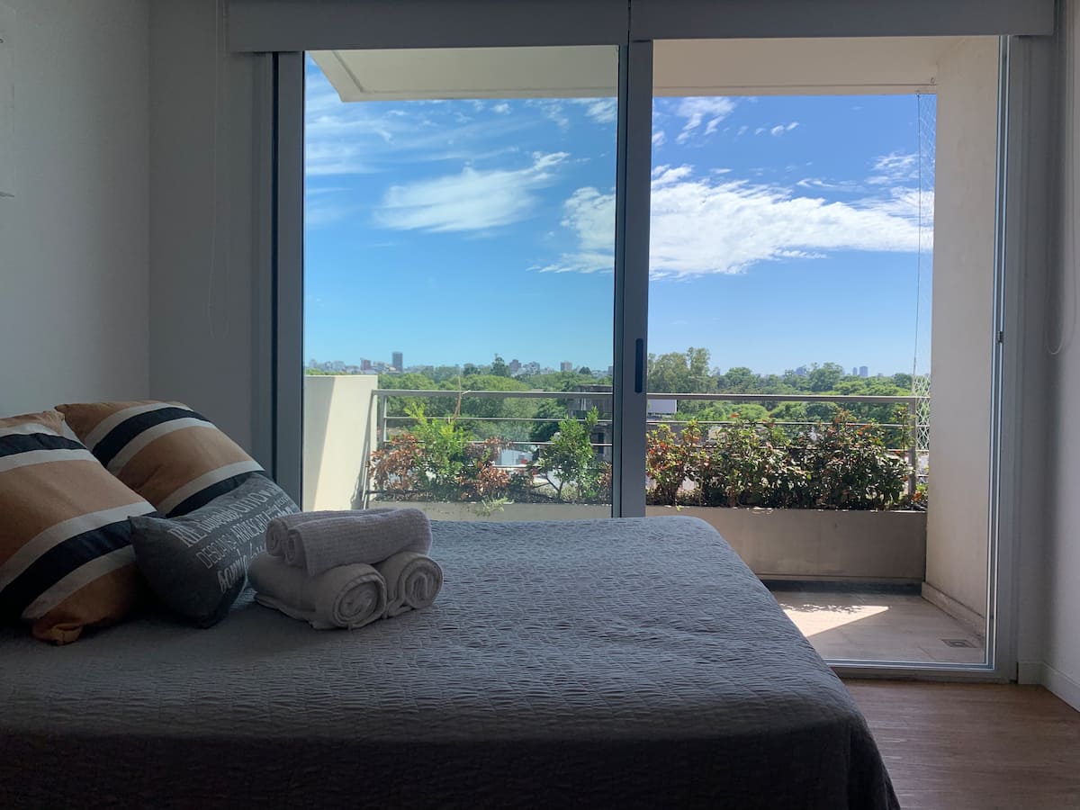 Квартира-студия на 7 этаже в жилом комплексе. Есть балкон с панорамным видом на парки в Agronomía и город Buenos Aires. Центральное горячее водоснабжение, давление воды указано как высокое. В здании предусмотрены охрана 24 часа, бассейн, тренажёрный зал, общая гостиная для жильцов (SUM) и прачечная. Бассейн не отапливается, работает в течение всего года; в сезон он доступен 24 часа. В бассейне допускаются только проживающие, гостей и родственников не допускают. Доступ к помещениям и сервисам: