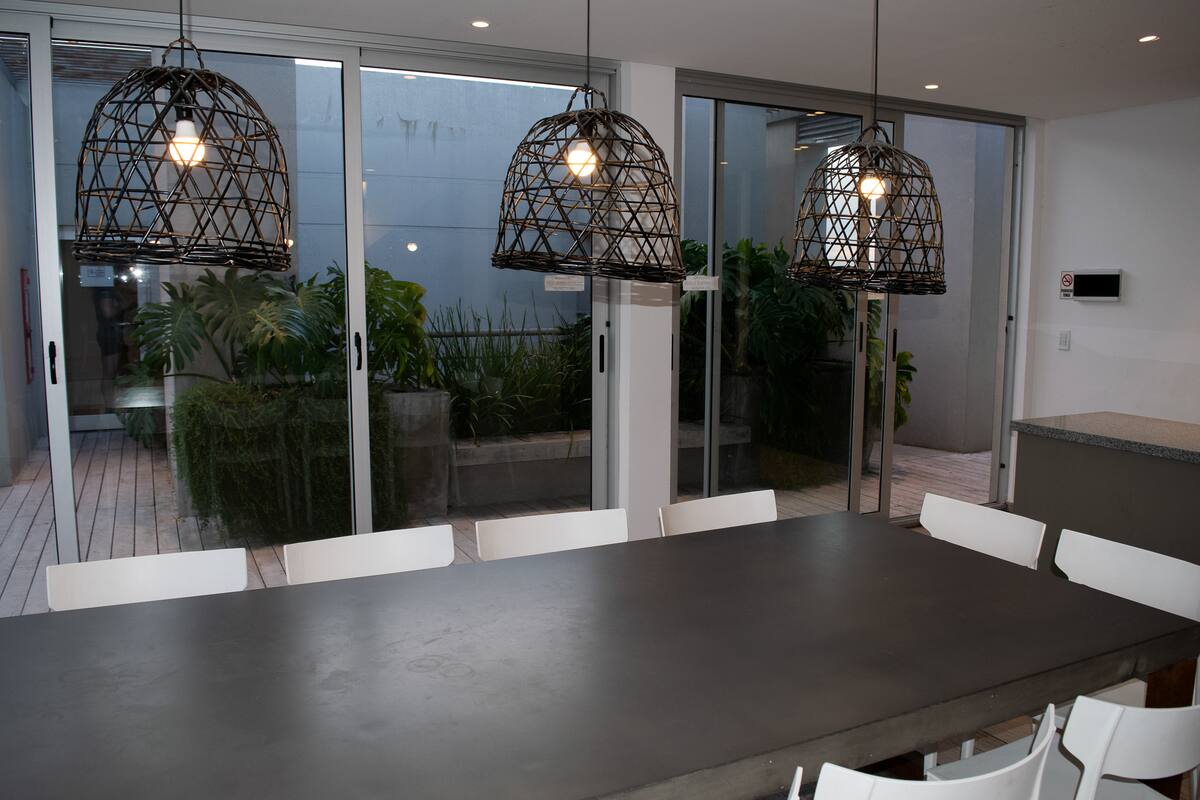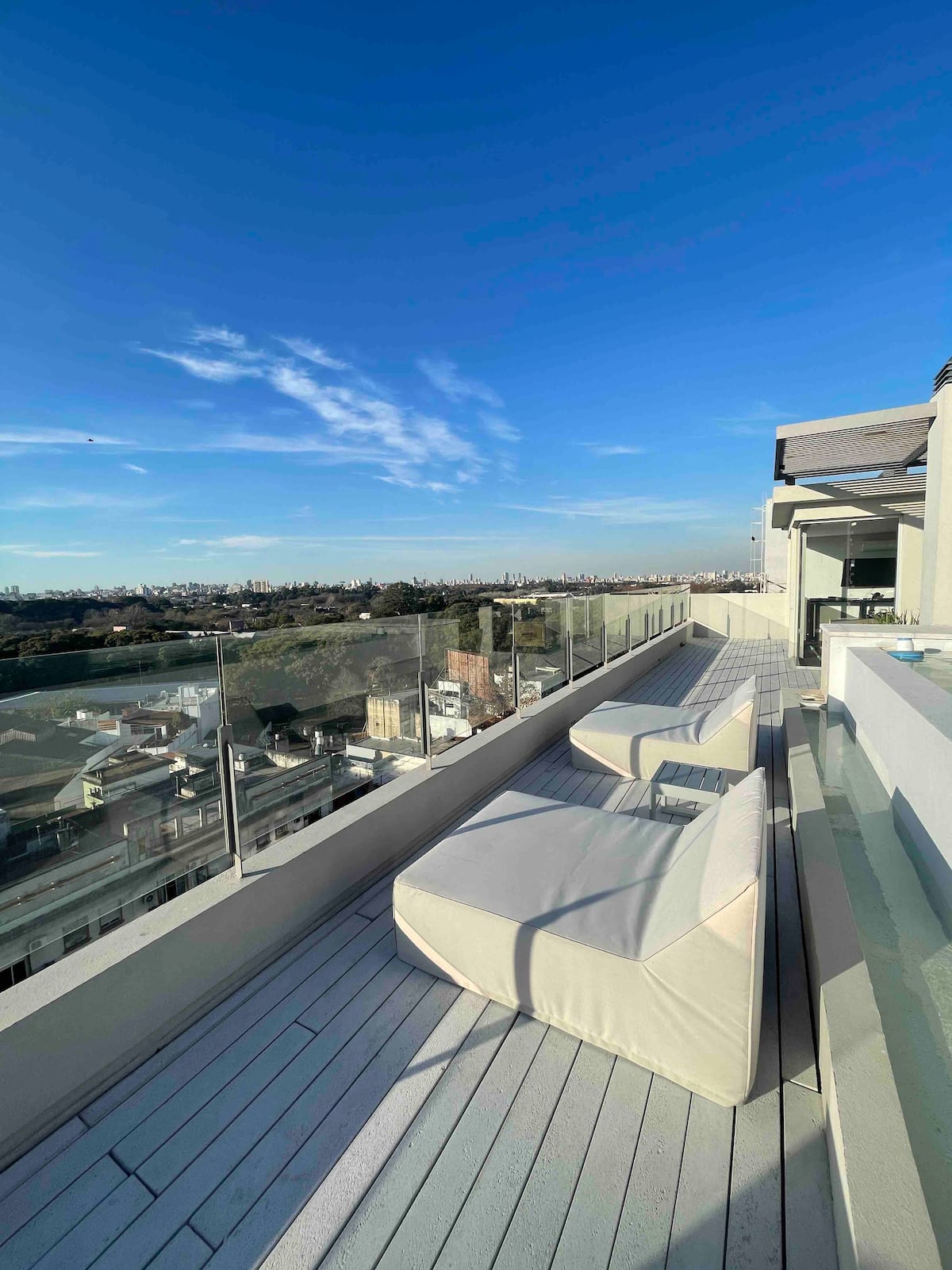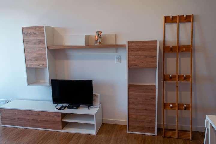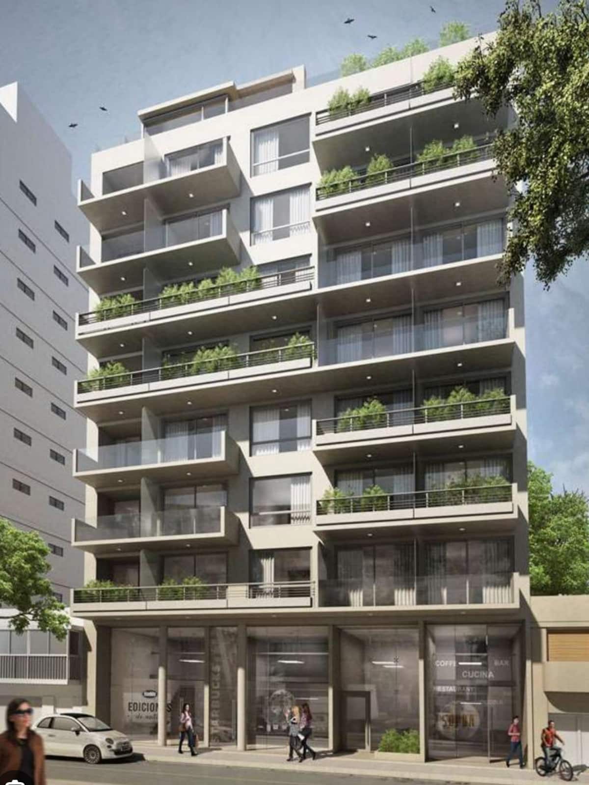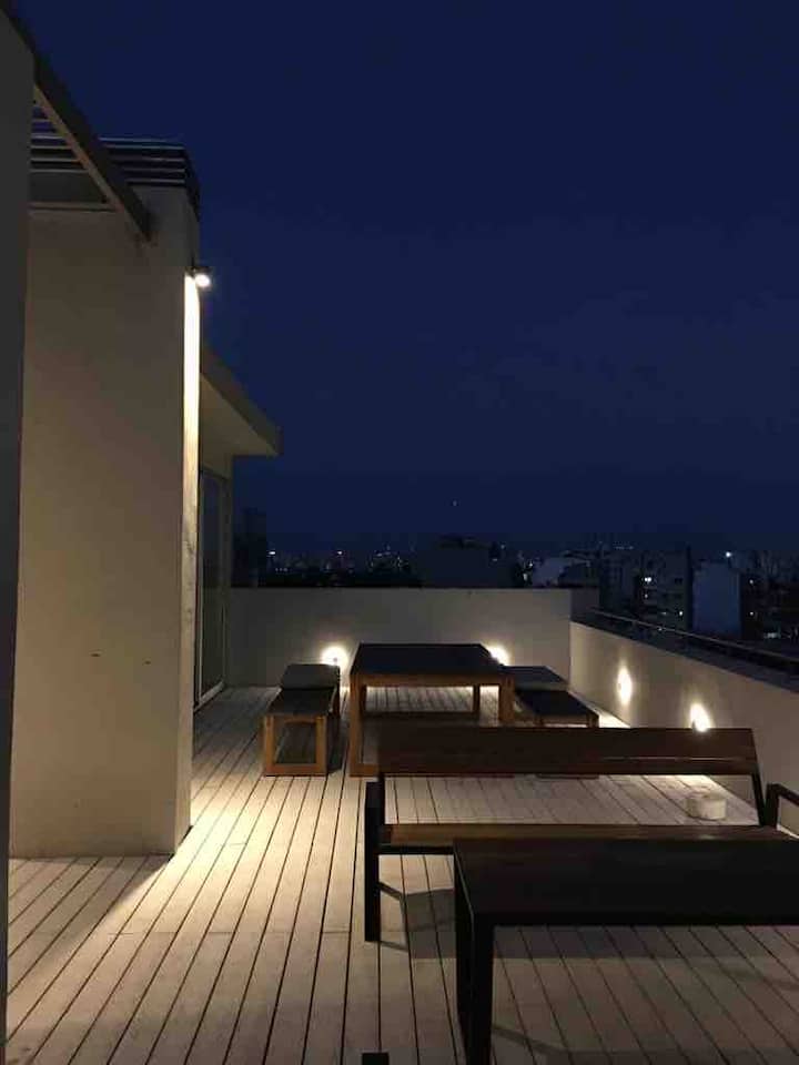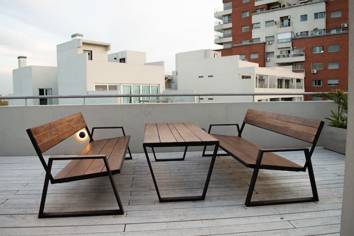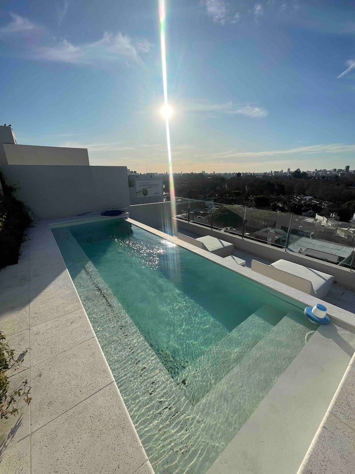Квартира-студия на 7 этаже в жилом комплексе. Есть балкон с панорамным видом на парки в Agronomía и город Buenos Aires. Центральное горячее водоснабжение, давление воды указано как высокое. В здании предусмотрены охрана 24 часа, бассейн, тренажёрный зал, общая гостиная для жильцов (SUM) и прачечная. Бассейн не отапливается, работает в течение всего года; в сезон он доступен 24 часа. В бассейне допускаются только проживающие, гостей и родственников не допускают. Доступ к помещениям и сервисам: