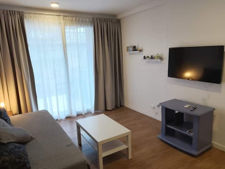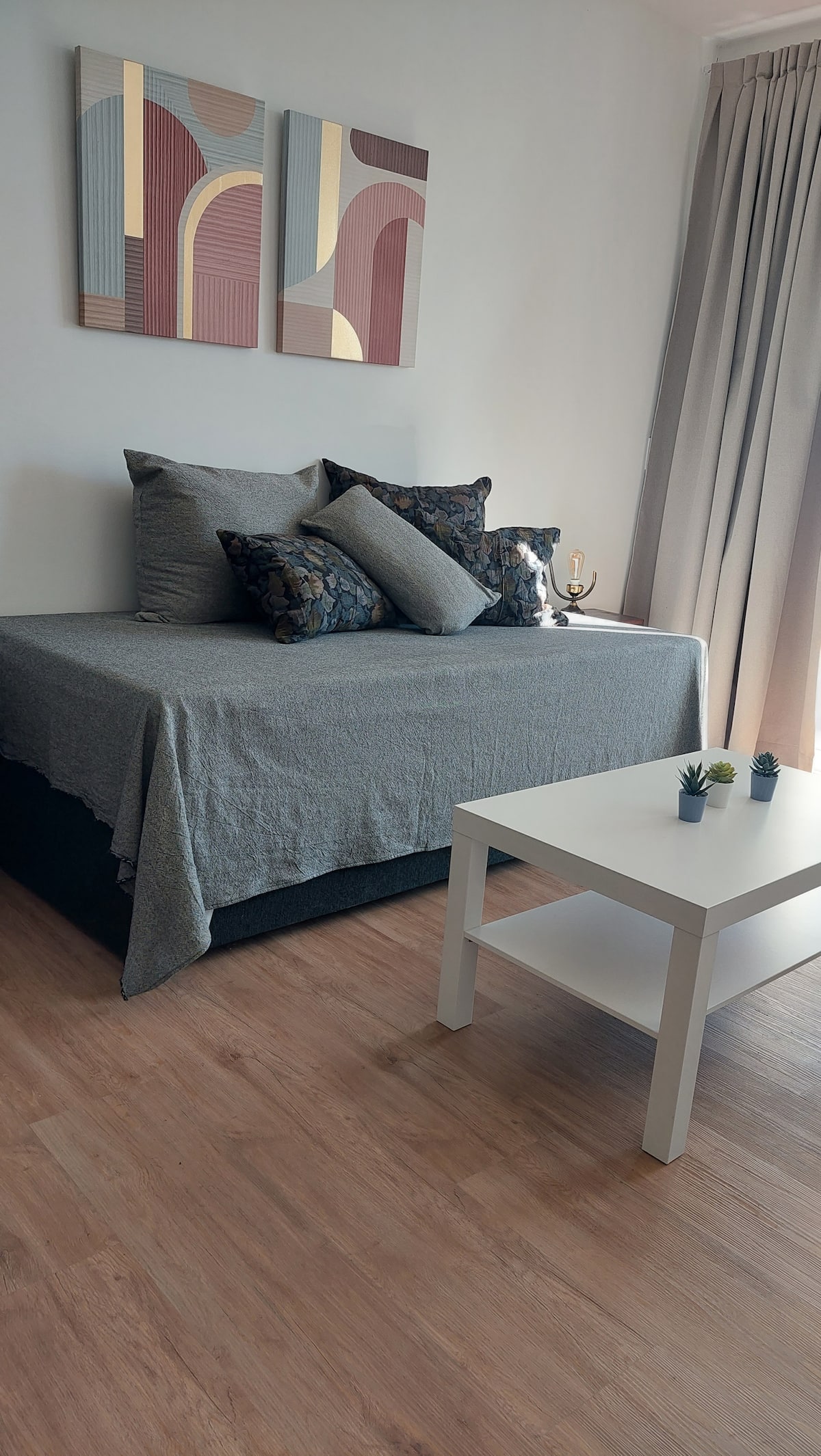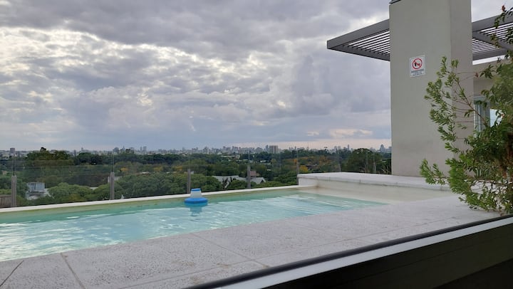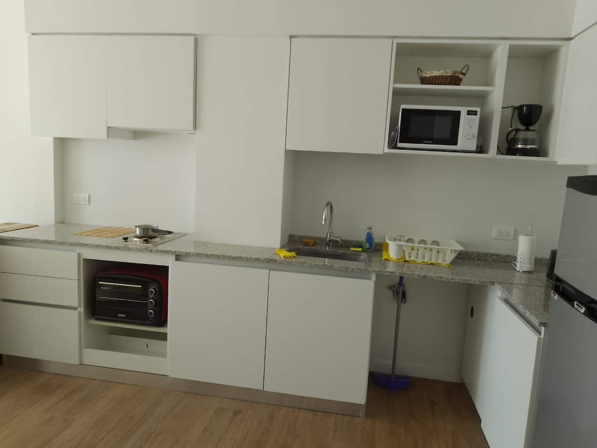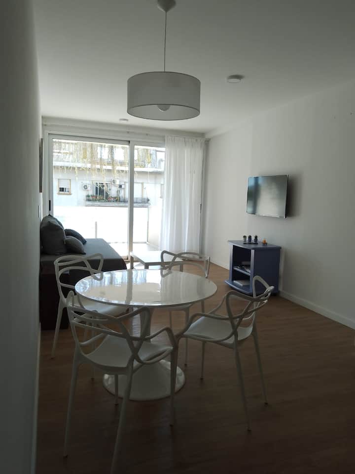 Новая квартира с 1 спальней. В спальне есть гардероб и ванная комната. В отдельной зоне предусмотрены кухня, столовая и диван-кровать для 2 человек. Из окон вид на здание UBA Agronomía и Ветеринарии; в доме круглосуточная охрана и быстрый Wi‑Fi. На территории здания есть терраса с общей гостиной для жильцов (SUM), зоной гриля, бассейном и тренажёрным залом, также указана круглосуточная охрана.