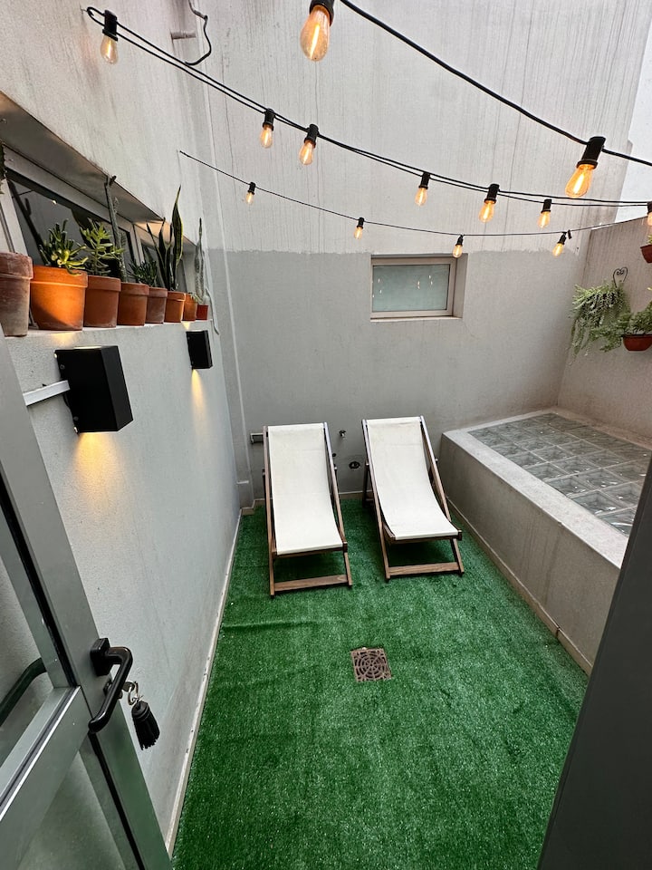Квартира-студия площадью 1 спальня? (источник не указывает площадь) в Almagro, новая, без ранее проживавших. Есть патио и балкон. Окна выходят на двор? (источник не уточняет ориентацию). В здании работает управляющий и привратник. До метро под линией B, станция Ángel Gallardo, 1 квартал.