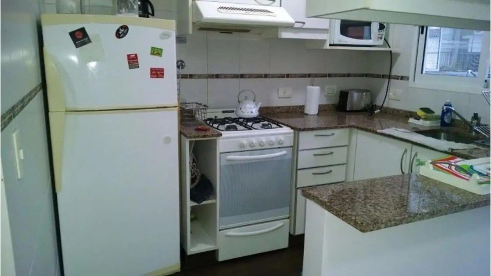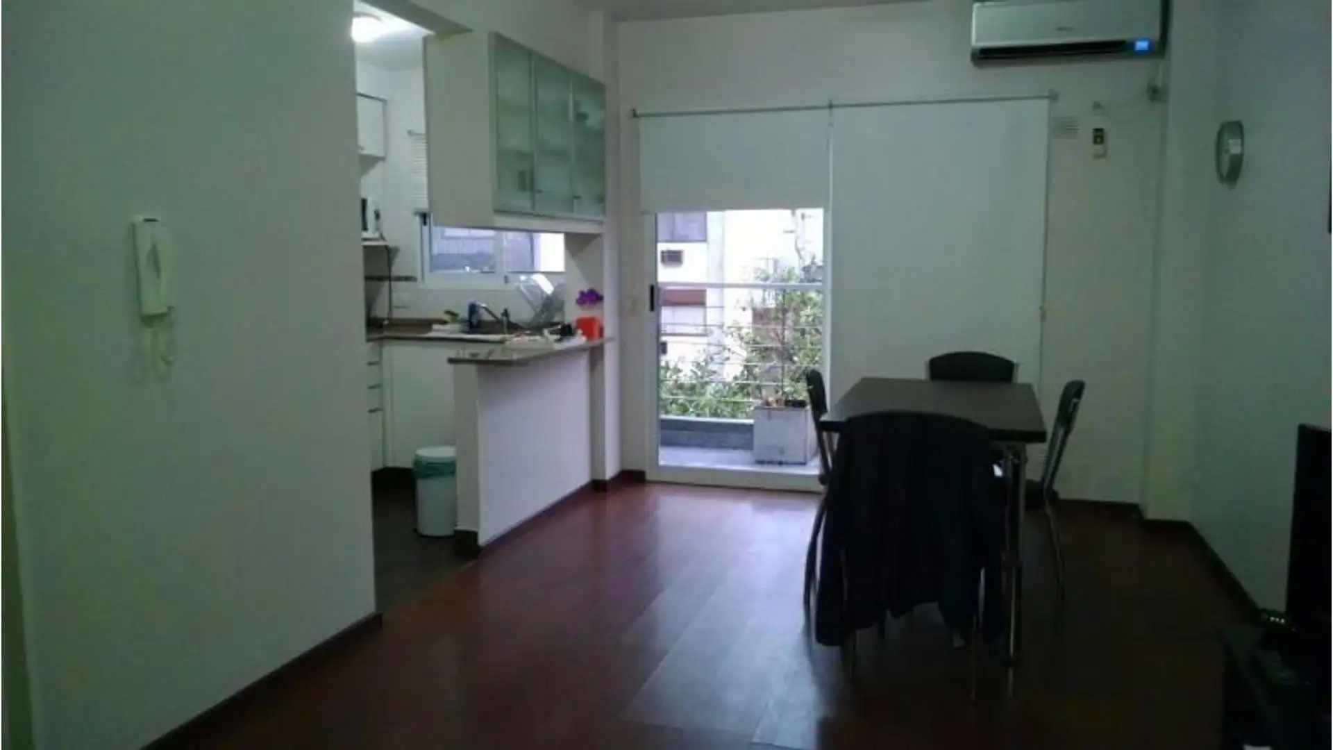 Квартира с 1 спальней площадью 44 m², с балконом на улицу. Есть кондиционер (холод/тепло), кабельное TV, Wi‑Fi и телефон. Кухня отдельная, с холодильником с морозильной камерой; в комнате — шкаф и двуспальная кровать, которую можно раздвигать. В описании указано, что въезд возможен после внесения примерно 3 месяцев: 1 месяц аренды, 1 месяц залога и 1 месяц комиссии.