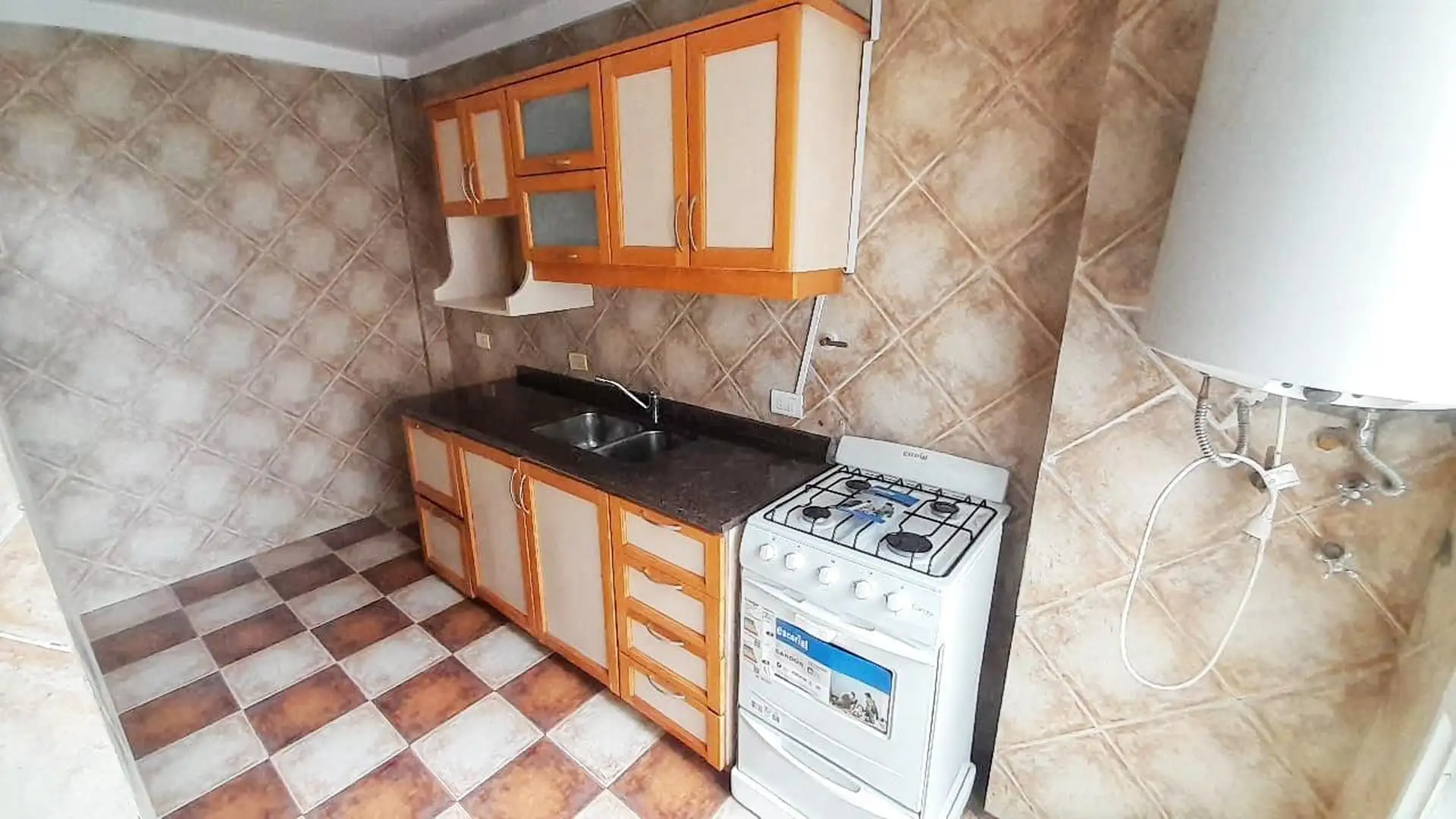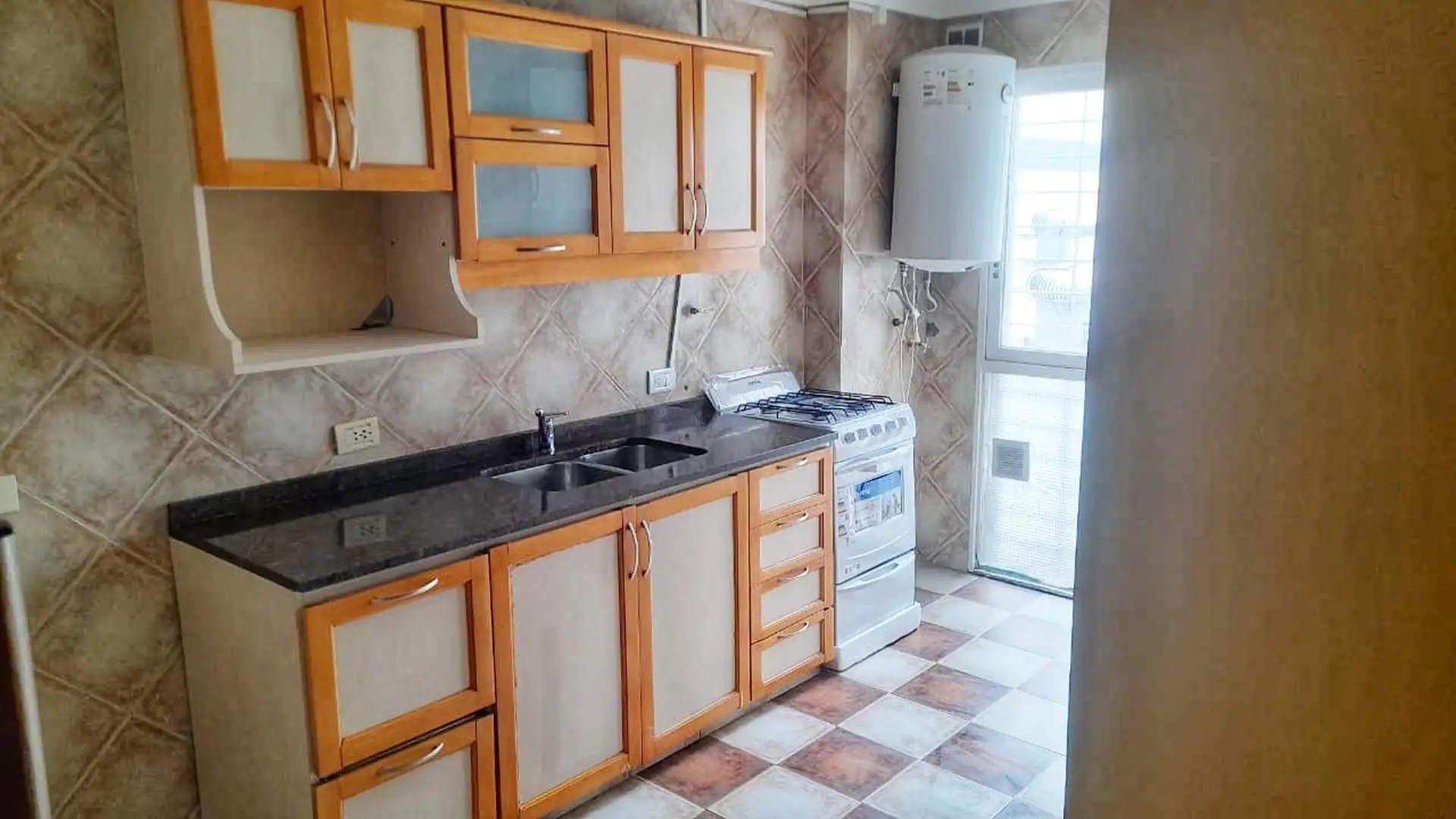 Квартира 2 ambientes площадью 47,75 m², расположена на 2-м этаже, окна на улицу. В квартире гостиная-столовая, отдельная кухня с газовой плитой, ванная комната и спальня с шкафом. В здании два лифта, отопление с лучистой плитой, тёплая вода от электрического термобойлера; предусмотрены подключения для стиральной машины и зоны для стирки белья. Коммунальные платежи здания указаны за февраль 2026 года; ABL — по отдельной стоимости.