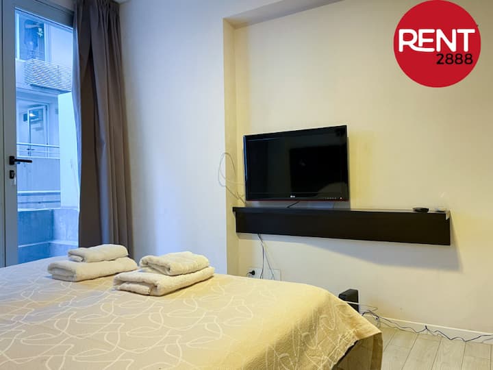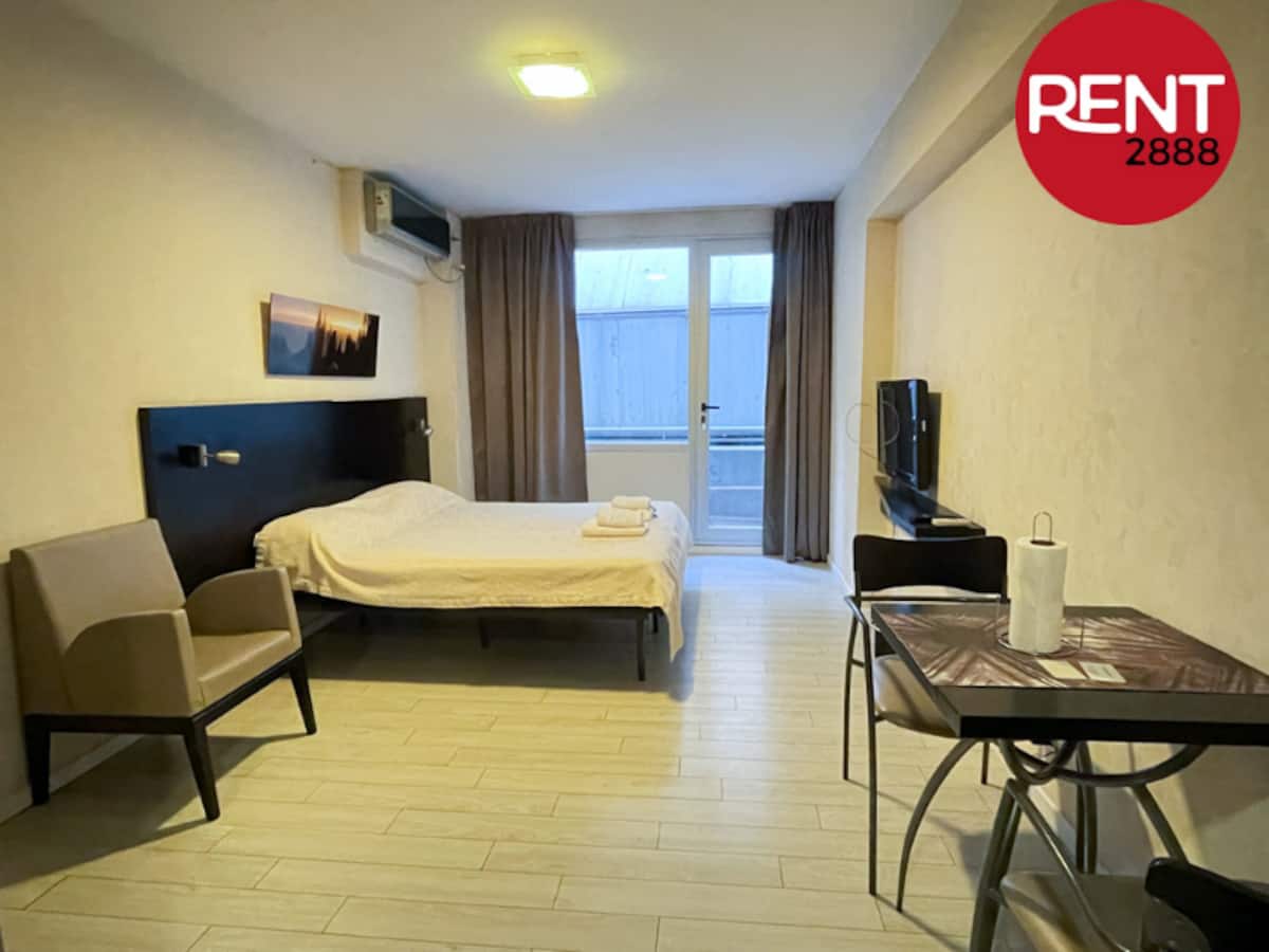 Квартира-студия с балконом и видом во внутренний двор квартала в Almagro, в здании Tempora. В квартире есть зона сна с двумя объединёнными матрасами на основании, собственная ванная и полностью оборудованная кухня для приготовления пищи. Установлен кондиционер (холод/тепло); предусмотрены места хранения; предоставляются постельное бельё и полотенца. В здании есть прачечная на 7-м этаже (для стирки и сушки нужно приобрести чип на стойке), бассейн и тренажёрный зал на одном этаже с доступом с 9:00