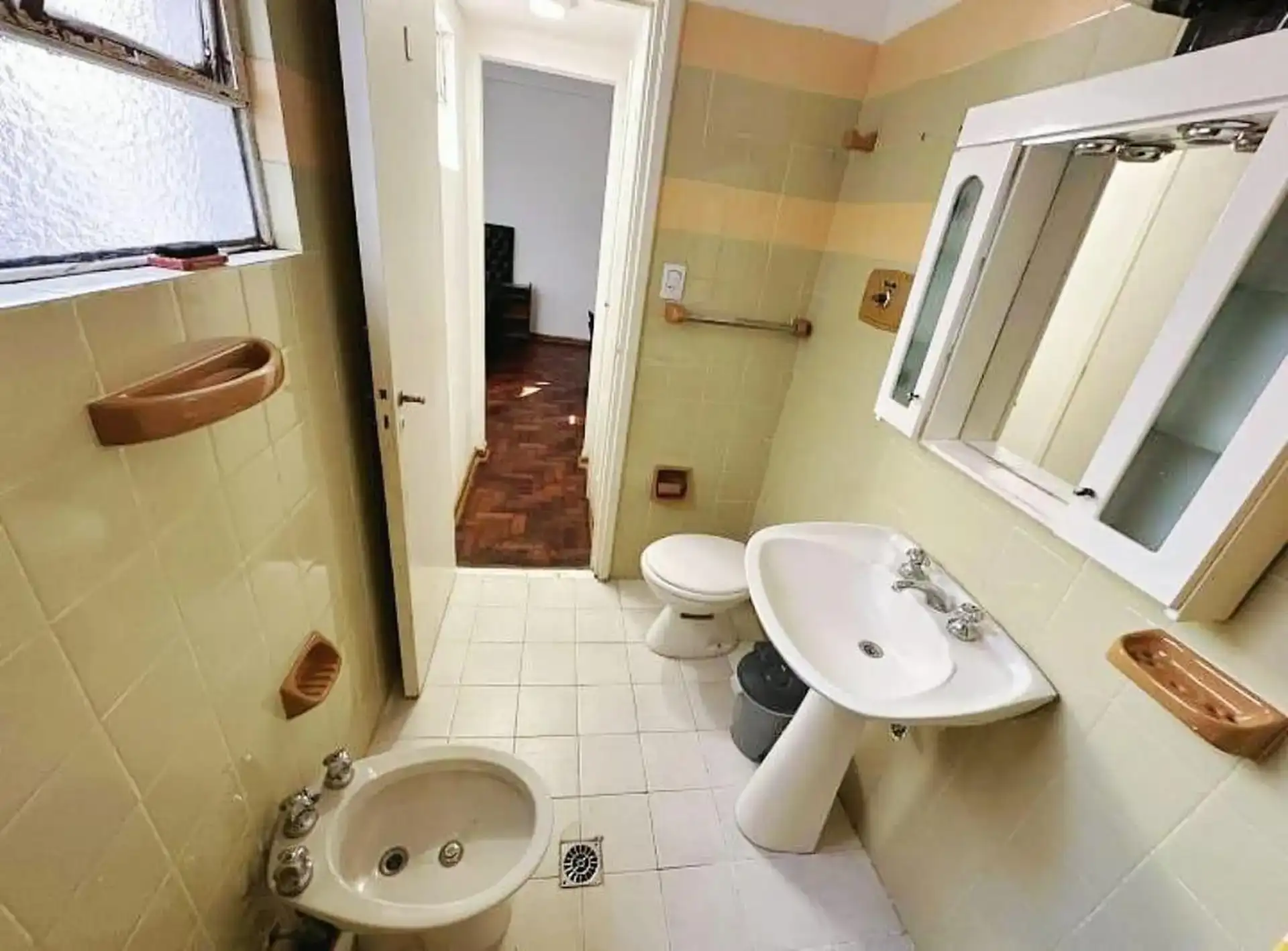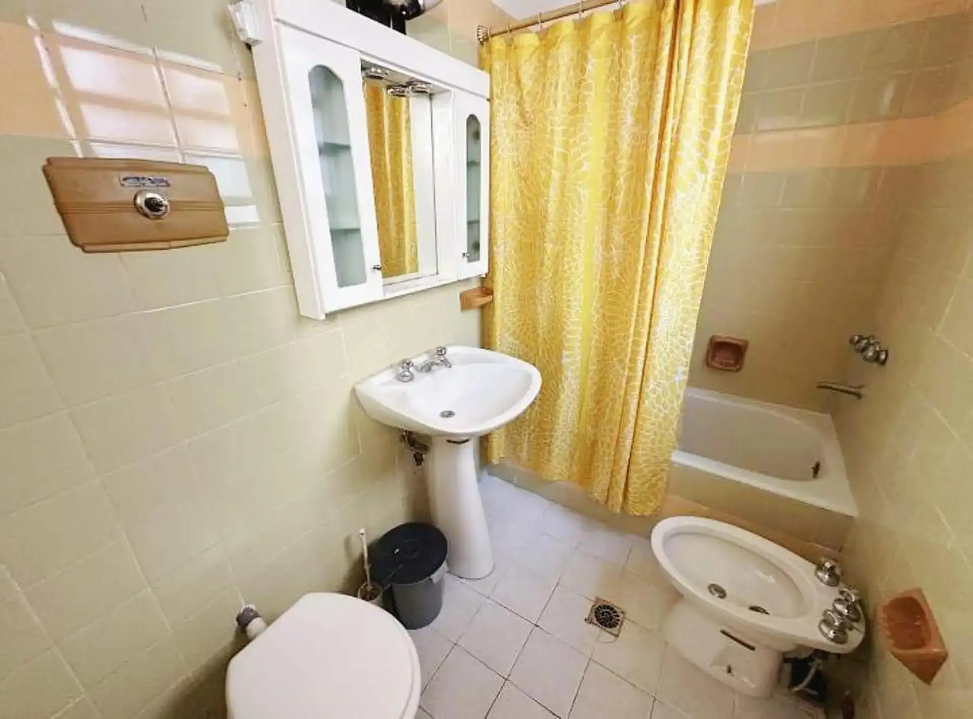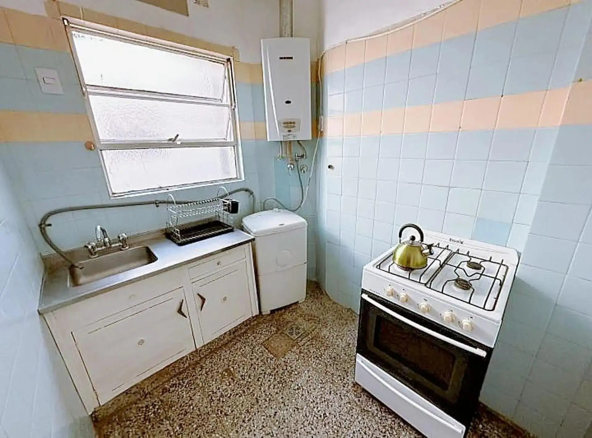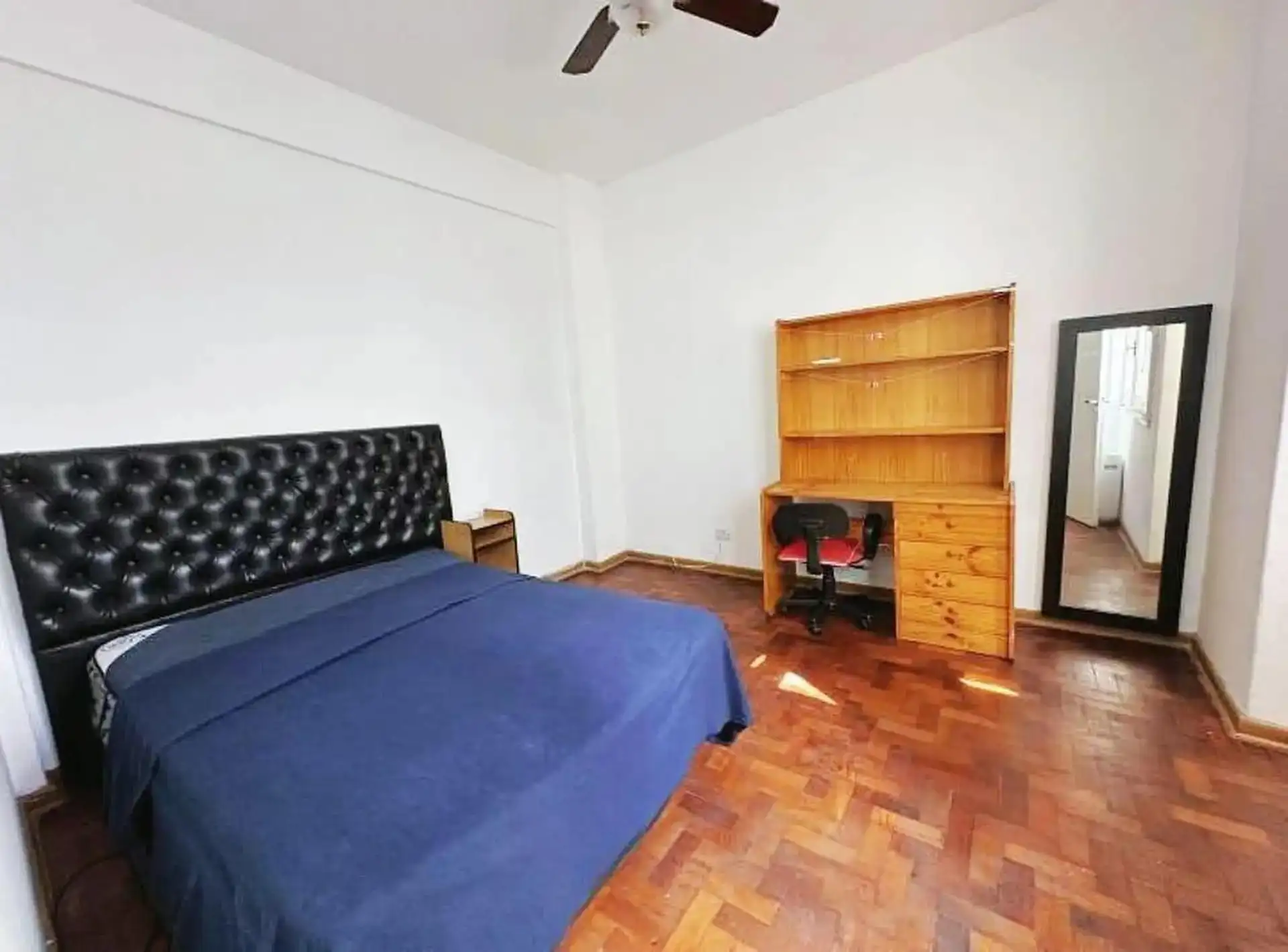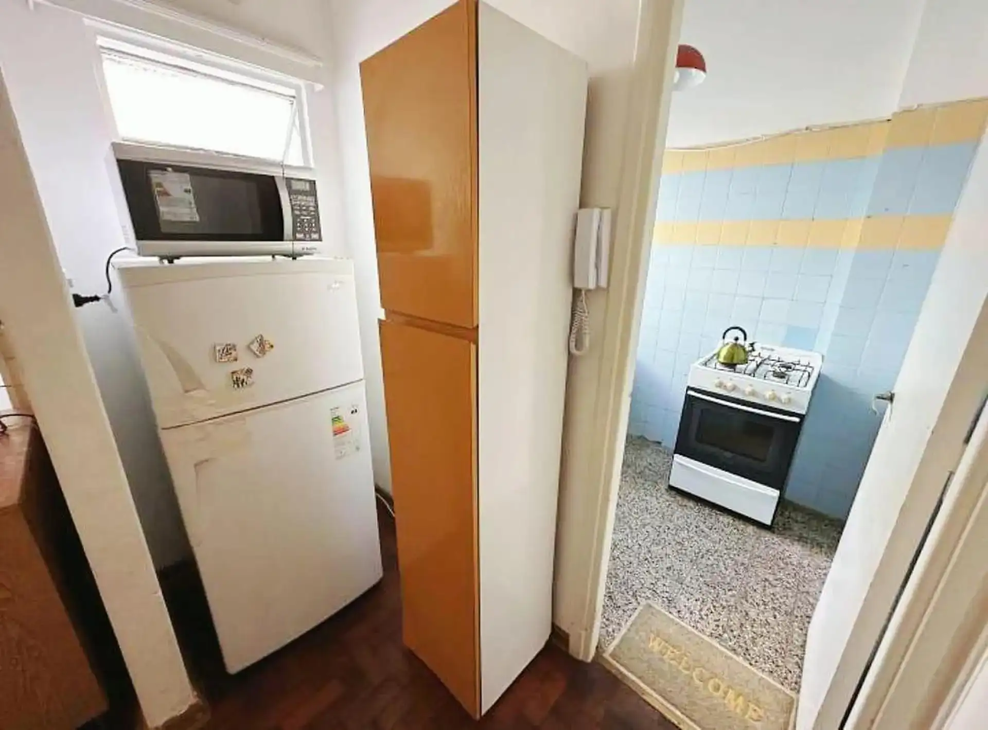 Квартира с двумя комнатами (1 спальня) на 2-м этаже без лифта, через лестницу. Общая меблировка и оснащение, деревянные полы. В гостиной-столовой есть телевизор и потолочный вентилятор. В спальне двуспальный матрас-sommier (матрас не входит в комплект), установлены кондиционер и потолочный вентилятор, есть встроенные шкафы, письменный стол. Ванная комната с ванной в suite. Отдельная кухня с холодильником с морозильной камерой и микроволновой печью, установлена стиральная машина (lavarropas). Ест