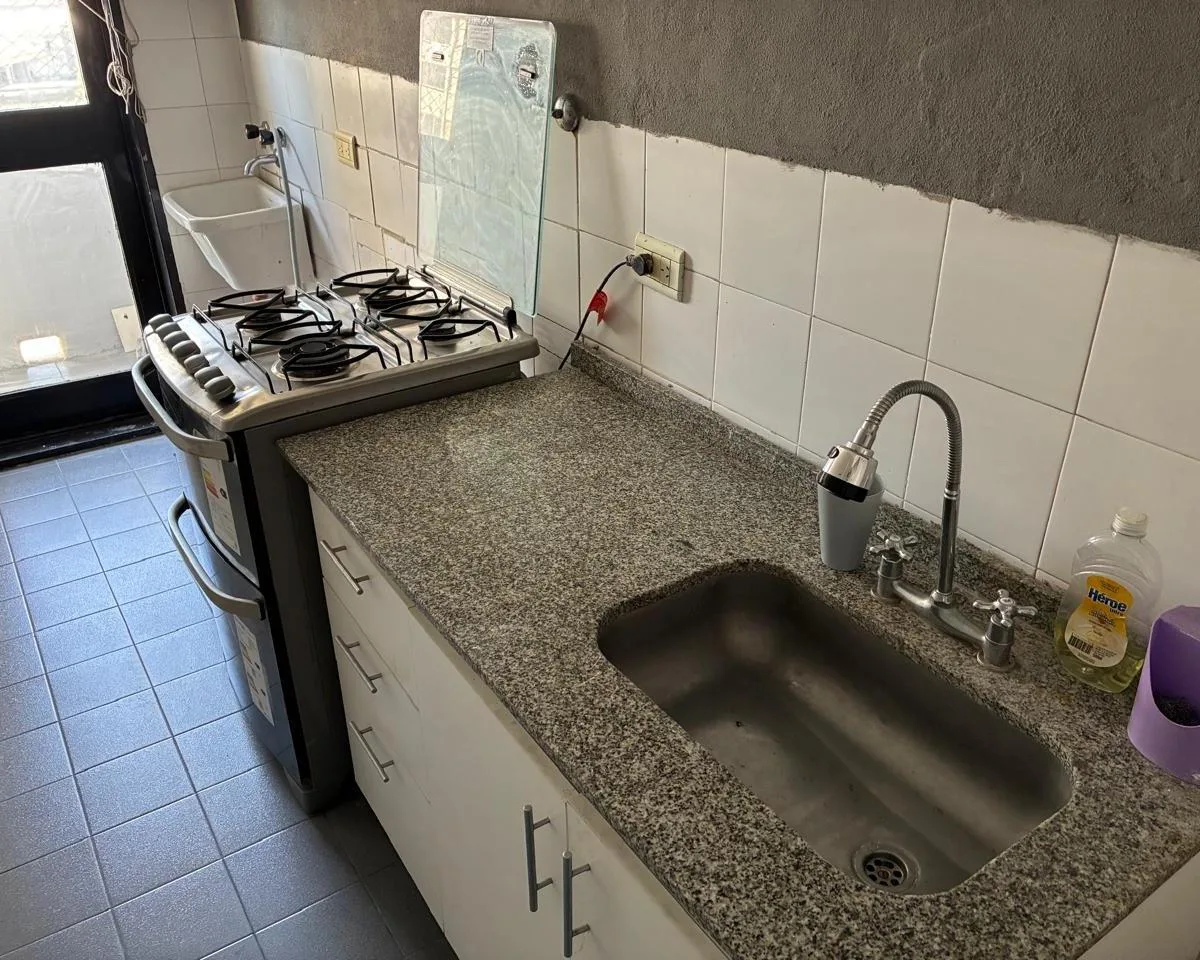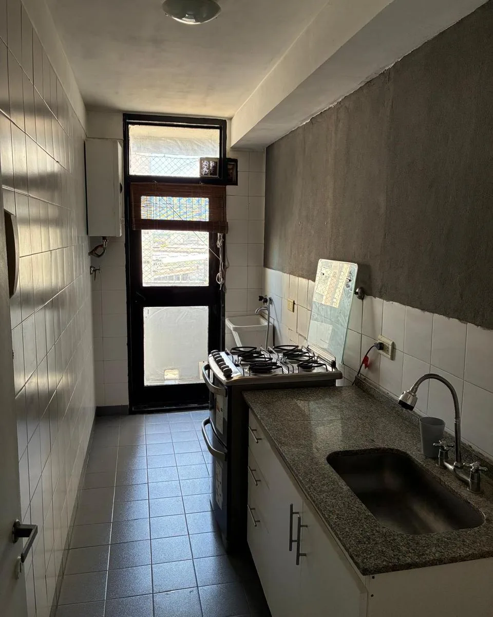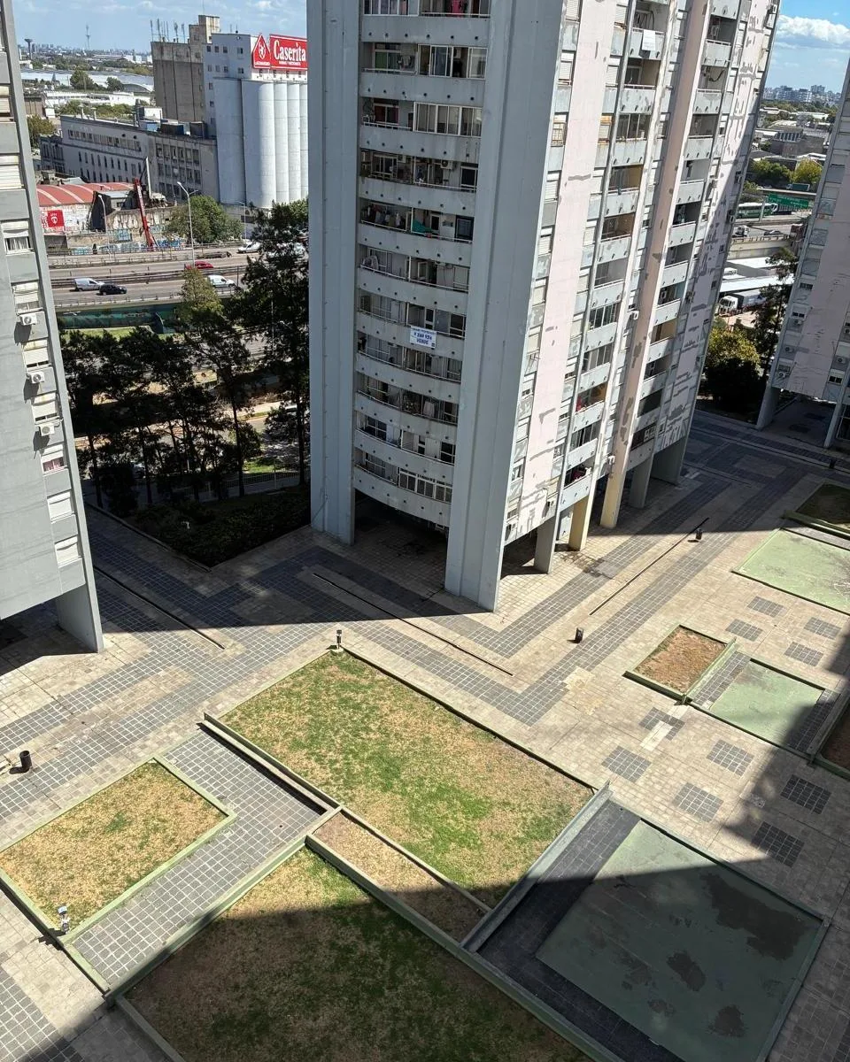Квартира в здании Torres Pueyrredón, 2 комнаты, 40 m² крытых, 10-й этаж, окна во двор. Есть балкон во всю длину с открытым видом на внутреннюю территорию и на Puente Pueyrredón. Кухня с нижними шкафами и мраморной столешницей, пристроенная зона для стирки, гостиная-столовая, спальня с встроенным шкафом. Полная ванная с ванной, полы керамические, квартира после покраски.
