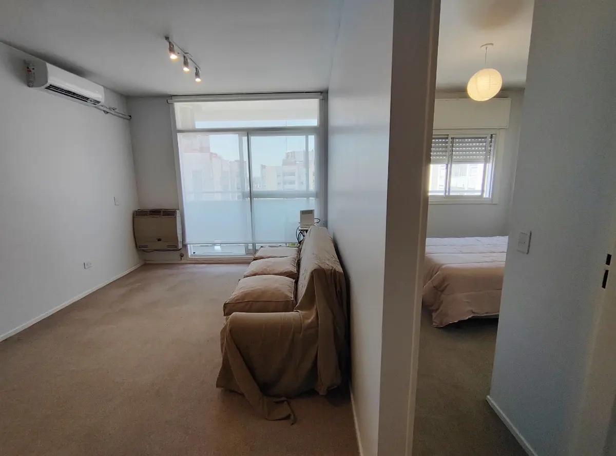 Квартира с 2 комнатами площадью 1 спальня в комплексе Torres Pueyrredon, 25-й этаж. Окна на панорамный вид на реку и город. С мебелью: в спальне sommier и встроенный шкаф на всю стену, в гостиной диван. Есть гостиная-столовая и отдельная кухня, ванная с ванной. Оборудование включает инверторный кондиционер, газовую плиту, холодильник с морозильной камерой, LED-освещение и Smart TV с Roku, отопление газовым котлом с балансируемой тягой, ролло шторами sunscreen, интернет/Wi-Fi. В стоимость включен
