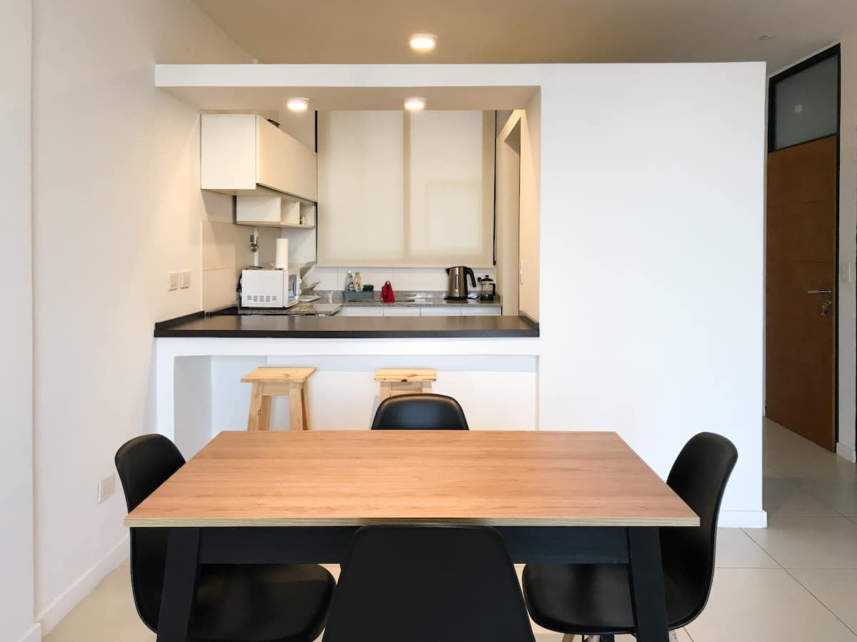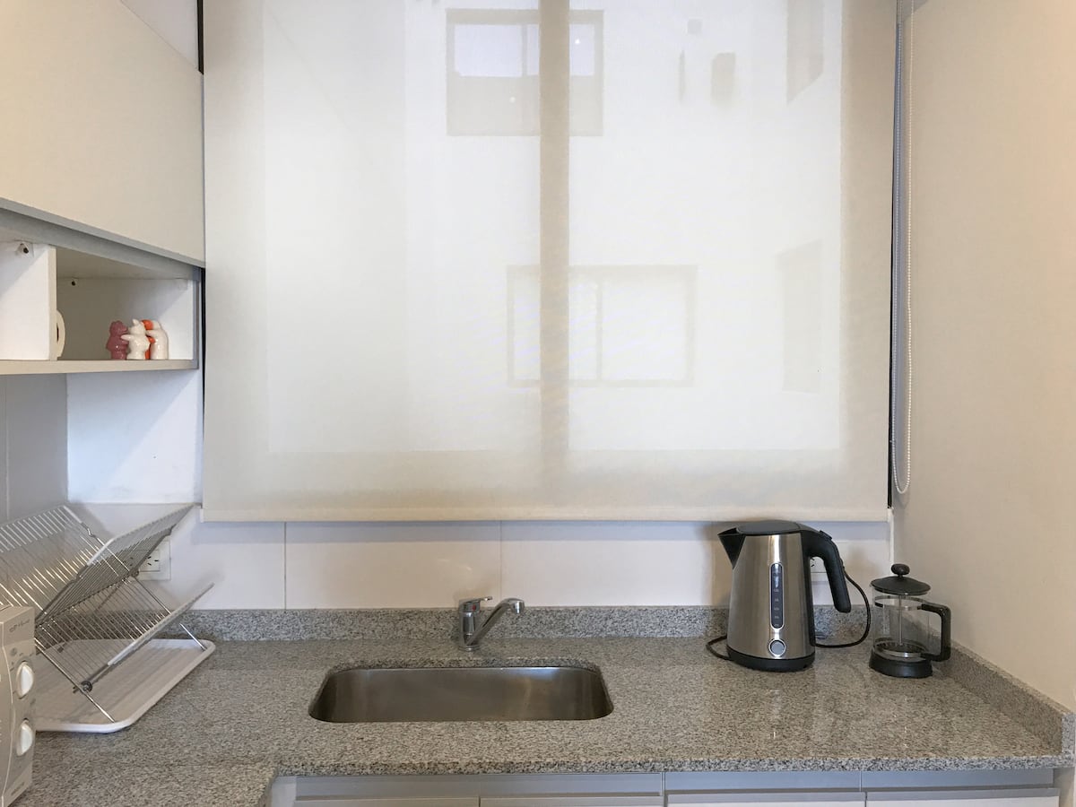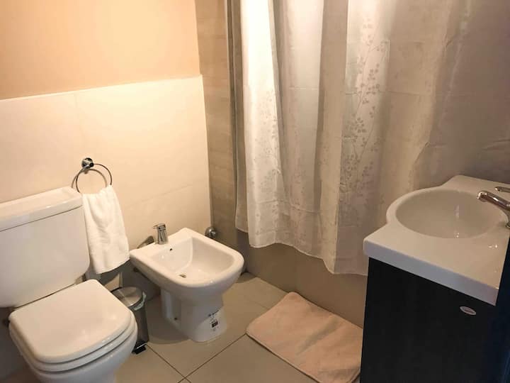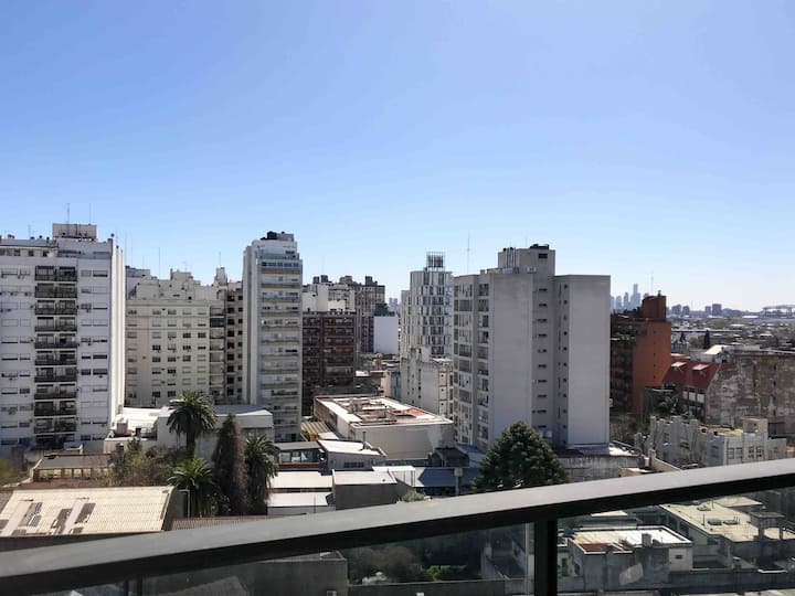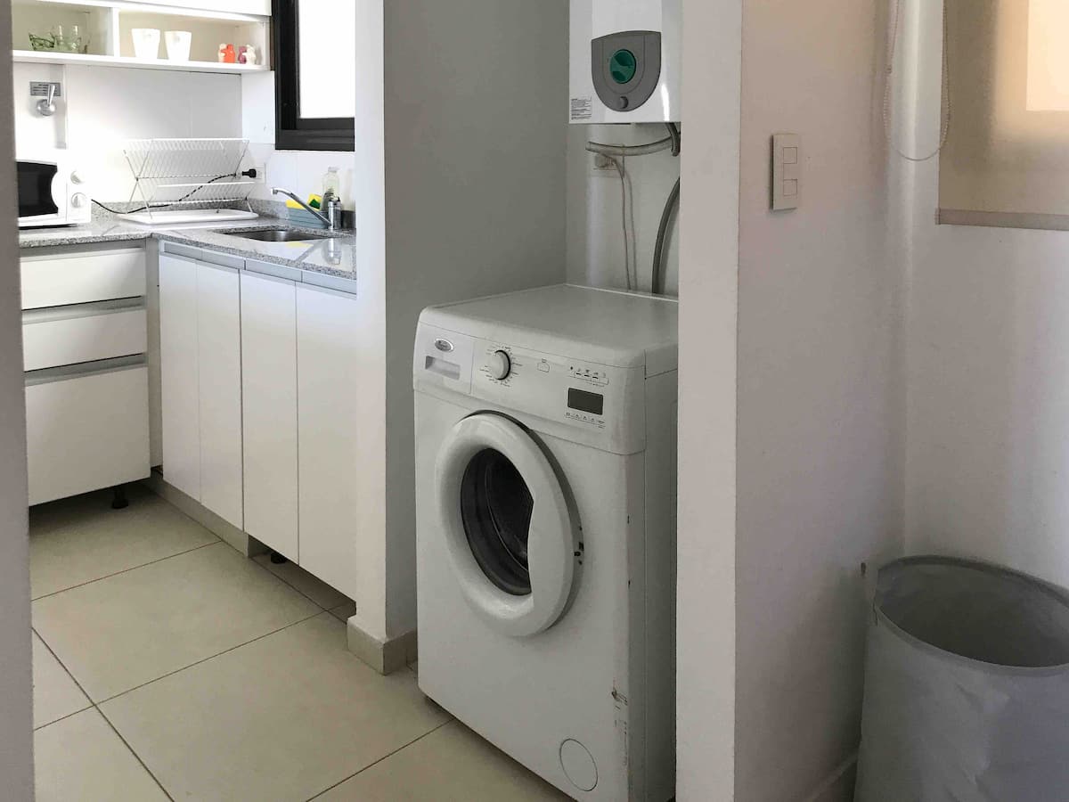 Квартира-студия площадью 41 m² в Avellaneda с балконом; окна выходят на внутренний двор квартала с зелёной зоной. Кухня полностью оборудована, включая мини-холодильник и кухонную утварь. Кондиционер hot/cold и смарт-телевизор с доступом к Netflix и другим приложениям, кабельного телевидения нет.