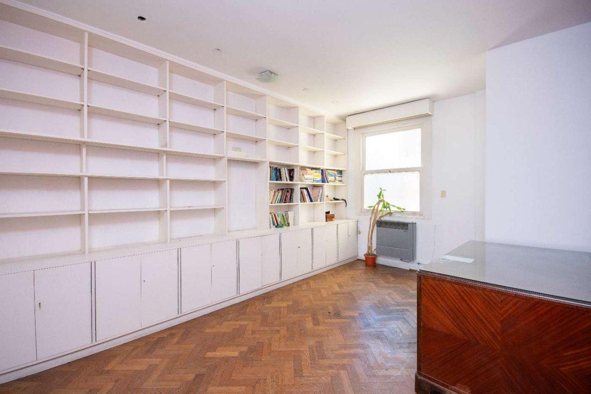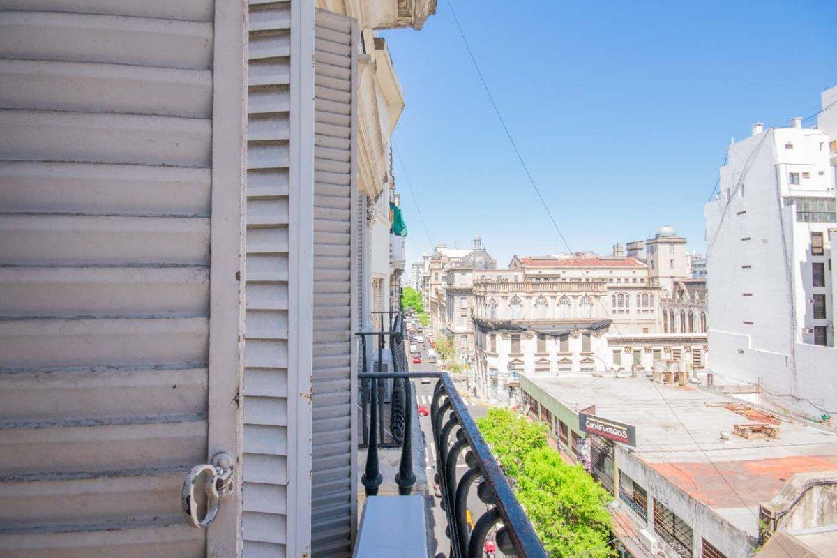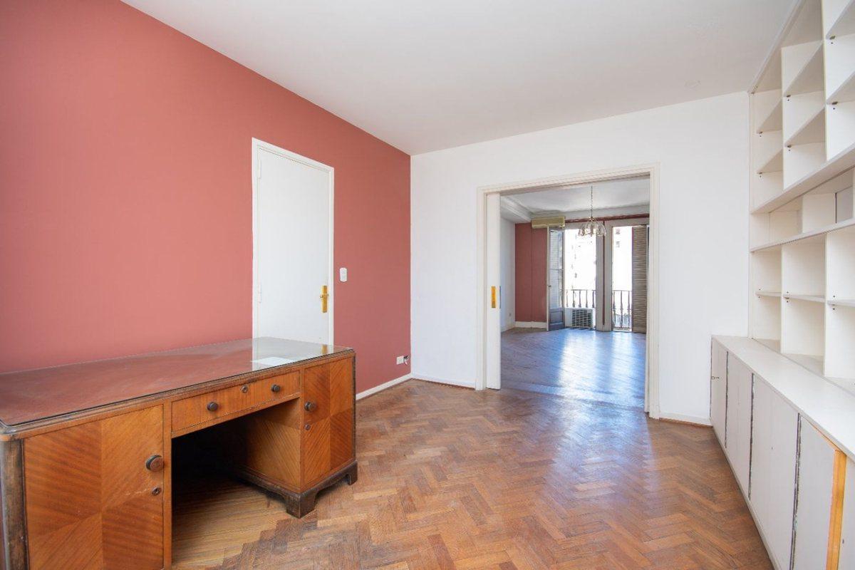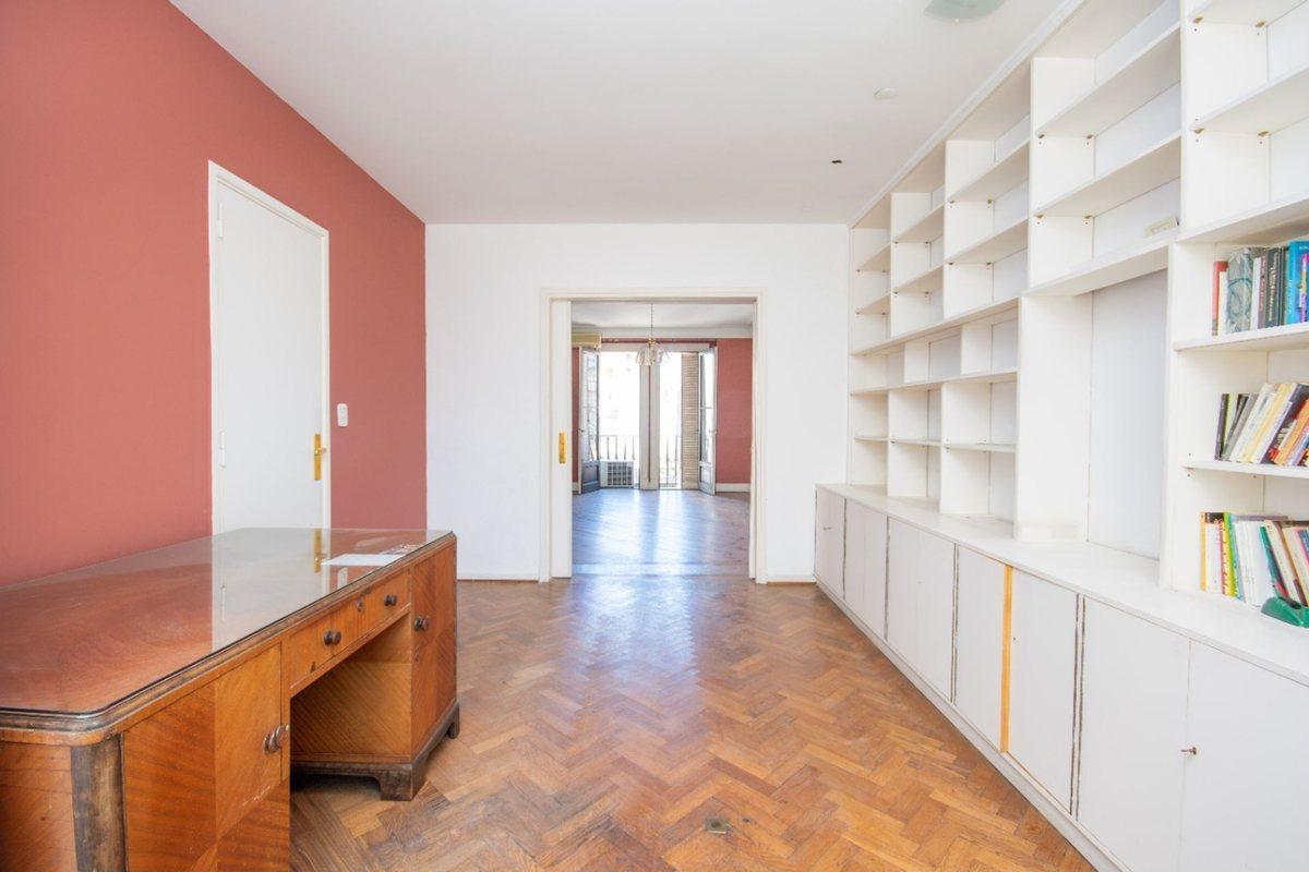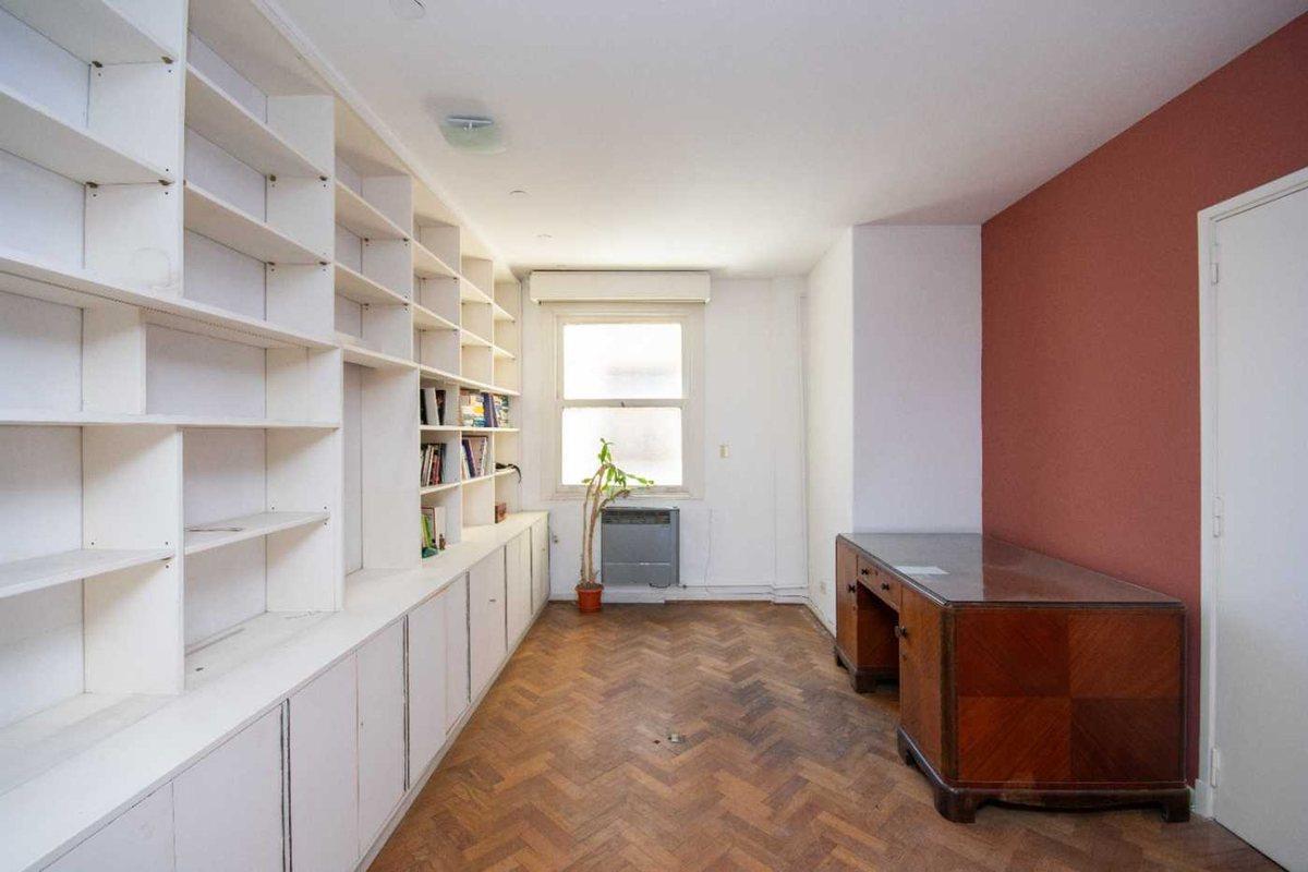 Полуэтажная квартира в Balvanera, окна на улицу, с 1 спальней и кабинетом либо 2 спальнями. Площадь и этаж не указаны. При входе есть приёмная и распределительный коридор. Паркет в хорошем состоянии, кухня и ванная после обновления в современном стиле при сохранении особенностей планировки. Спальня и гостиная выходят на улицу, есть французский балкон, ориентация западная; кабинет или вторая спальня выходят во внутренний двор квартала, с большим оконным проёмом, ориентация восточная. Кабинет или