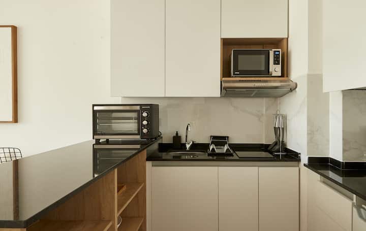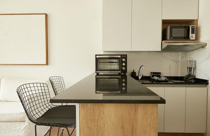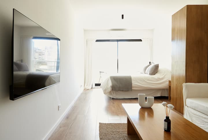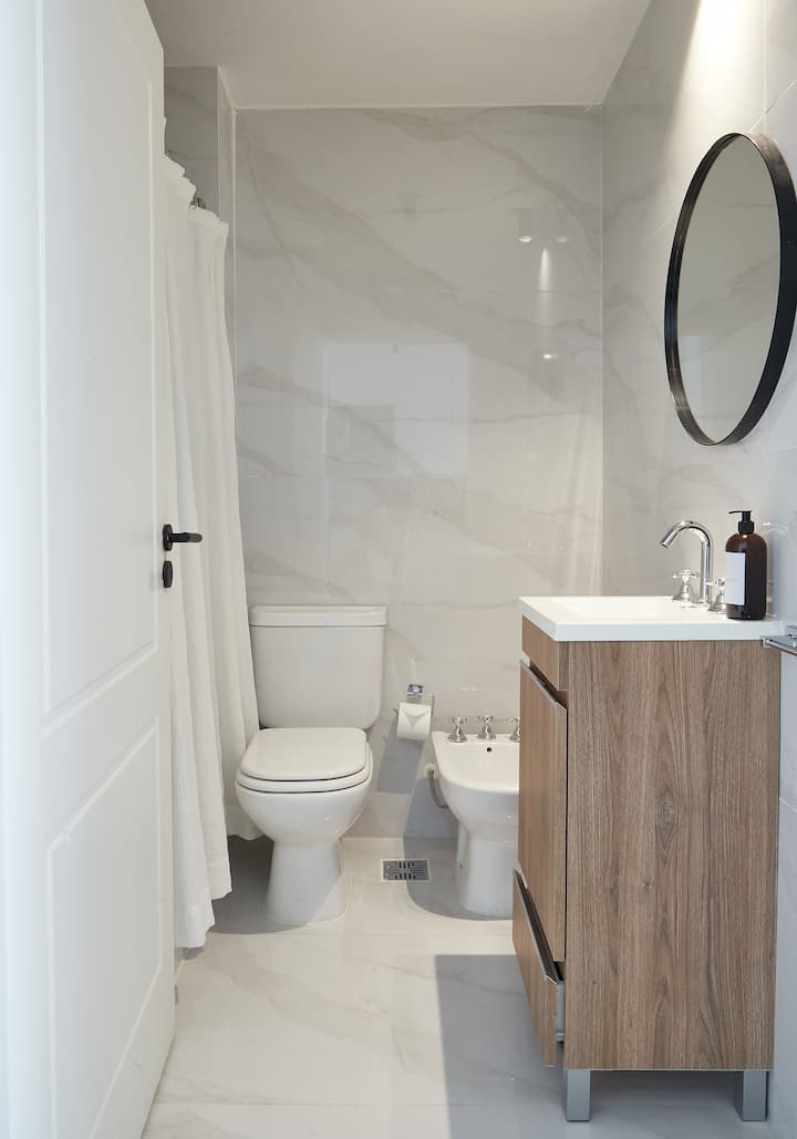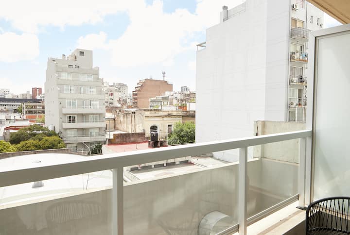 Квартира в Balvanera с 1 спальней. Планировка открытого типа объединяет зоны гостиной, столовой и спальной. Кухня полностью оборудована необходимой техникой и посудой. Ванная комната после ремонта, с душевой кабиной и отделкой. Предусмотрены телевизор с потоковыми сервисами и Wi‑Fi. Доступ предоставляется ко всей квартире.