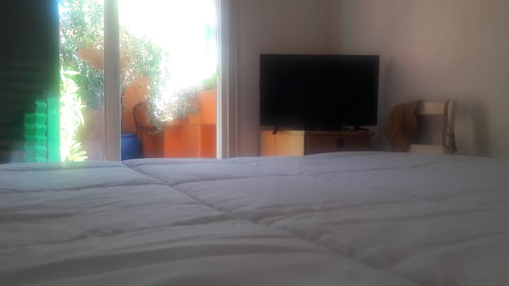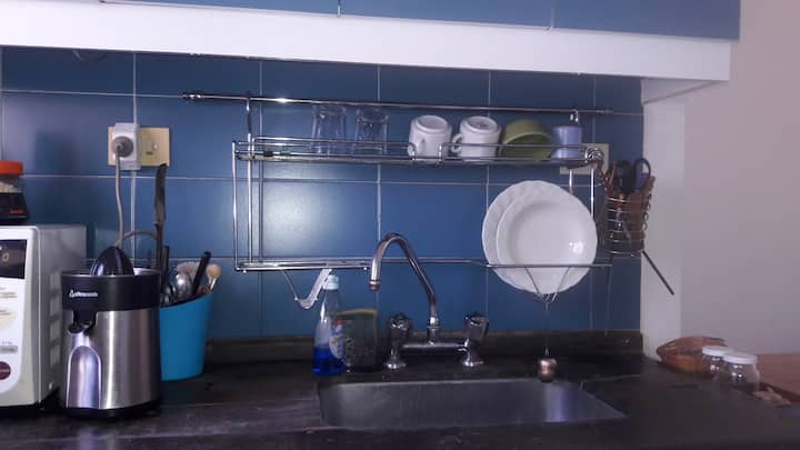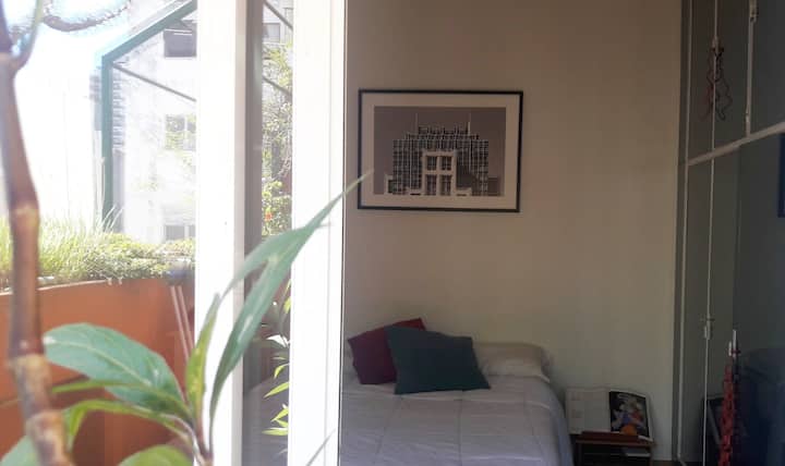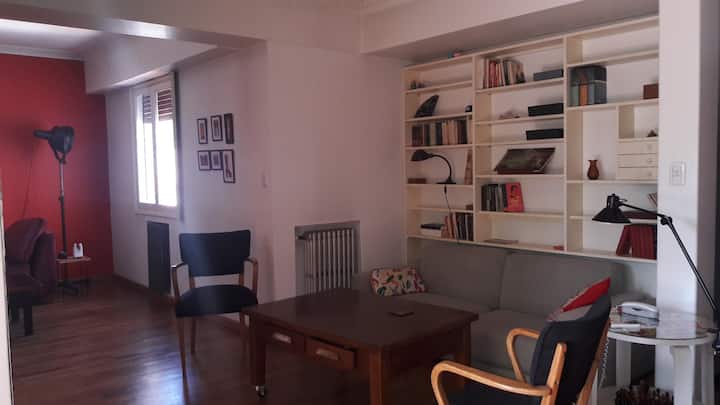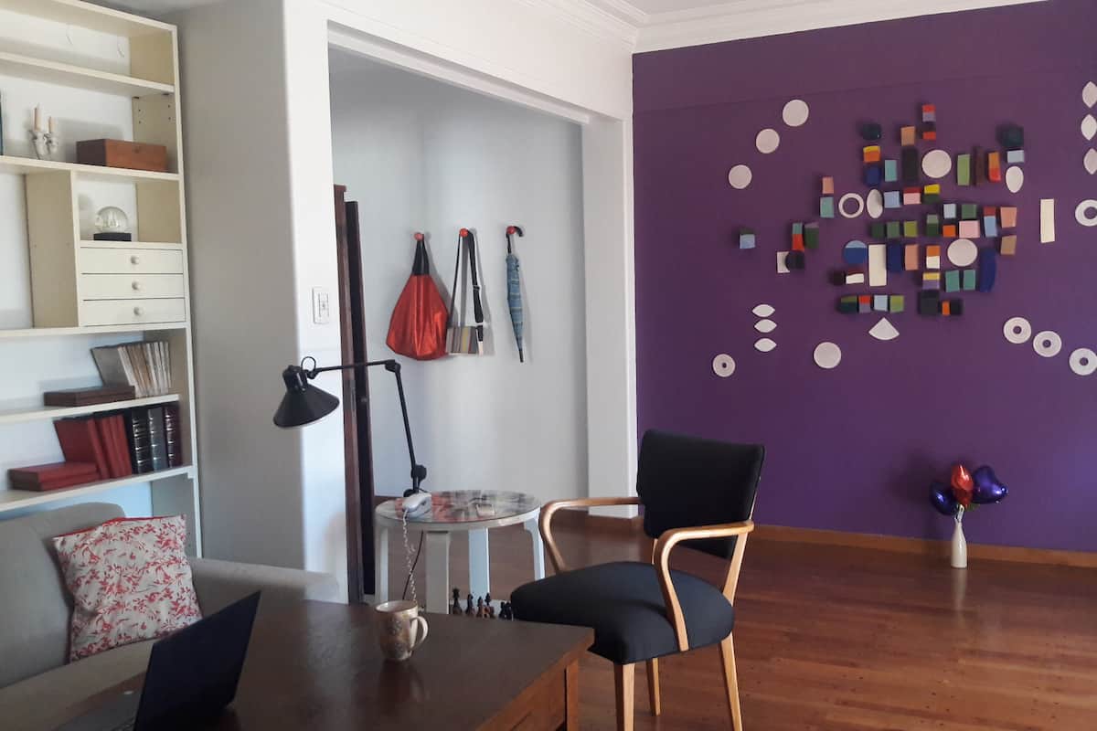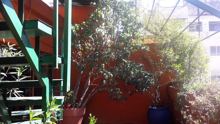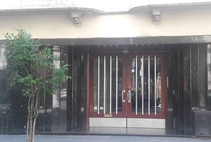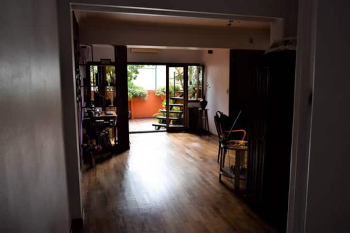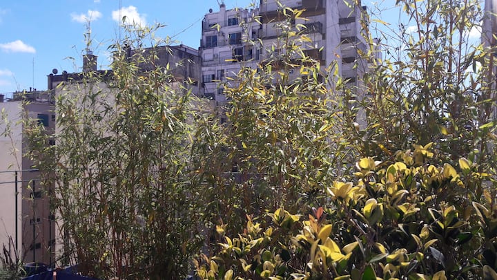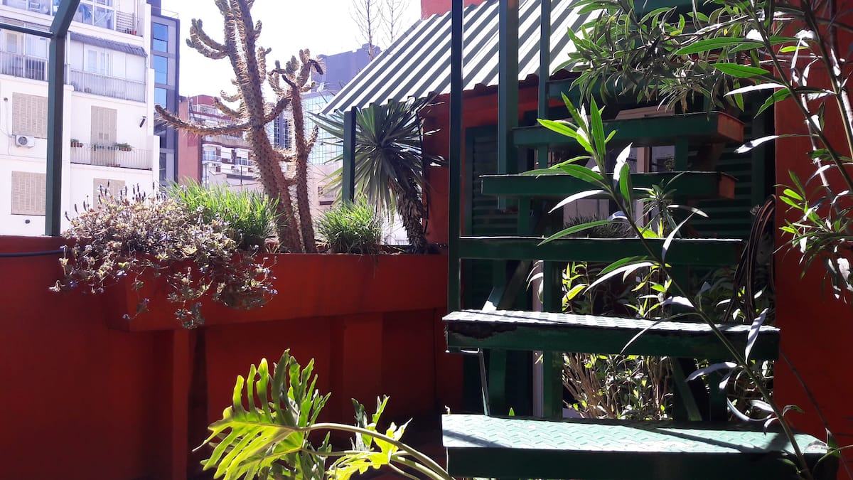 Квартира в Balvanera, 6-й этаж, 75 m². Гостиная и спальня выходят на большой балкон, в помещениях большие окна. Кухня просторная. На верхнем этаже есть собственная терраса с душем и навесом. В объявлении указано, что терраса предназначена для гостей; курение разрешено только на балконе и на террасе. Расположение: в 50 метрах от Parliament.