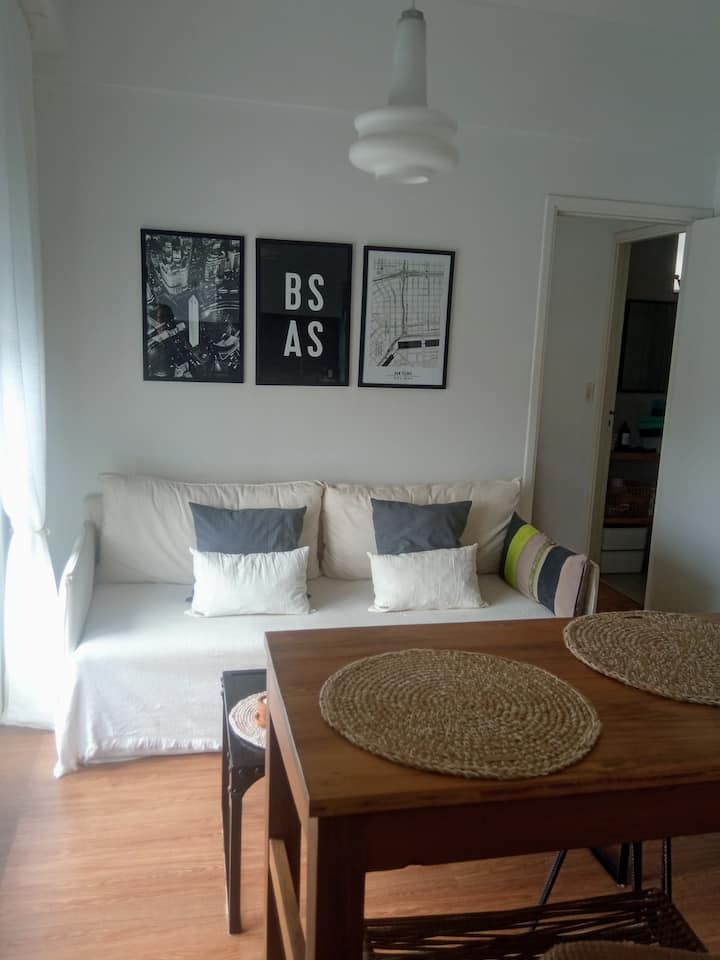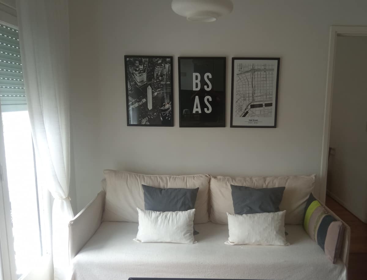 Квартира в San Telmo. Есть балкон с открытым видом. Полноценная кухня, кровать размера queen-size, кресло-кровать, шкаф и ванная комната с набором средств. Предусмотрен Wi‑Fi. При бронировании у гостей запрашивается копия документа для пропуска через охрану здания.