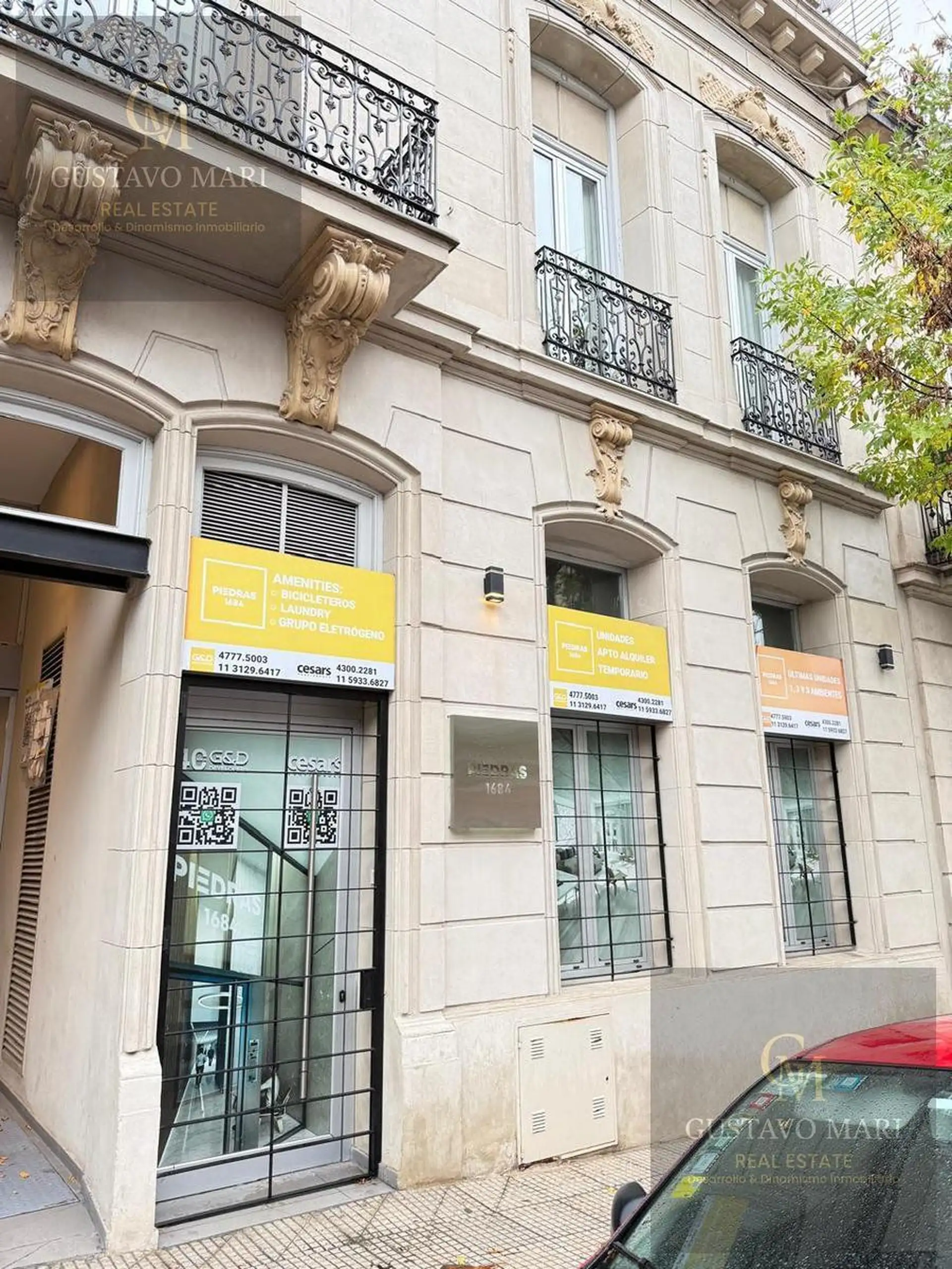 Квартира-студия площадью не указана, окна во двор (contrafrente). Почти новая (ещё никто не жил). В наличии электрическая варочная панель, кондиционер холод/тепло и индивидуальный электрический водонагреватель. Также есть велосипедная парковка и прачечная; коммунальные платежи здания низкие (bajas expensas).
