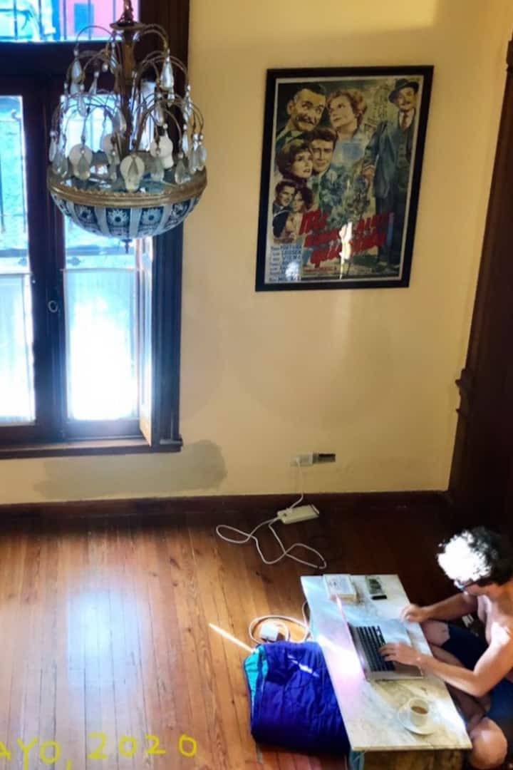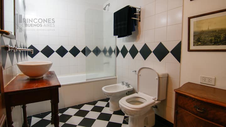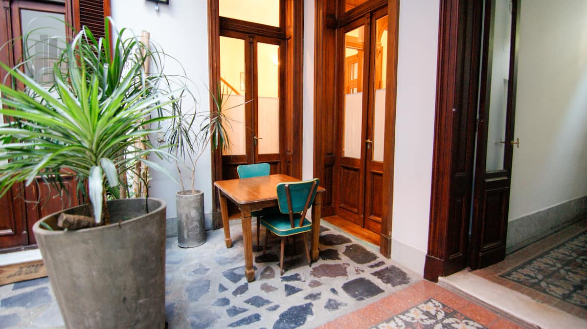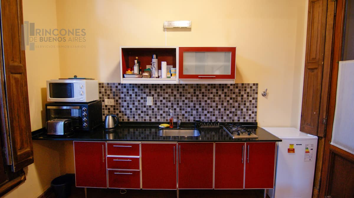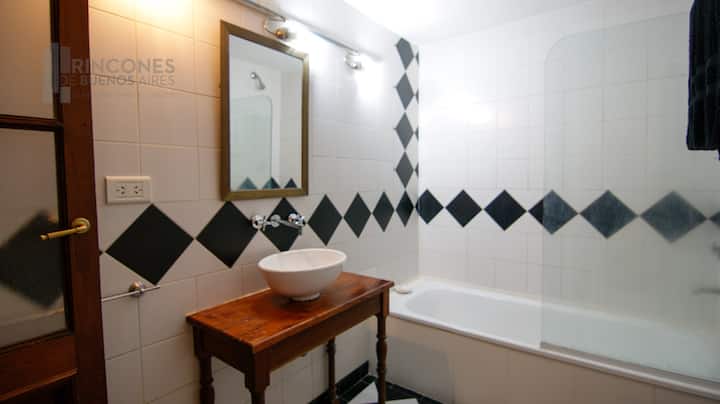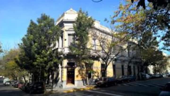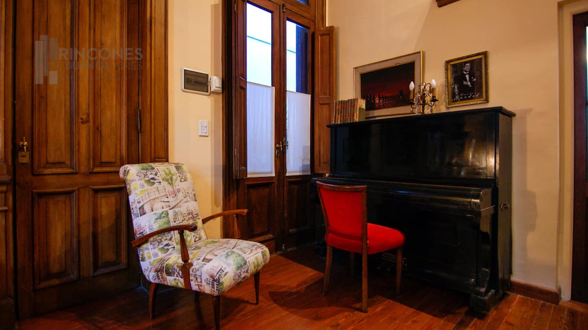 Квартира-лофт в здании в французском стиле 1901 года в Barracas. Две большие окна выходят на улицу с деревьями. Внутри: кухня, гостиная и ванная на первом этаже, затем по деревянной лестнице на верхний уровень есть комната со встроенным шкафом. В здании сохранены элементы отделки, включая лепнину, фрески, boiserie, витражи, мрамор, столярные изделия и сводчатые перекрытия в два уровня. Внутренние части связаны центральными двориками, есть приток воздуха и света.