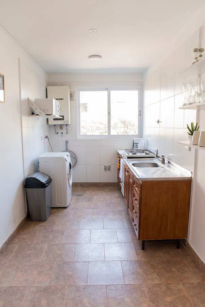 Квартира с 2 комнатами, отдельной полностью оборудованной кухней и балконом в Barracas, с окнами во двор. В квартире есть стиральная машина и ванная комната. Указана возможность подключения к высокоскоростному интернету. Упомянуты расположение на Boulevard Caseros и близость к Parque Lezama.