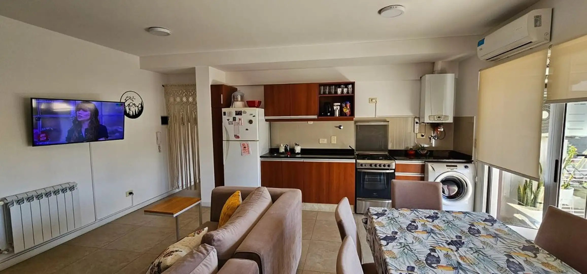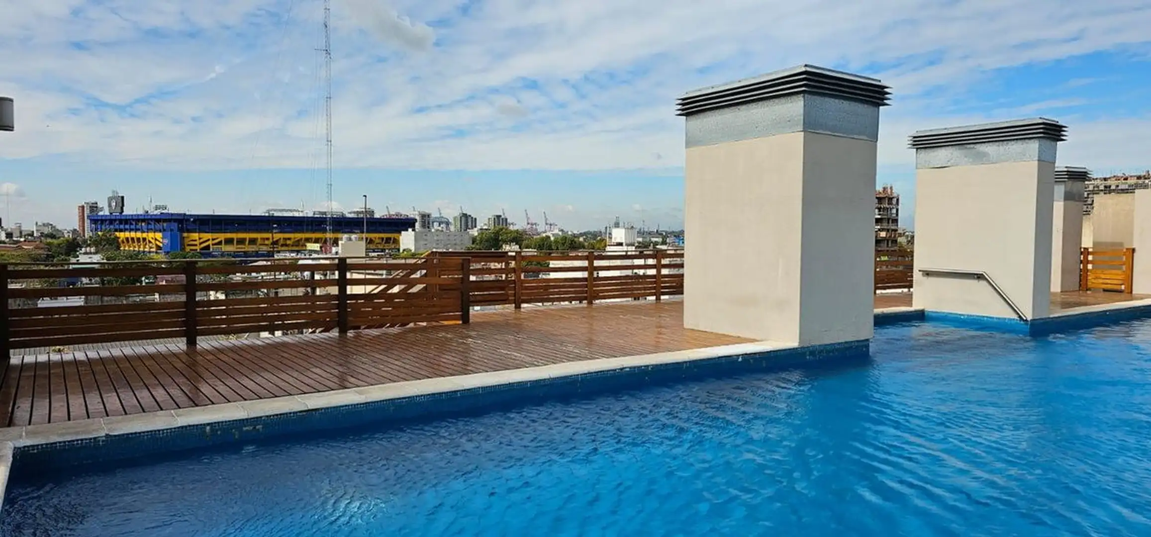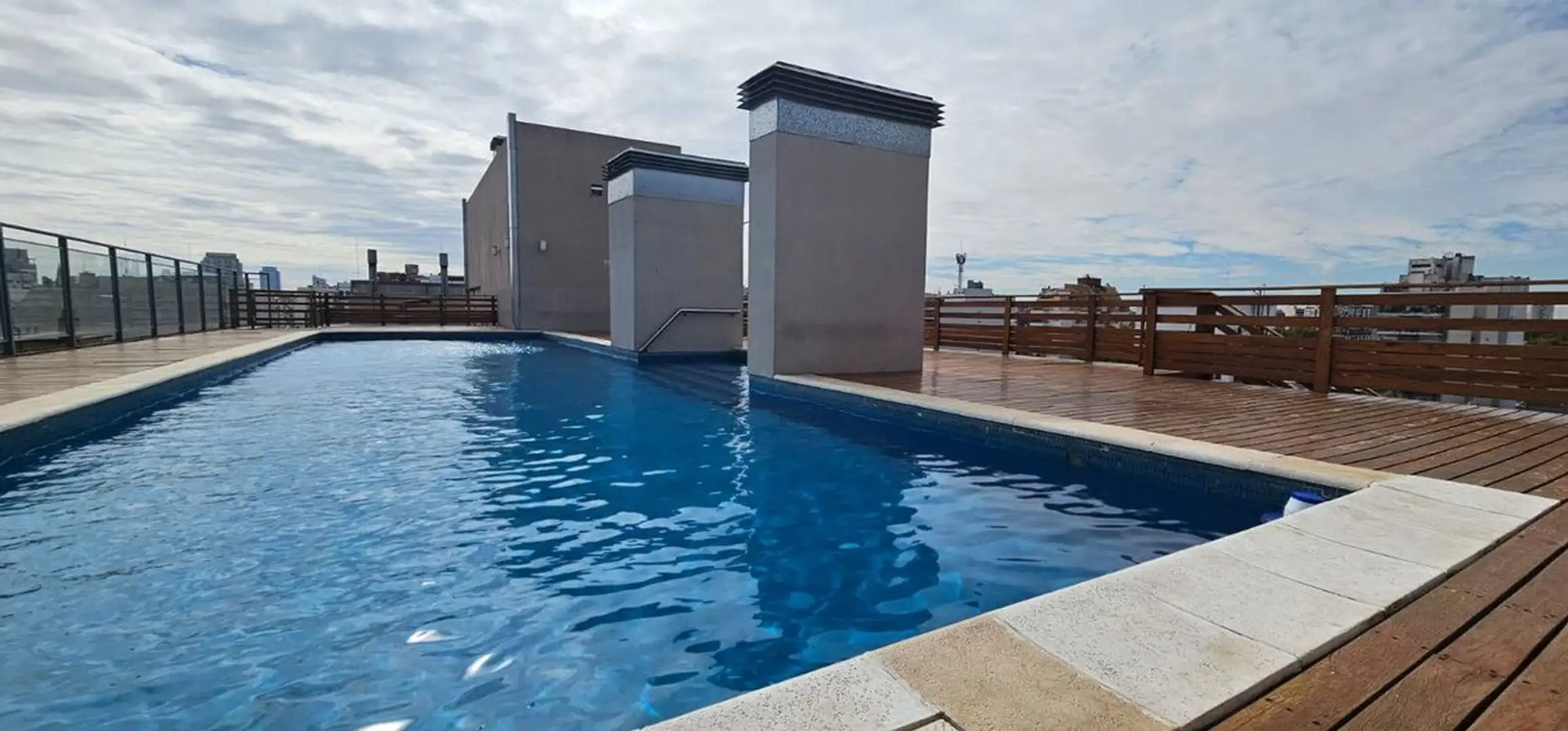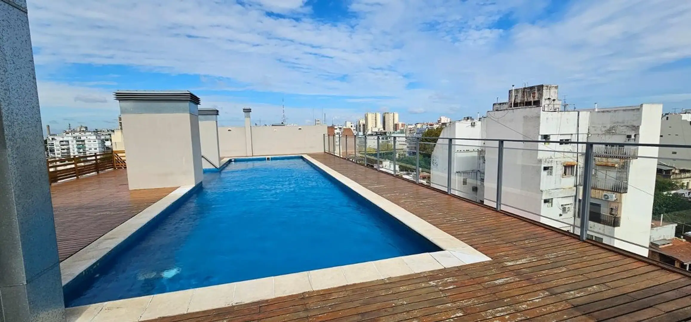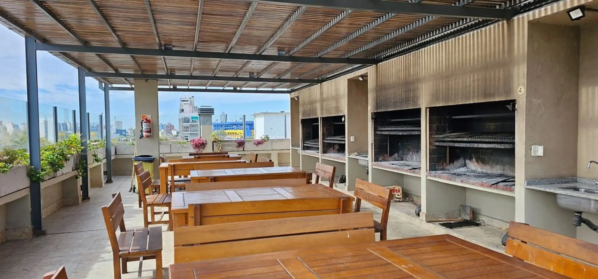 Квартира 2 ambientes площадью 51 m² в Barracas: 45 m² крытых и 6 m² полукрытых, 4-й этаж в здании на 8 этажей. Год постройки 2014. Полностью меблирована и оборудована, кондиционер (холод/тепло), телевизоры в спальне и гостиной, стиральная машина, холодильник no frost, индивидуальный котёл с радиаторами, высокоскоростной интернет. В доме предусмотрены бассейн, общая гостиная для жильцов (SUM), озеленённые зоны и солярий, круглосуточная охрана, автоматические ворота, лифт, зона гриля. В стоимость