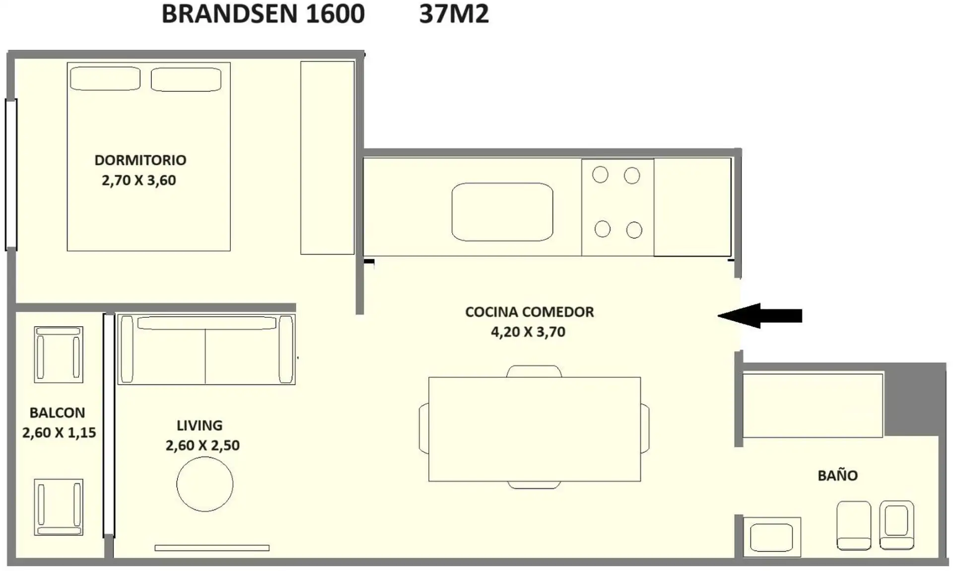 Квартира с 1 спальней с балконом в Barracas