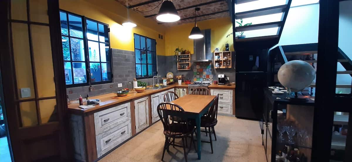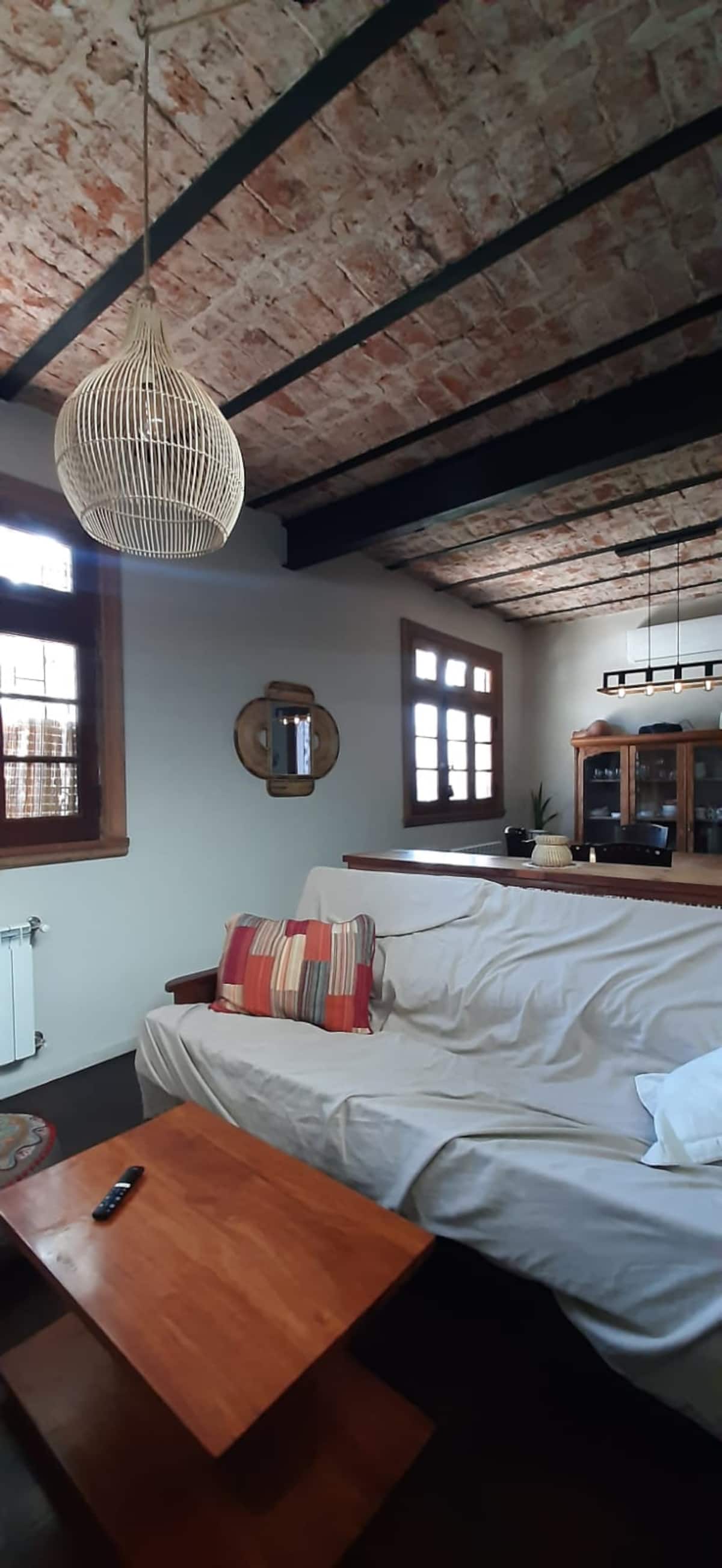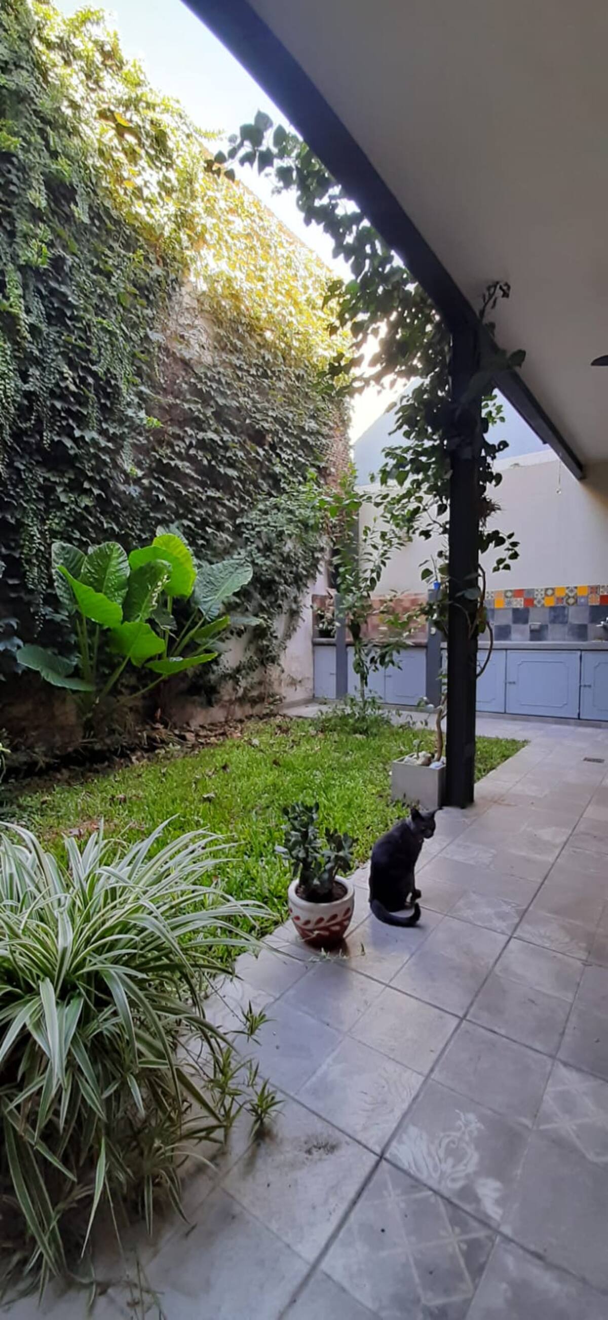 Квартира-студия (PH) в Beccar, планировка в двух уровнях. На первом уровне лофт с объединёнными кухней, гостиной и столовой, с внутренним двориком и зоной гриля. На втором уровне расположены спальня и терраса-балкон; окна относятся к двору/открытой террасе. В PH два санузла: один на первом уровне и один на втором. Отопление радиаторами. Ближайшие ориентиры: Centenario и Mitre train. В доме проживают два котёнка, Malvina и Juana.