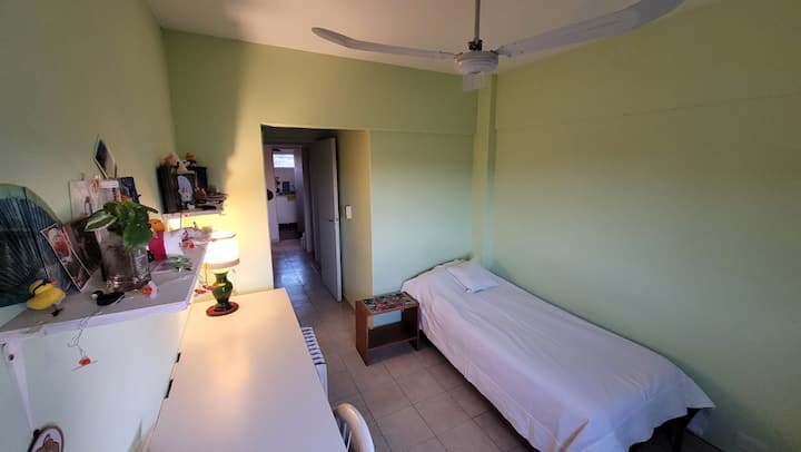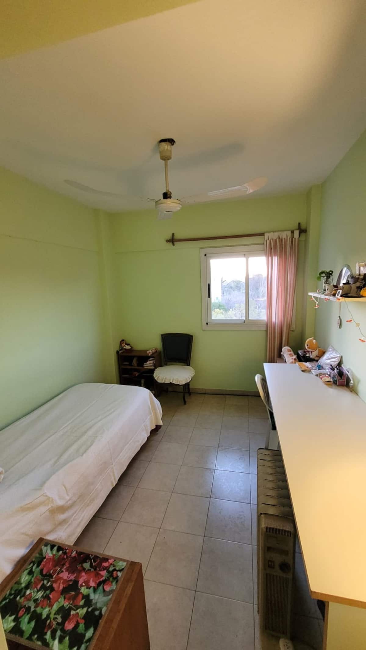 Комната в квартире в Beccar, San Isidro. Квартира с окнами на большой парк; в ней 2 спальни со шкафами и рабочими столами. Доступен Wi-Fi и кабельное телевидение, ванная комната с ванной используется совместно только с проживающим в квартире. Возможна организация отдельного места для сна: по запросу можно добавить ещё одну односпальную кровать.