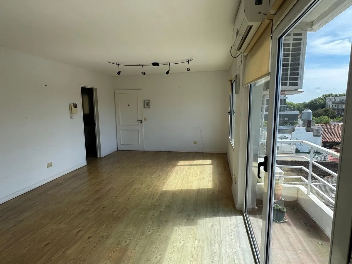 Квартира в Beccar площадью 67 m² (58 m² крытых, 9 m² полукрытых) на 4 этаже здания на 9 уровней. Окна во двор, планировка на 2 комнаты: спальня с ванной комнатой (встроенный гардероб/vestidor) и гостиная с боковым видом. Кондиционер split «холод/тепло» в гостиной, отдельная/просторная кухня с интегрированной дневной зоной, в ванной полноценная ванна, окно и электрическое отопление по полу. Полы с плавающим покрытием, по периметру балкон. В стоимость включено (закреплённое) парковочное место; ком