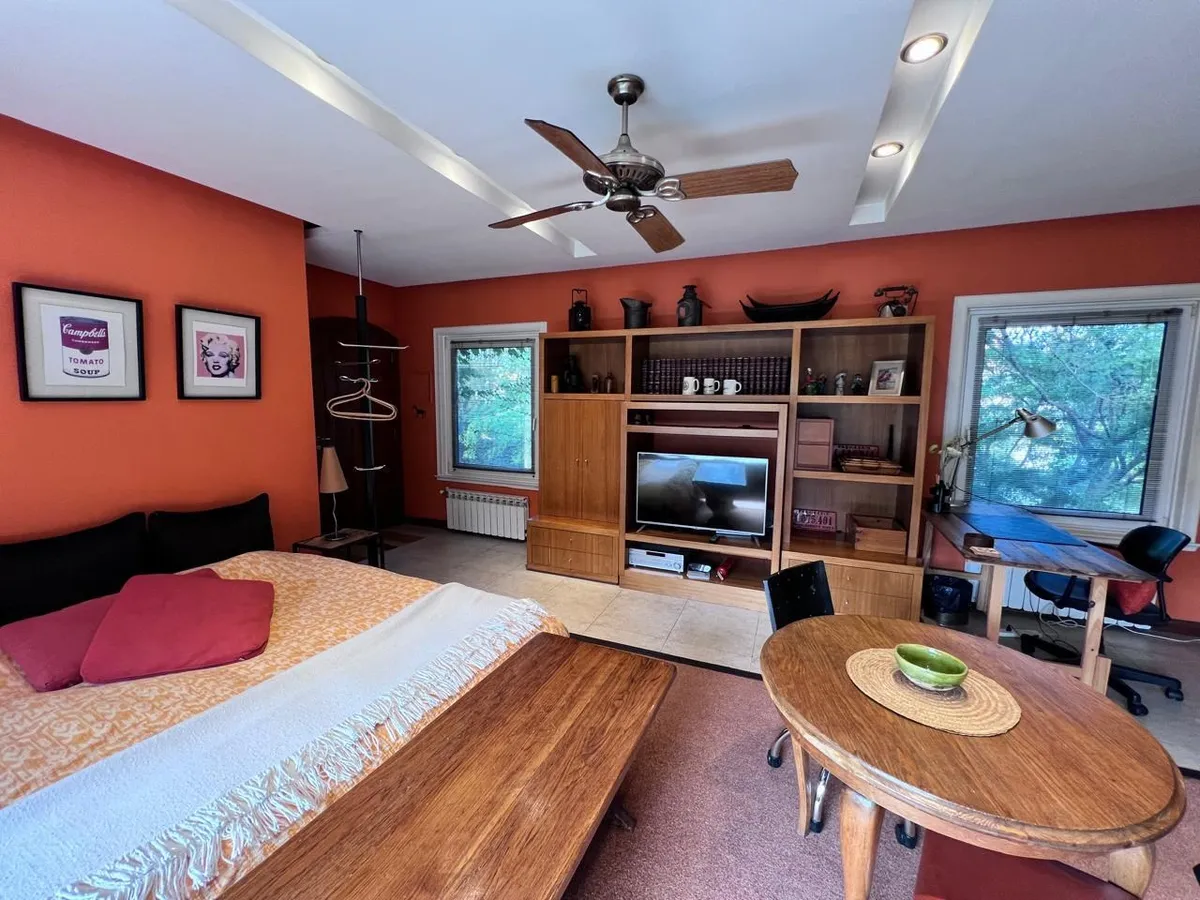 Лофт в аренду в Beccar, San Isidro. Площадь и этаж в объявлении не указаны. Отдельный вход с тротуара по лестнице, окна с видом на сады участка. Внутри: полностью оборудованная кухня, полноценная ванная, центральное отопление и кондиционер. В стоимость аренды включены расходы и услуги, дополнительно оплачивается уборка при выезде. Есть общий доступ к саду с главным домом, бассейн и зона гриля с грилем. Без домашних животных.