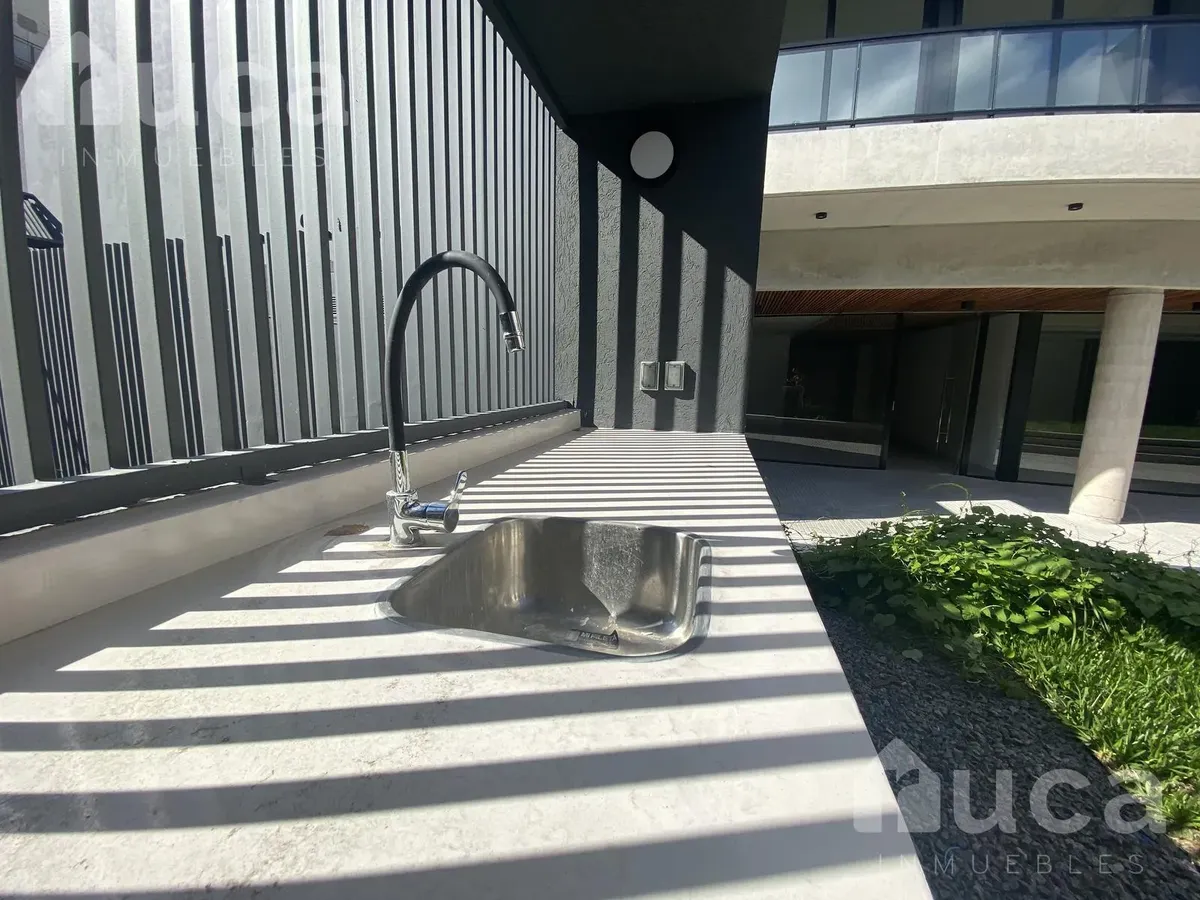 Квартира-студия в Beccar. Планировка включает основное помещение с интегрированной кухней с барной стойкой, полноценную ванную, встроенный шкаф с внутренним наполнением и балкон с установленной решёткой. Отопление — напольное, с индивидуальной двухконтурной котельной. Окна от пола до потолка со стеклопакетами DVH, на кухне кварцевая столешница и бар, установлены духовка и газовая варочная панель из нержавеющей стали. В здании есть SUM/общая зона для коворкинга, бассейн с подогревом (In-Out) и со