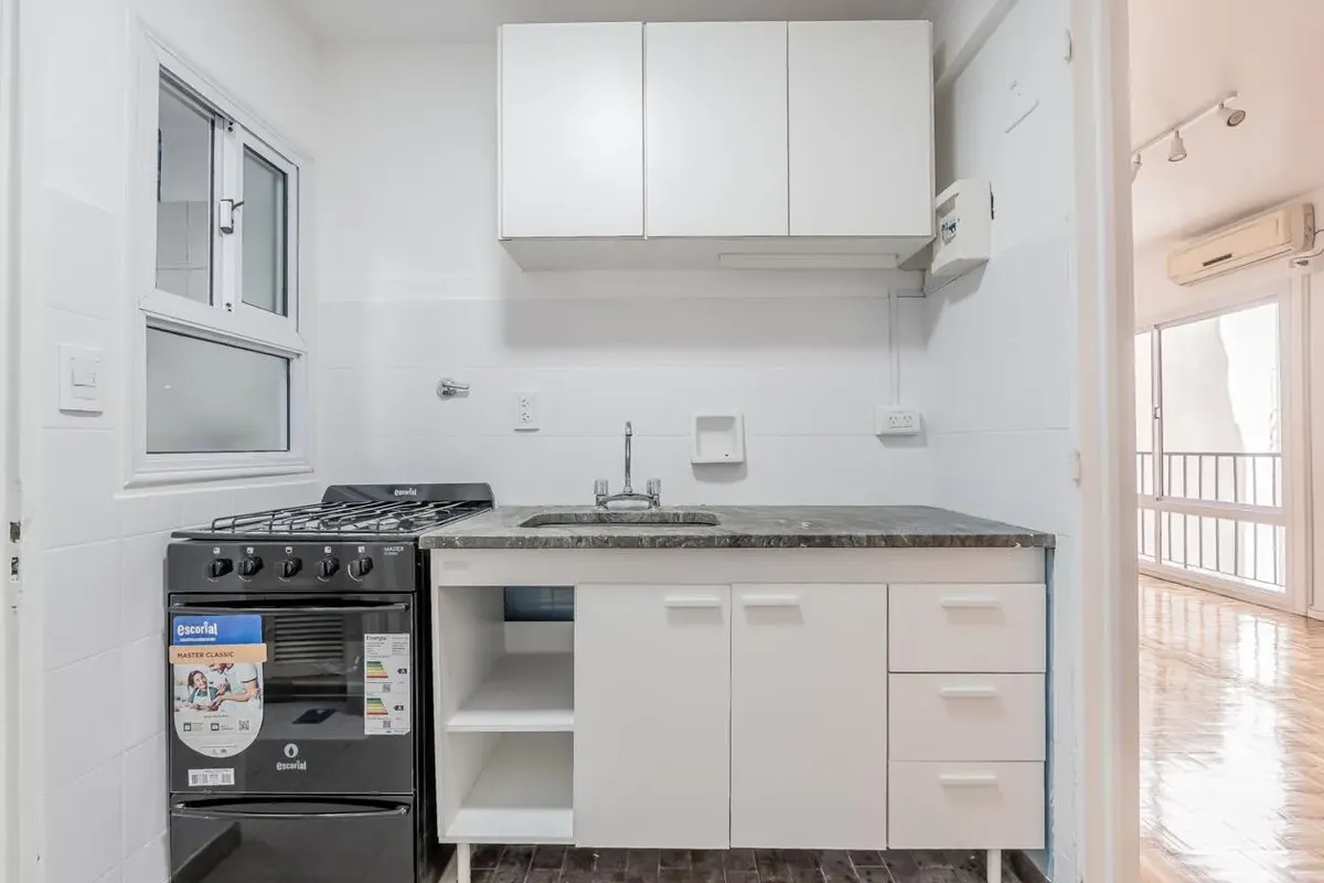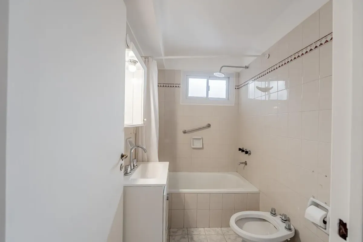 Квартира в Belgrano, полуэтаж, 6-й этаж. Общая площадь 40 m², после недавней покраски и обновления, в здании с лифтом. Гостиная-столовая с кондиционером, отдельная кухня с местом под прачечную. Планировка включает коридор, полноценную ванную и просторную спальню с двумя встроенными шкафами до потолка и кладовыми. В здании предусмотрена вентиляция во всех помещениях. Коммунальные платежи здания (expensas) составляют $95.000. Требуются подтверждённые доходы, залог-страховка аренды, месячный депози