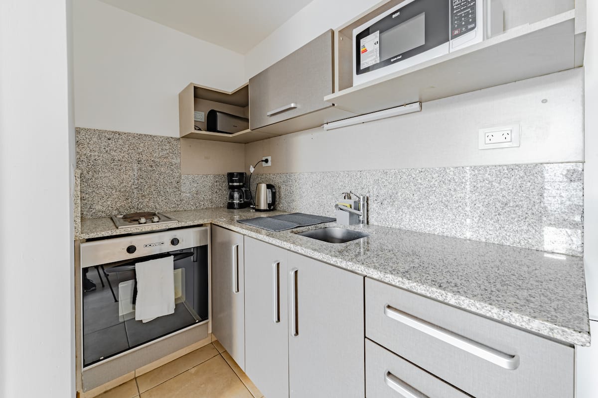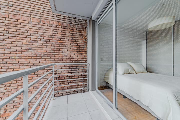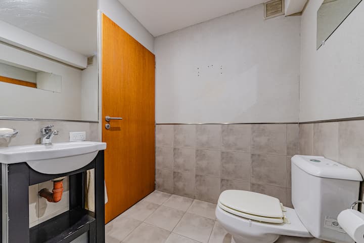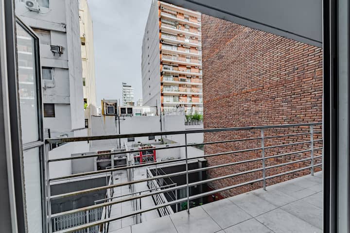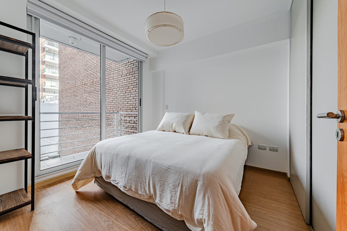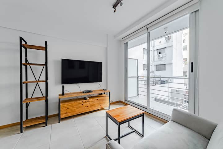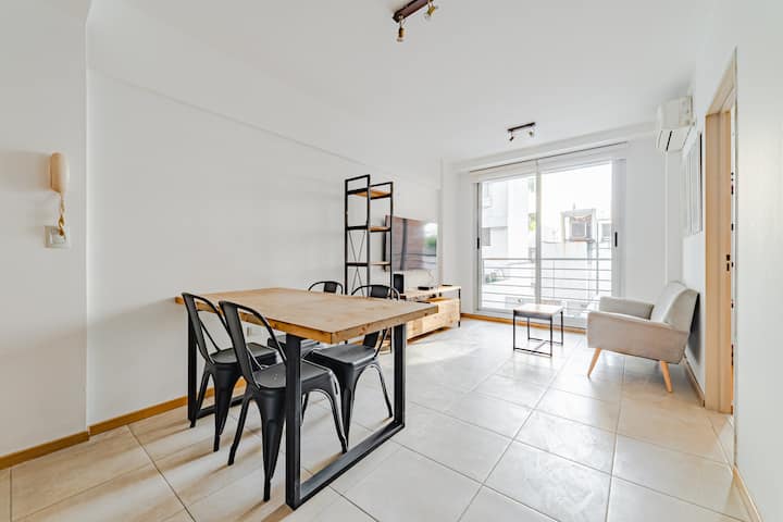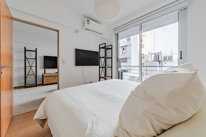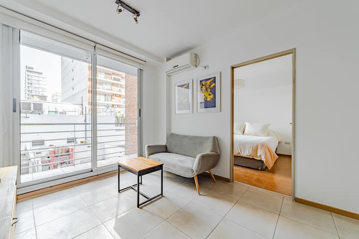 Квартира из двух комнат в Belgrano: гостиная-столовая, спальня, совмещённая кухня и полноценная ванная комната. Окна на улицу, с балконом через дорогу. В спальне двуспальная кровать queen-size, большой шкаф, телевизор; в гостиной и спальне установлены кондиционеры. В гостиной есть телевизор; кухня оборудована духовкой и микроволновой печью, посудой и кухонной утварью на 4 персоны. Предусмотрены Wi-Fi и smart TV. В описании указано расположение в одном квартале от Av. Cabildo.
