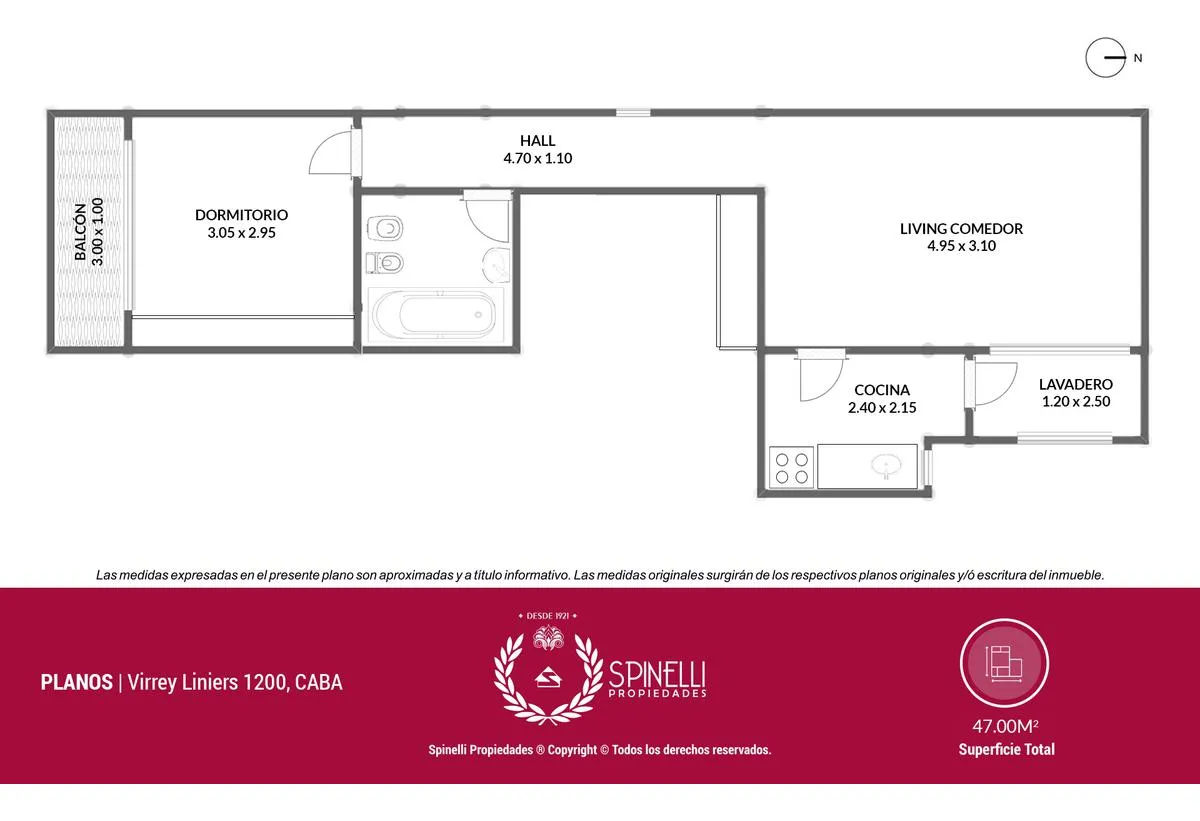 Полуэтажная квартира в Boedo из 2 комнат (1 спальня) площадью 47 m², окна на улицу, с балконом. Ориентация на восток. Кухня полностью обновлена после ремонта, есть отдельная прачечная. Здание 8 этажей, по 2 квартиры на этаже, один автоматизированный лифт.