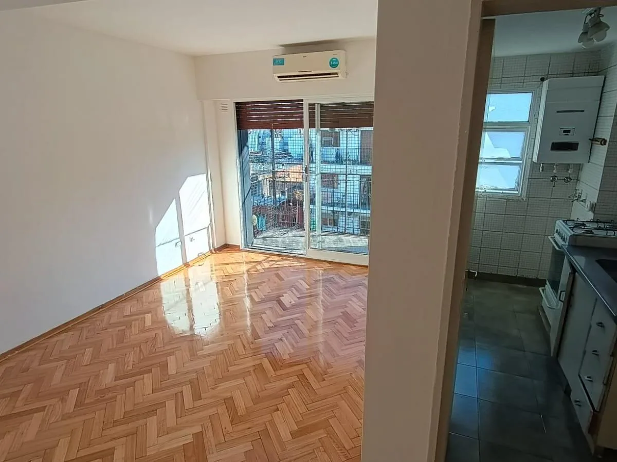 Квартира в Boedo, 2 ambientes, 41 m² крытых и 2,91 m² полузастеклённой площади, с балконом. Жилая-комната совмещена со столовой и выходит на балкон, спальня получает дневной свет. В квартире паркет после свежей шлифовки и установлен кондиционер. Коммунальные платежи здания указаны как низкие. Расстояние до станции Subte Boedo (Línea E) и района на Av. San Juan и Av. Boedo — около 300 метров.