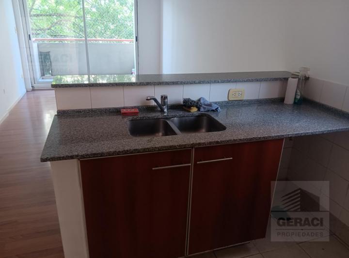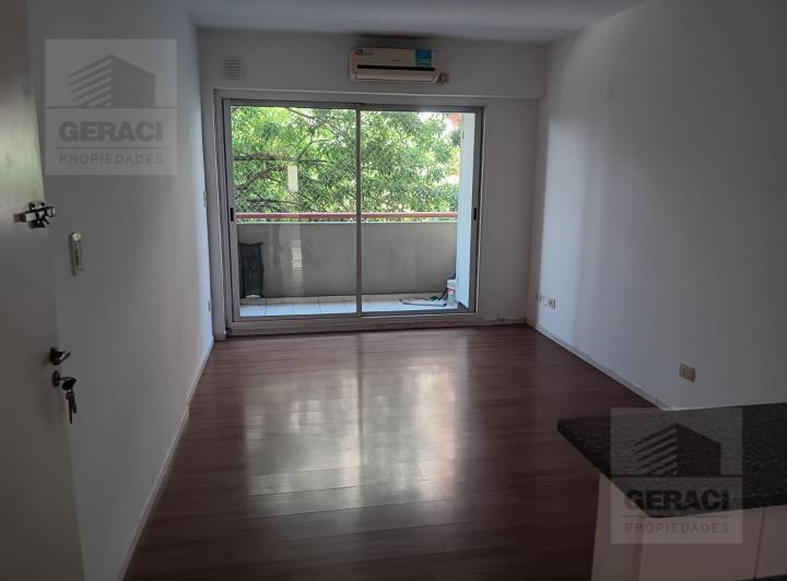 Полуэтажная квартира из 2 комнат общей площадью не указана, окна на улицу. Просторная гостиная-столовая с напольным покрытием из ламината и кондиционером (холод/тепло). Встроенная кухня полностью оборудована нижними тумбами и навесными шкафами, есть двойная мойка и плита Longvie; предусмотрено место для стиральной машины. Спальня с шкафом и ламинатным полом, ванная комната с мебелью для умывальника. Коммунальные платежи здания включают AYSA.