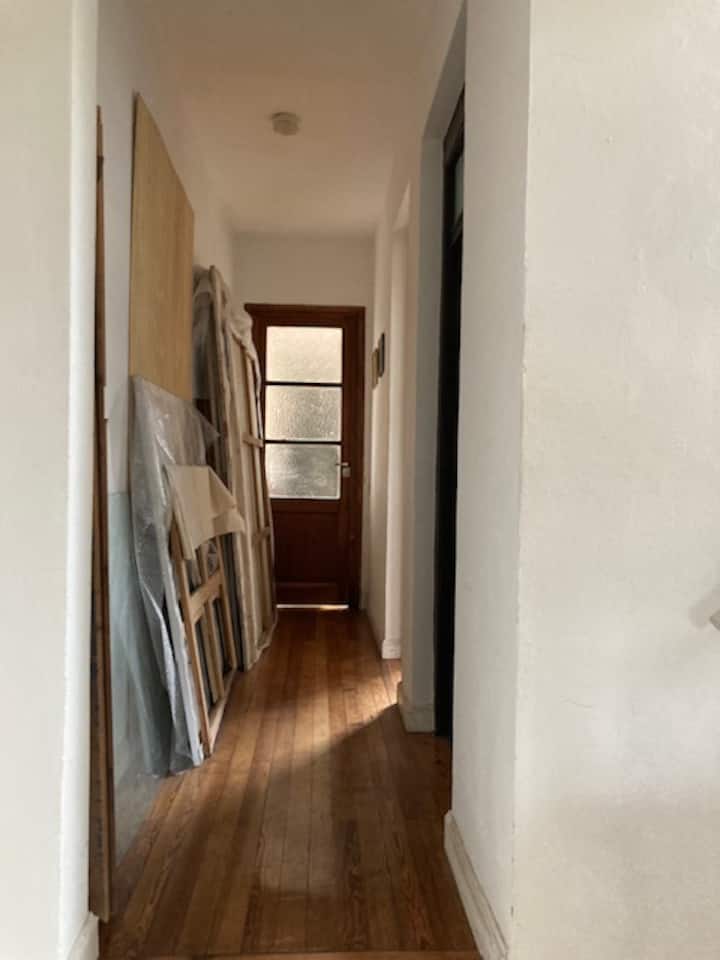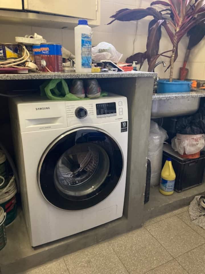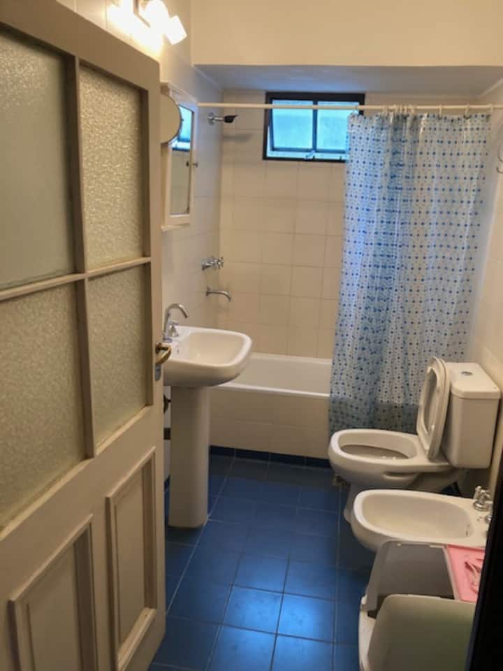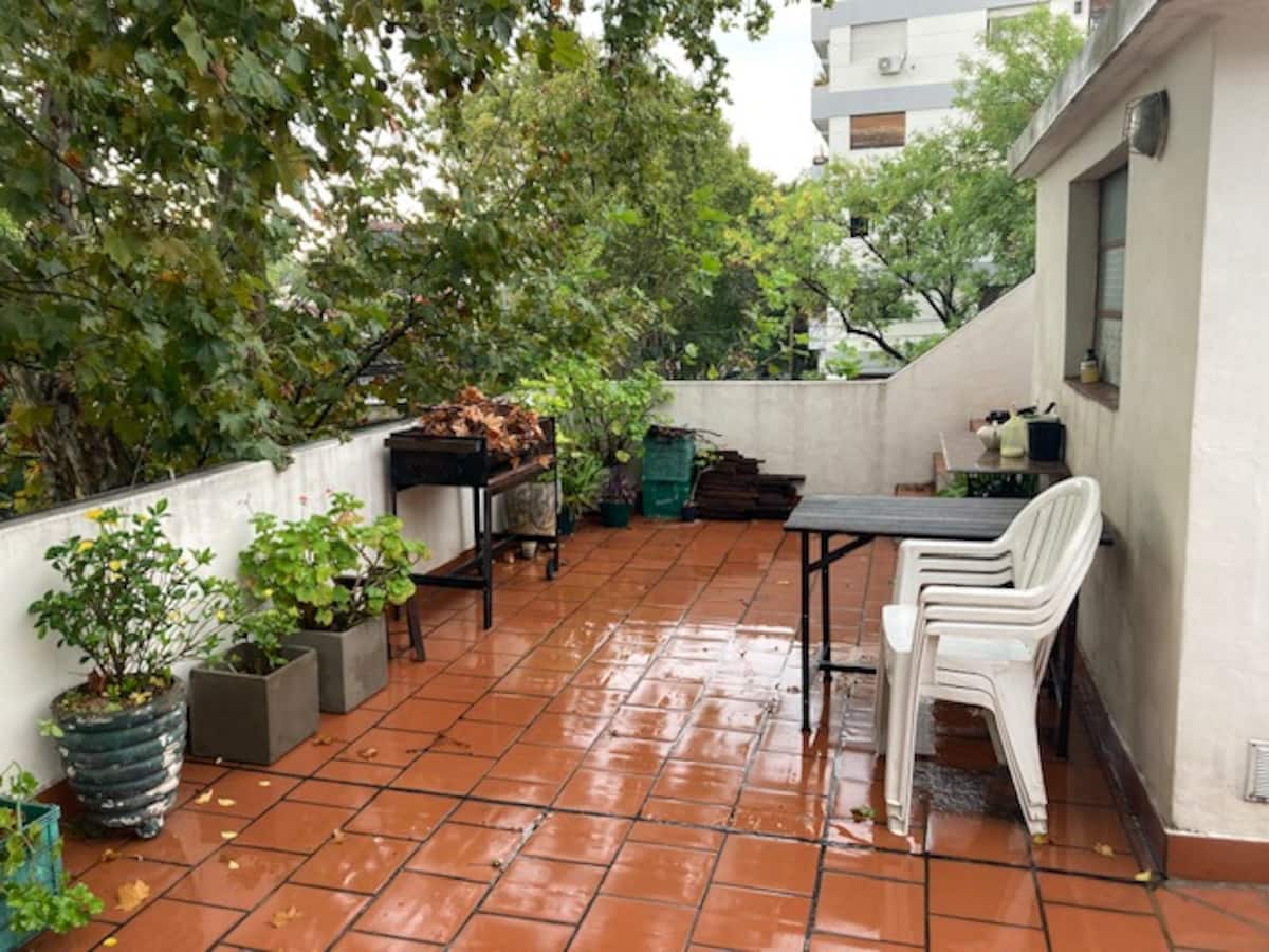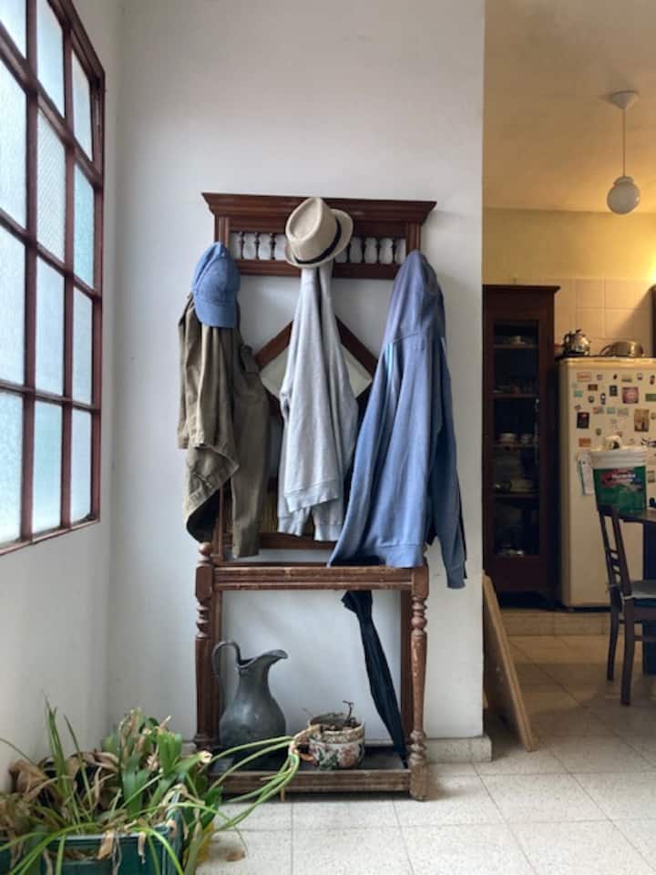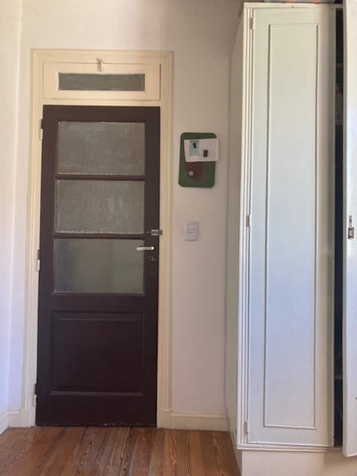Комната с мебелью, с окном во внутренний двор квартала с растениями и с доступом к большой террасе. В комнате есть шкаф средних размеров, стол и матрас высокой плотности. Кухня и ванная используются совместно с владельцем, в доме есть ещё одна спальня для гостя. Доступны Wi‑Fi высокой скорости и стиральная машина.