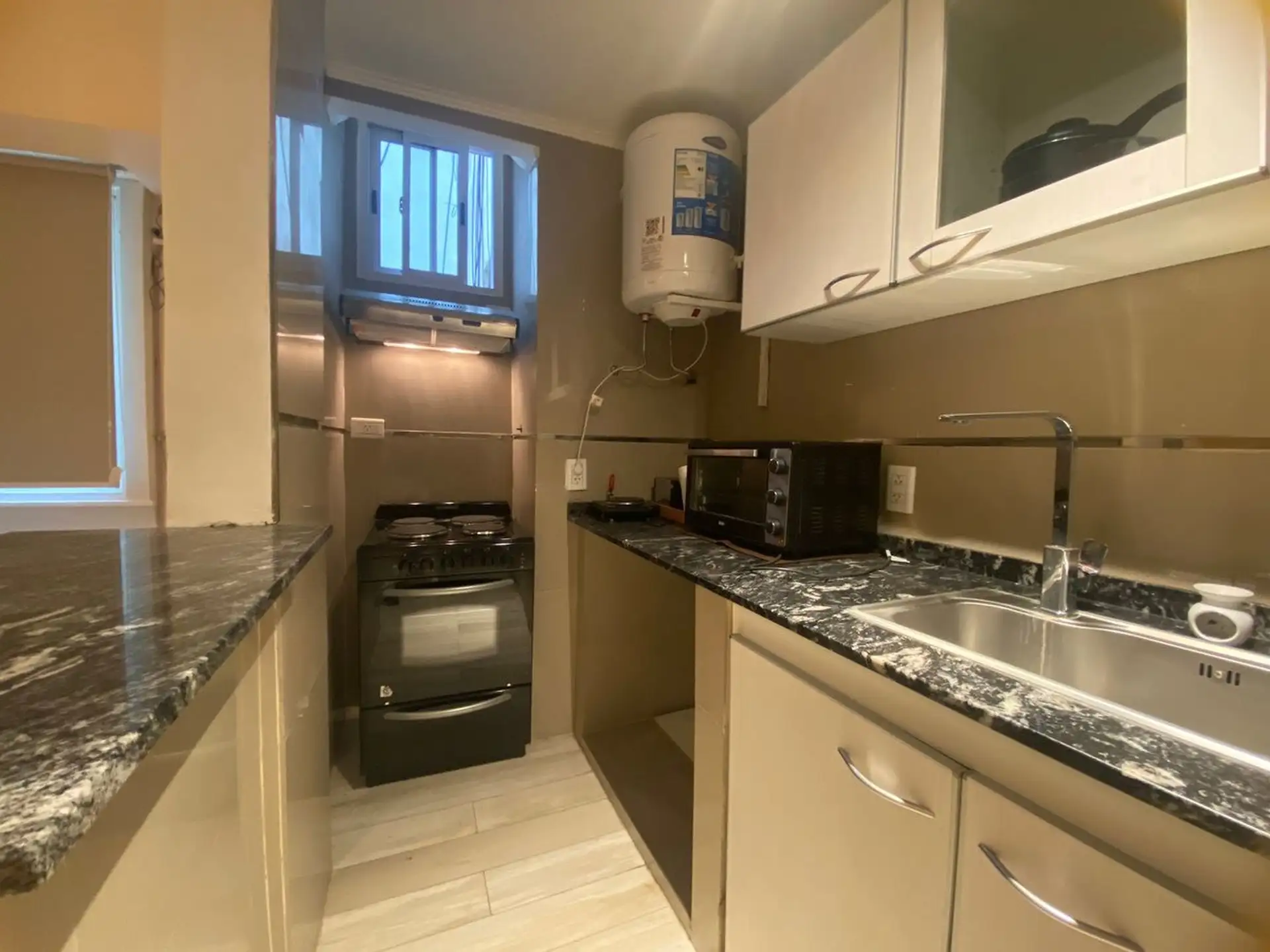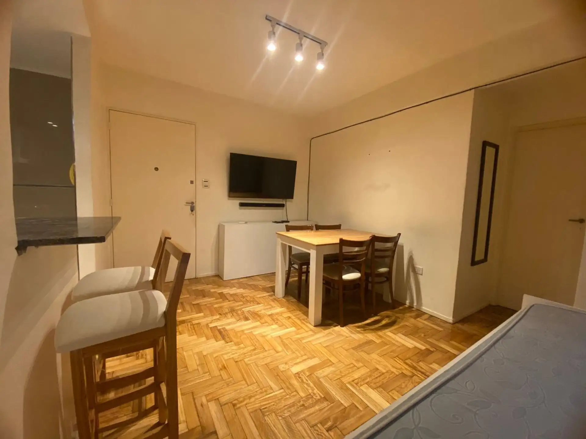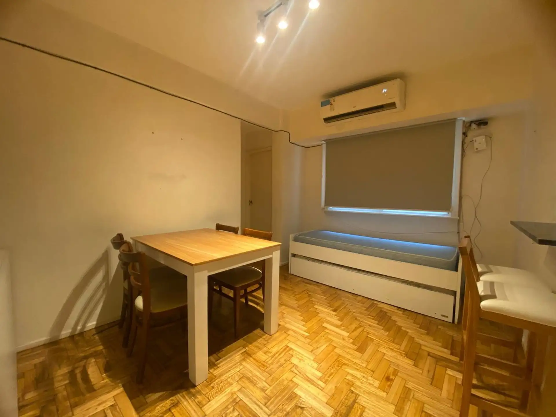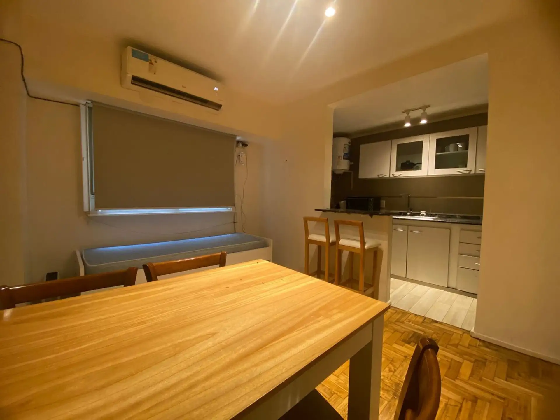 Квартира на 2 комнаты в Caballito после ремонта. Кухня с полуинтегрированной планировкой отделена барной стойкой, есть места для хранения. В гостиной-столовой установлен телевизор и кондиционер, спальня с встроенным шкафом. Установлены blackout-шторы, полная ванная с ванной. Окна выходят на улицу; доступна пешая инфраструктура: в 1 квартале Av. Pedro Goyena и Av. Juan Bautista Alberdi, в 2 кварталах станция Puán линии A метро и Av. Rivadavia, в 6 кварталах Parque Chacabuco.
