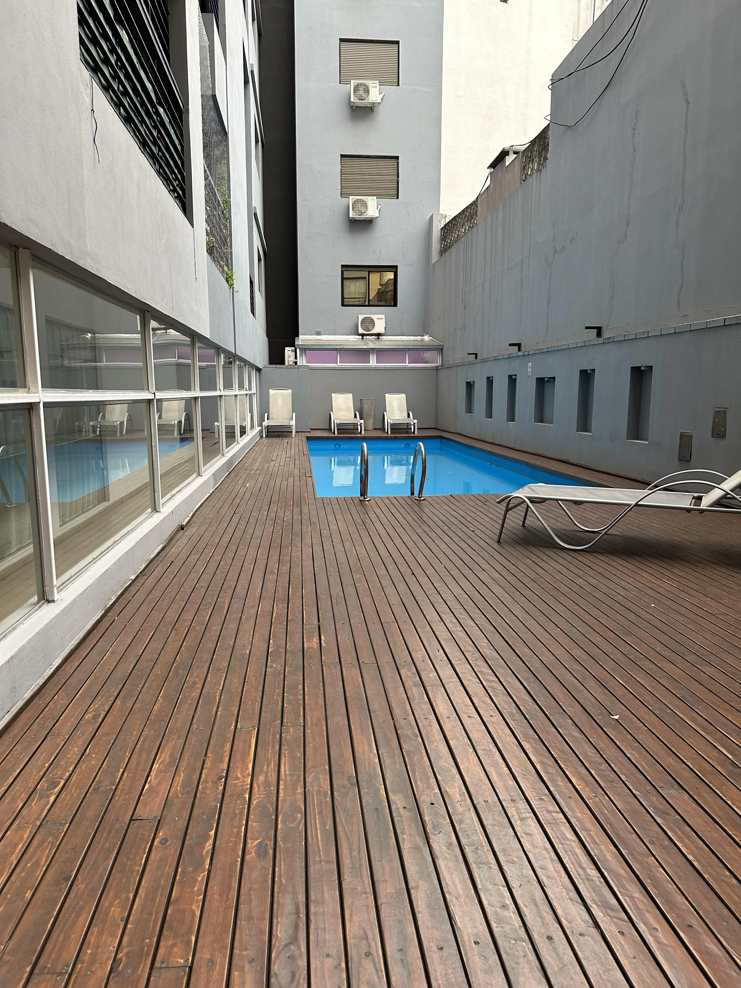 Квартира с 2 комнатами в Caballito Norte: 1 спальня с встроенным шкафом и кладовой, 1 отдельная ванная комната. Окна на улицу, балкон, вид на город. Кухонная зона и место под стиральную машину с предусмотренной зоной Laundry: указаны 2 большие стиральные машины и 2 сушилки. В отделке — керамическая плитка под порцеланато, есть кондиционер/отдельные данные об отоплении не приведены. В здании предусмотрены (закреплённое) парковочное место, бассейн с зоной на нижнем уровне, общая гостиная для жильц