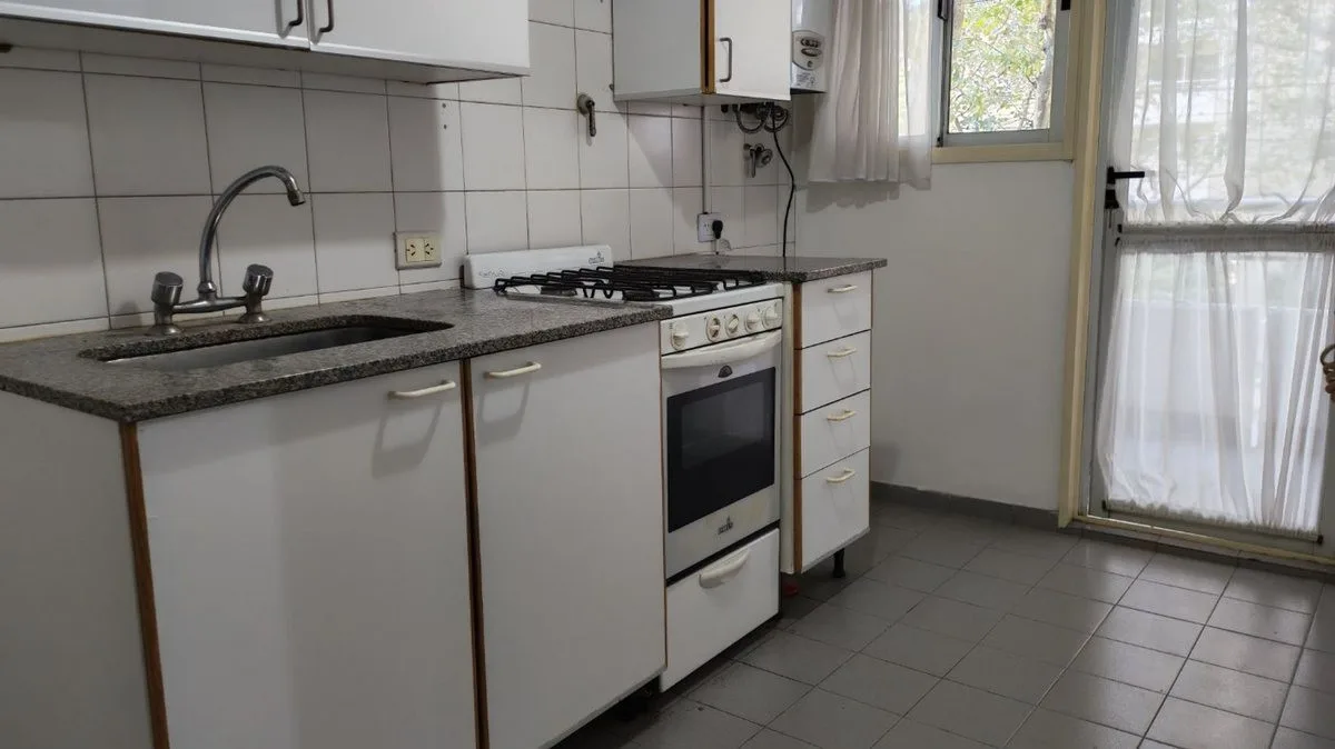 Квартира в Caballito, 2 комнаты, 39 m² общих: 33 m² крытых и 6 m² балкона, первый этаж из 15. Окна на улицу, с балконом из спальни. Полностью функциональная кухня с местом под холодильник, подключением для стиральной машины, газовым водонагревателем и выходом на балкон; отдельная ванная комната. В здании круглосуточная охрана с приёмной, есть SUM и зал для мероприятий, а также зона детских игр. Указаны кондиционер и подключённые электричество и газ; требуется залог-страховка аренды, с детьми жив