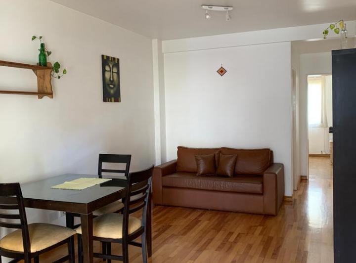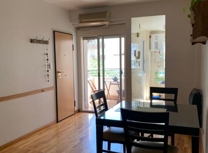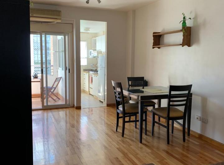 Квартира в Chacarita, формат 2 ambientes, 1 спальня, полностью меблирована и оборудована. В контракте указан помесячный арендный платёж; он включает коммунальные платежи здания и также кабельное телевидение и интернет. Электричество и газ оплачивает арендатор. Кухня с посудой, холодильником и микроволновой печью, постельное бельё и полотенца, телевизор с LED-экраном, балкон с окнами на улицу. В здании есть общий бассейн на уровне первого этажа и парковка для посетителей на условиях временного ис
