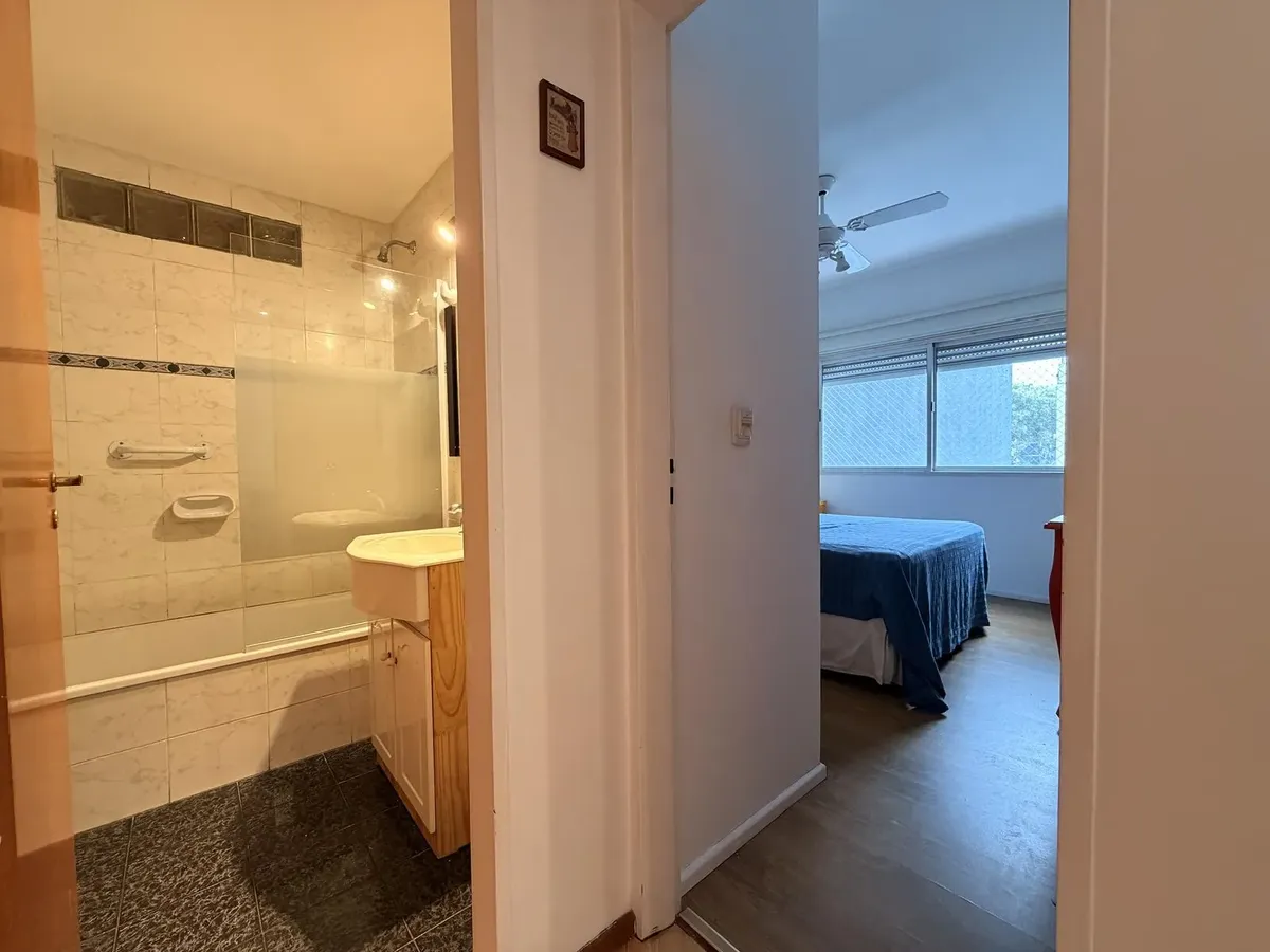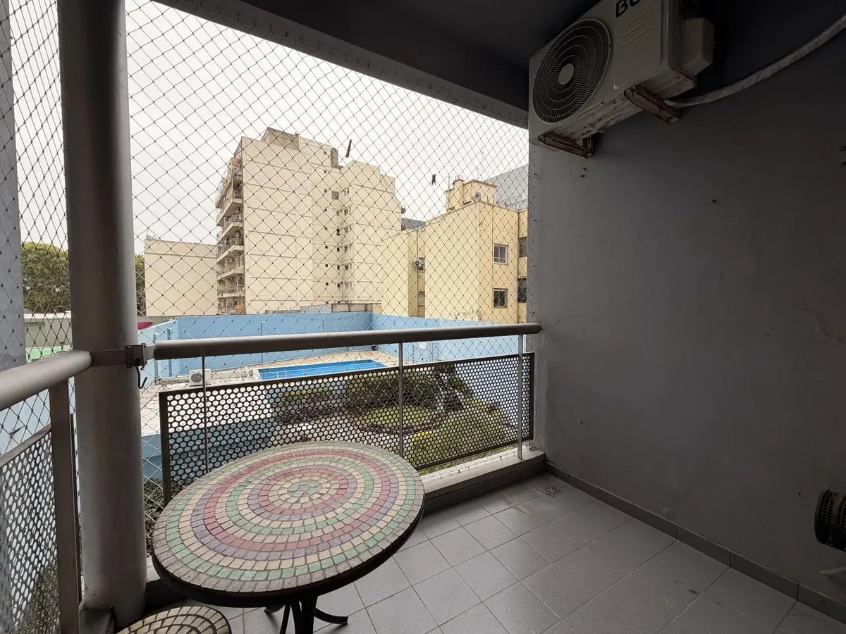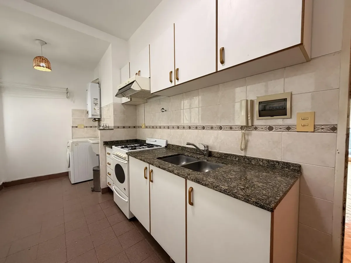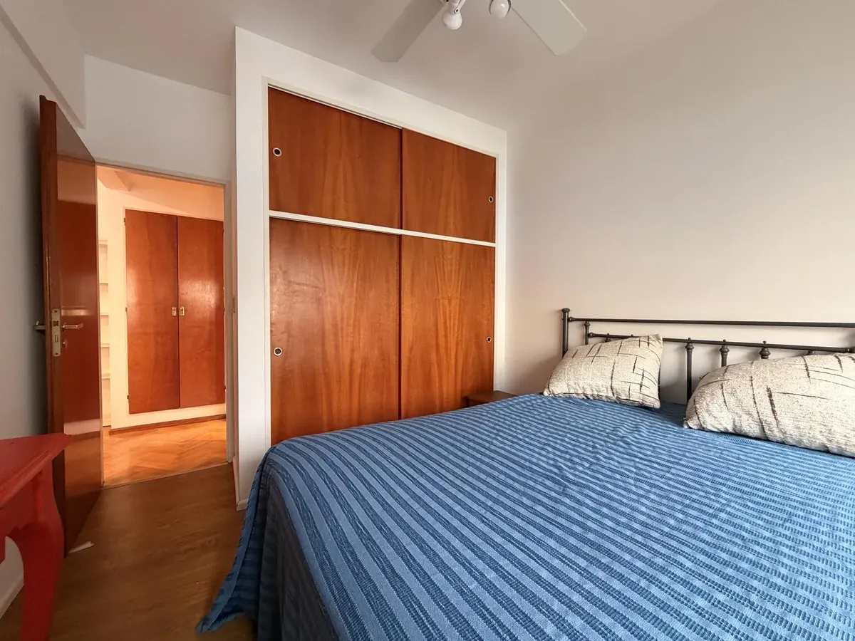 Квартира из 2 комнат площадью 3-й этаж, окна во двор (contrafrente), ориентация на восток, с балконом. Полностью меблирована, недавно покрашена; из окон вид на внутренний двор здания. В гостиной-столовой установлены кондиционер (холод/тепло) и отопление на tiro balanceado. Спальня с потолочным вентилятором и встроенным шкафом, двуспальная кровать и прикроватная тумба. В ванной комнате установлен душ, кухня оборудована холодильником, стиральной машиной и водонагревателем (calefón); отдельно указа
