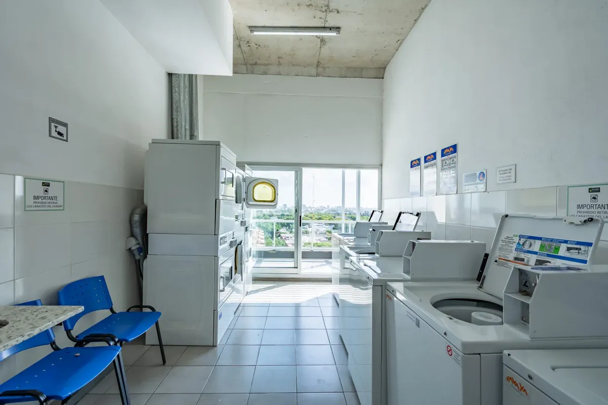 Квартира-студия в Chacarita, 8-й этаж, окна на улицу, с открытым панорамным видом, с мебелью. Кухня интегрирована: тумбы и навесные шкафы, гранитная столешница, электрическая варочная панель vitrocerámica. Полная ванная с керамической отделкой и ванной, установлены современные сантехнические приборы; напольное покрытие — ламинированные (плавающие) деревянные полы. Встроенный балкон с большим панорамным остеклением от пола до потолка. В стоимость включено (закреплённое) парковочное место на подзе