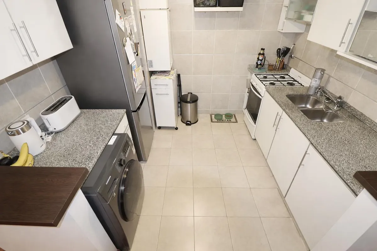 Квартира с 2 комнатами и балконом на границе Belgrano и Coghlan. Площадь гостиной-столовой 5x5 m: она сообщается с балконом. Встроенная кухня, туалет. Спальня с собственной ванной и шкафом, отопление тёплым полом, газовая плита, котёл PEISA и кондиционер. В 800 m от Subte D, в 800 m от Tren Mitre и в 700 m от Metrobus Av. Cabildo.